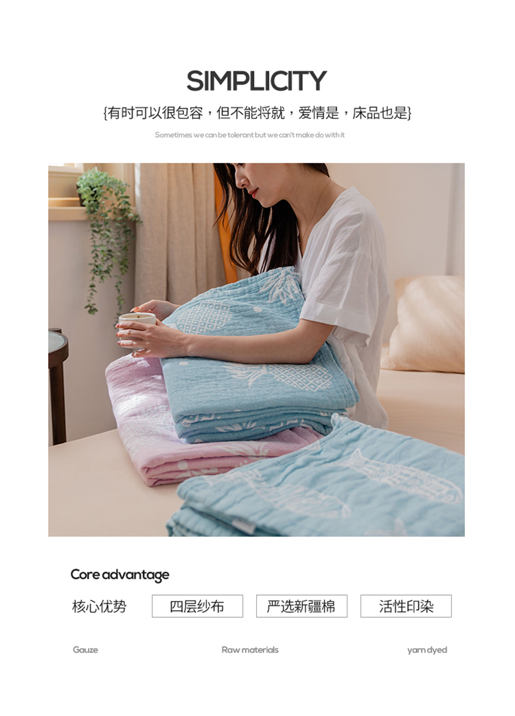 雯雨 2022新款无印风纱布毛巾被夏被直播 菠萝紫
