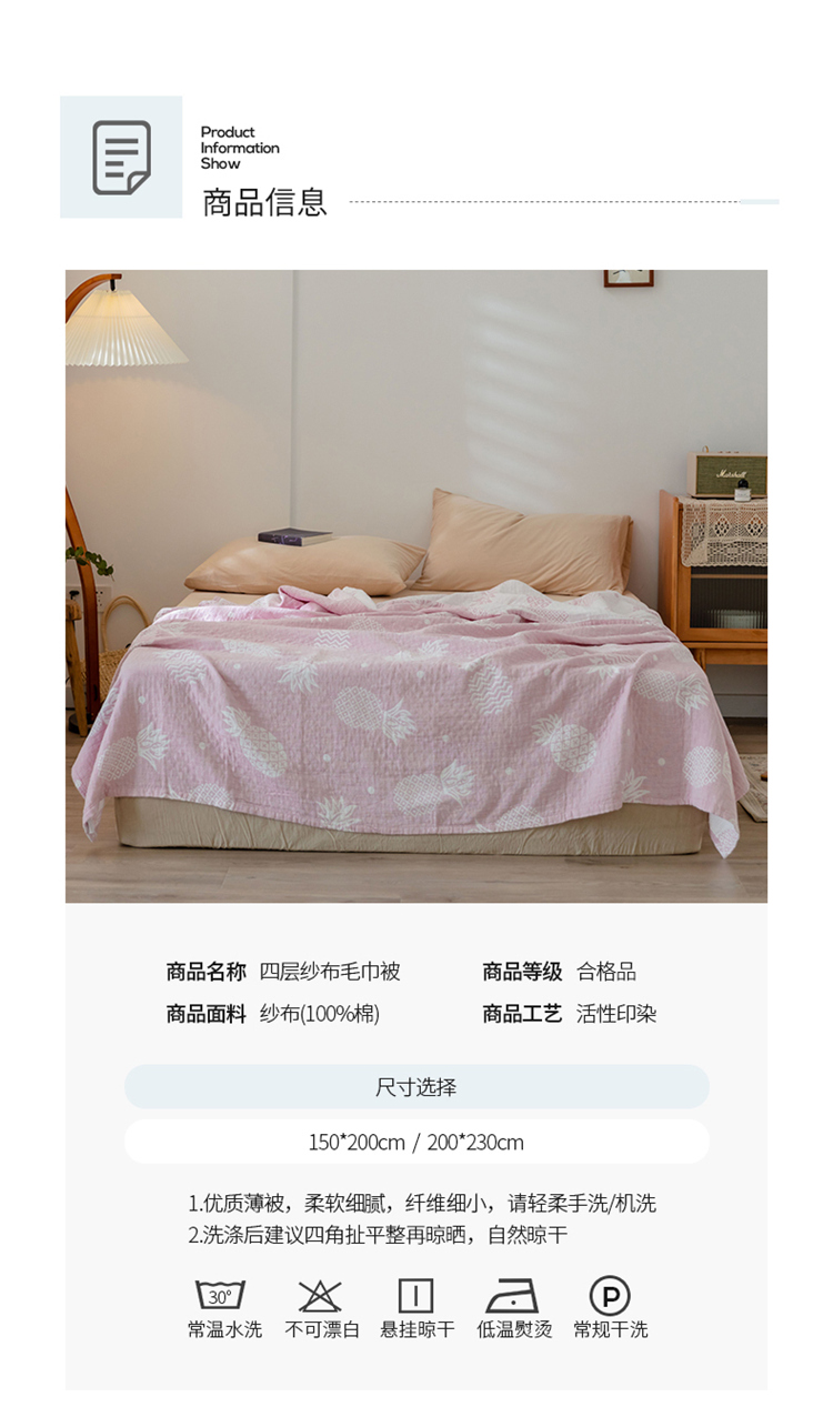 商品名称:雯雨 2022新款无印风纱布毛巾被夏被直播 菠萝紫