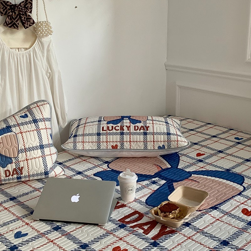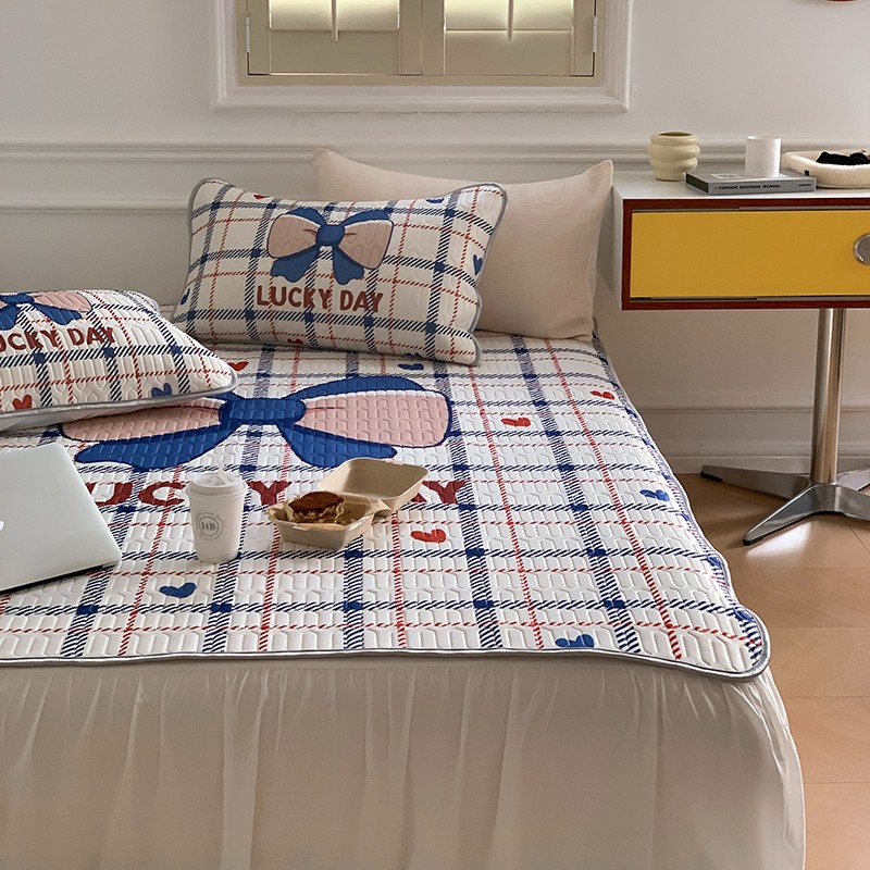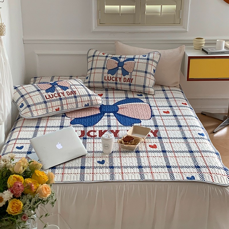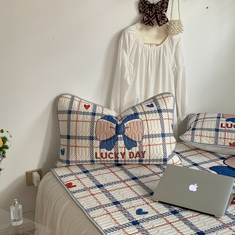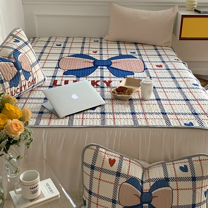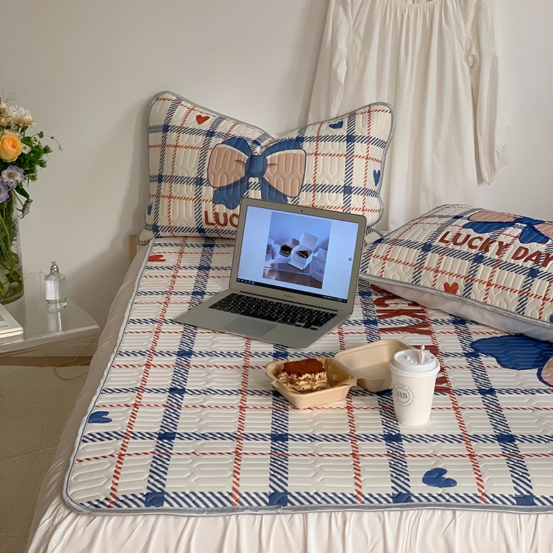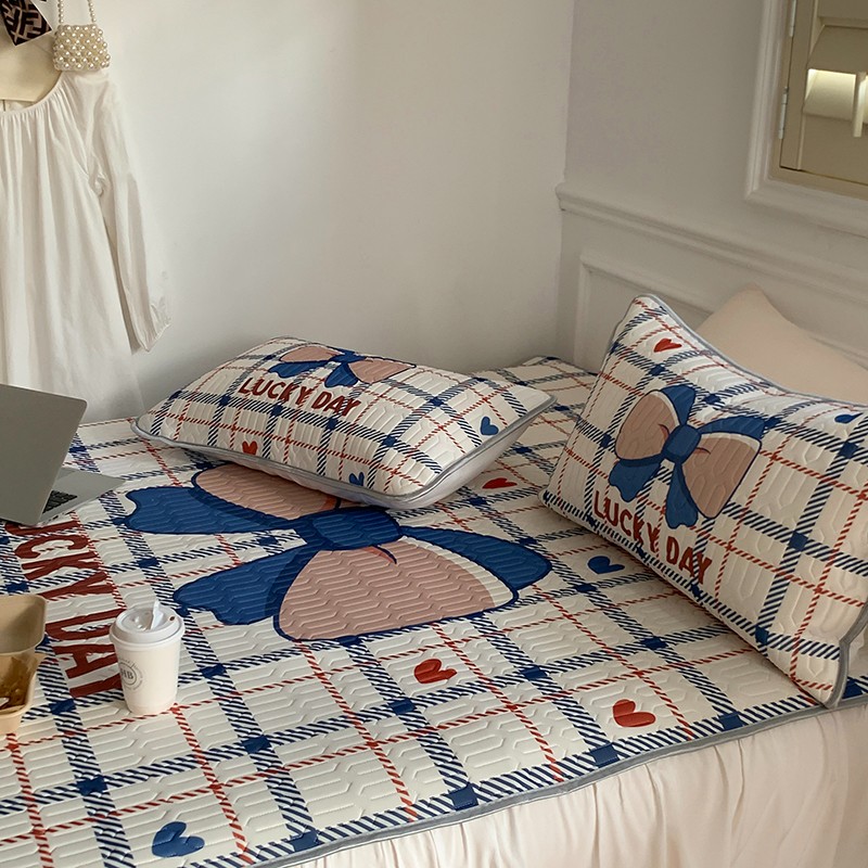昔可 2022新款大版印花乳胶凉席 克莱因蓝蝴蝶结
