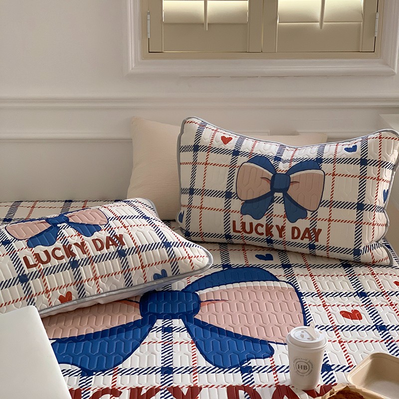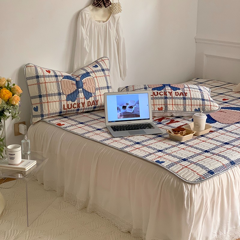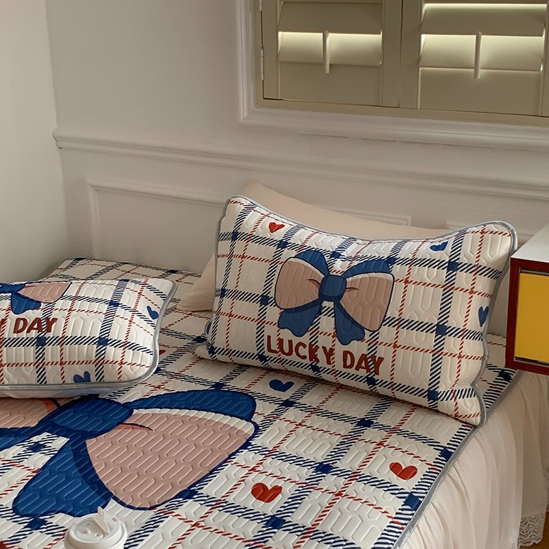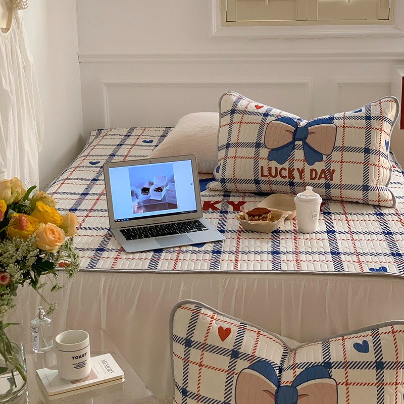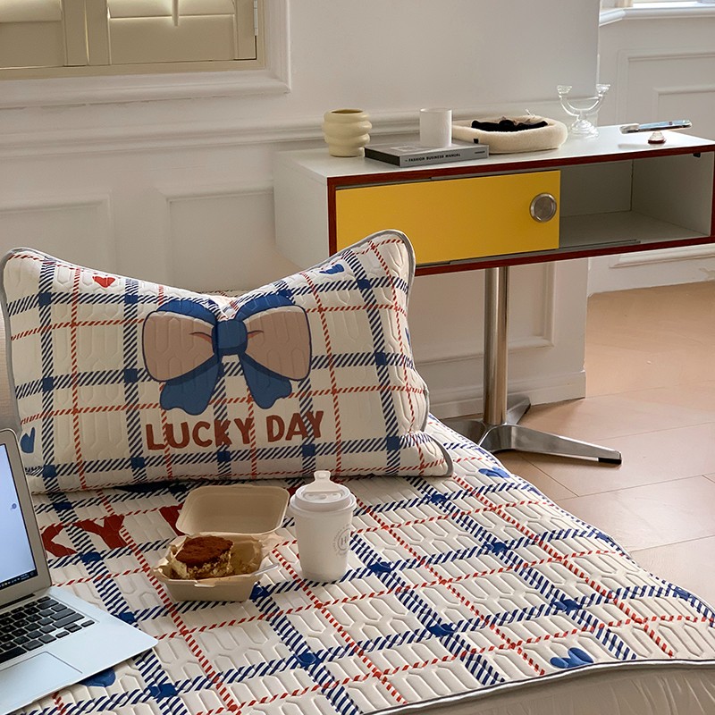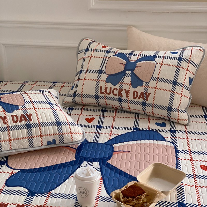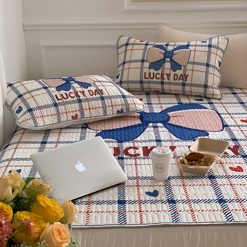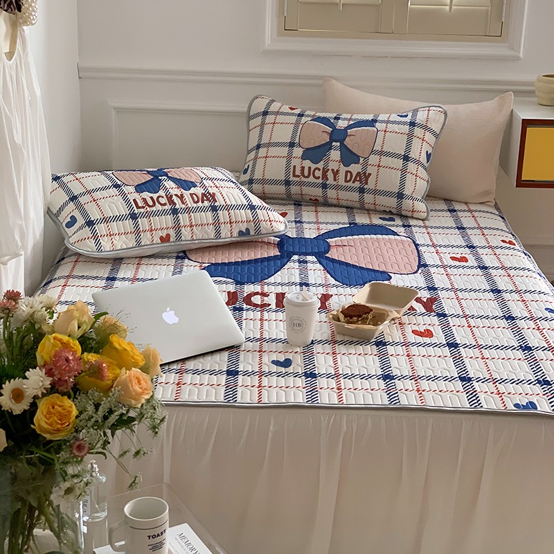 昔可 2022新款大版印花乳胶凉席 克莱因蓝蝴蝶结