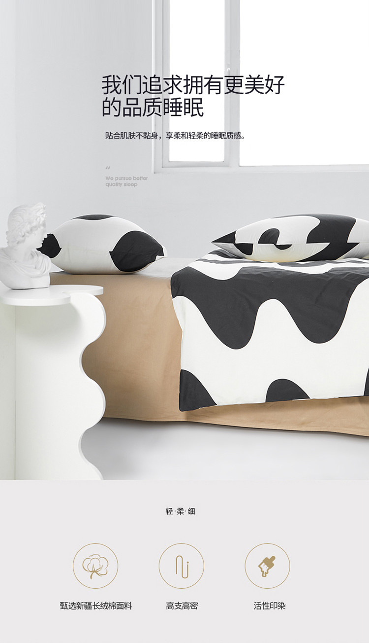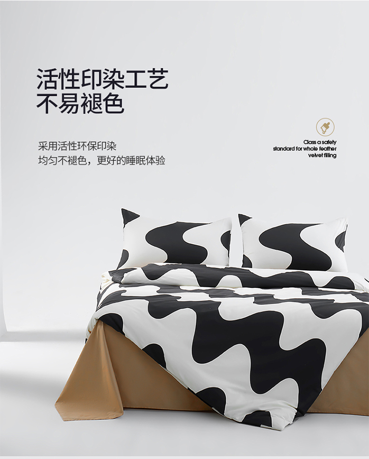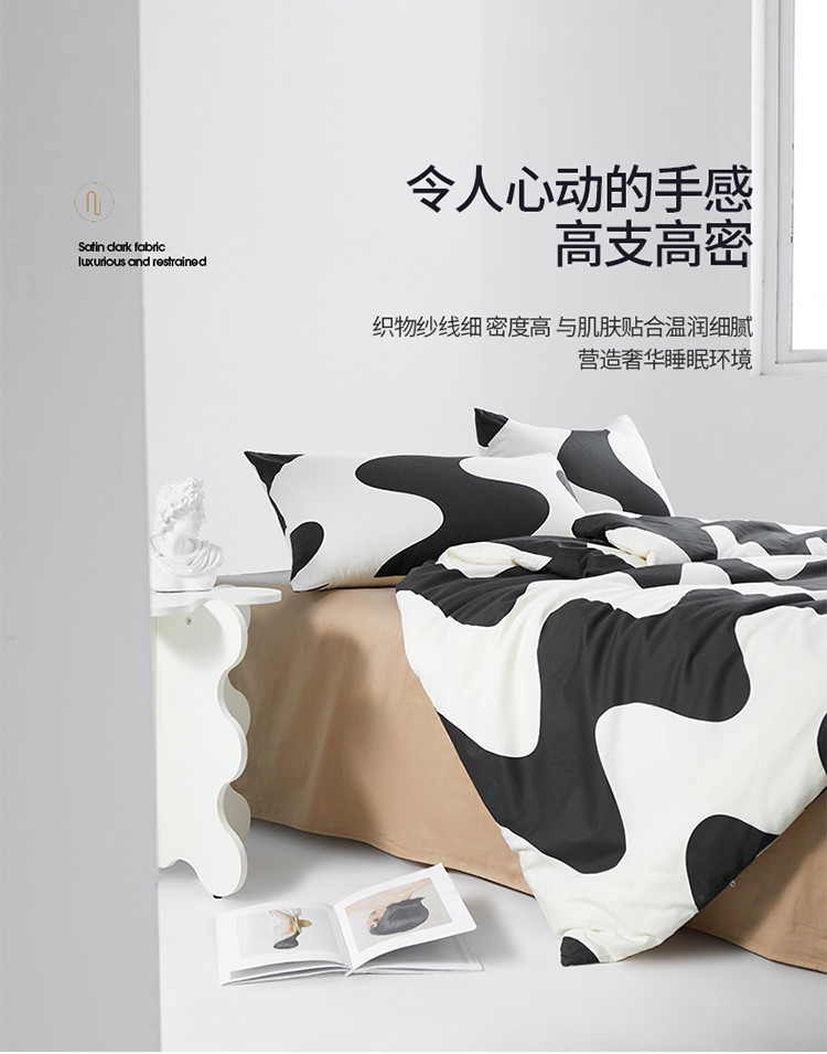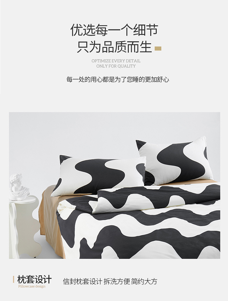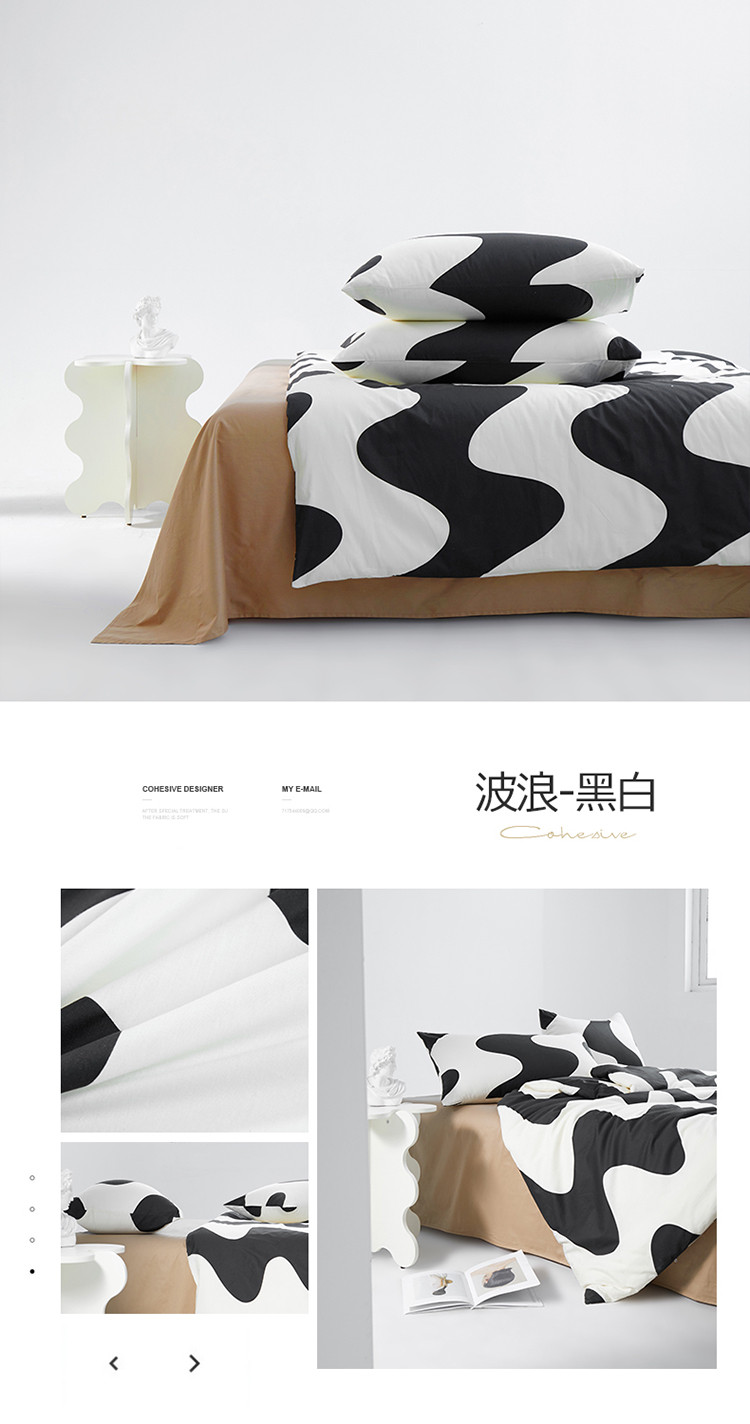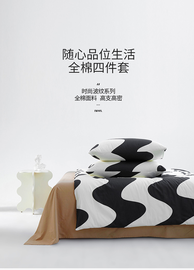 当前位置: 91家纺网 > 商品网购 > 床品套件 > 四件套 > 全棉普通四件套 > 艾佳 2025新款全棉黑白经典波浪纹四件套-场景一波浪-黑白