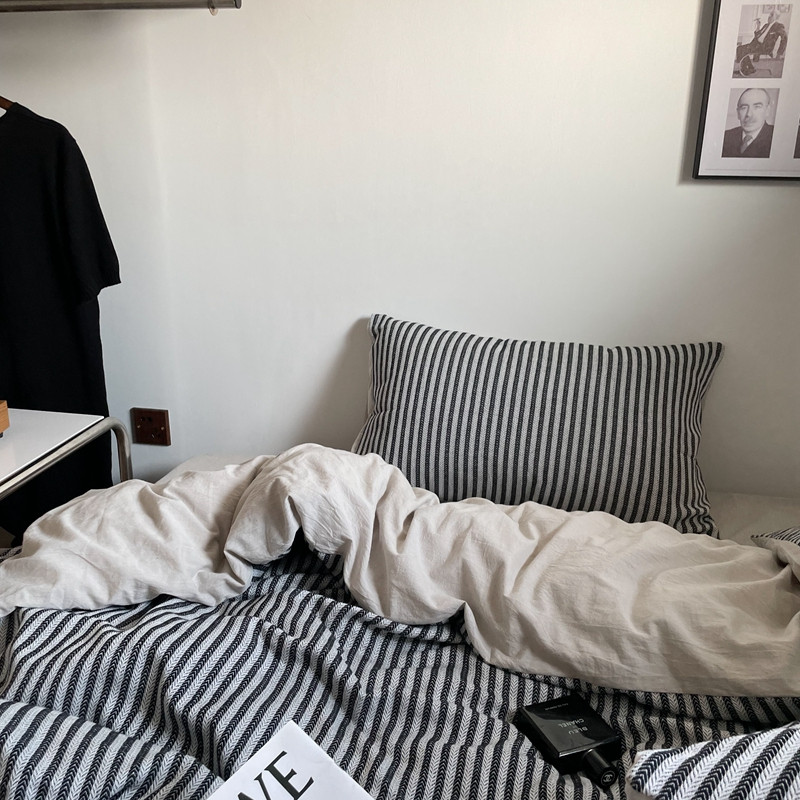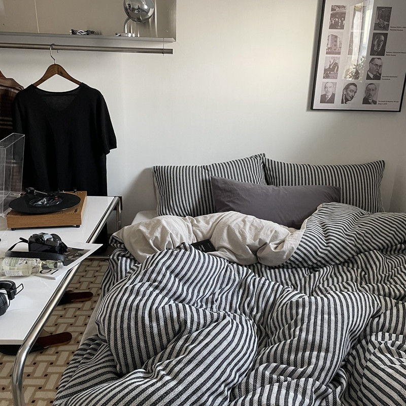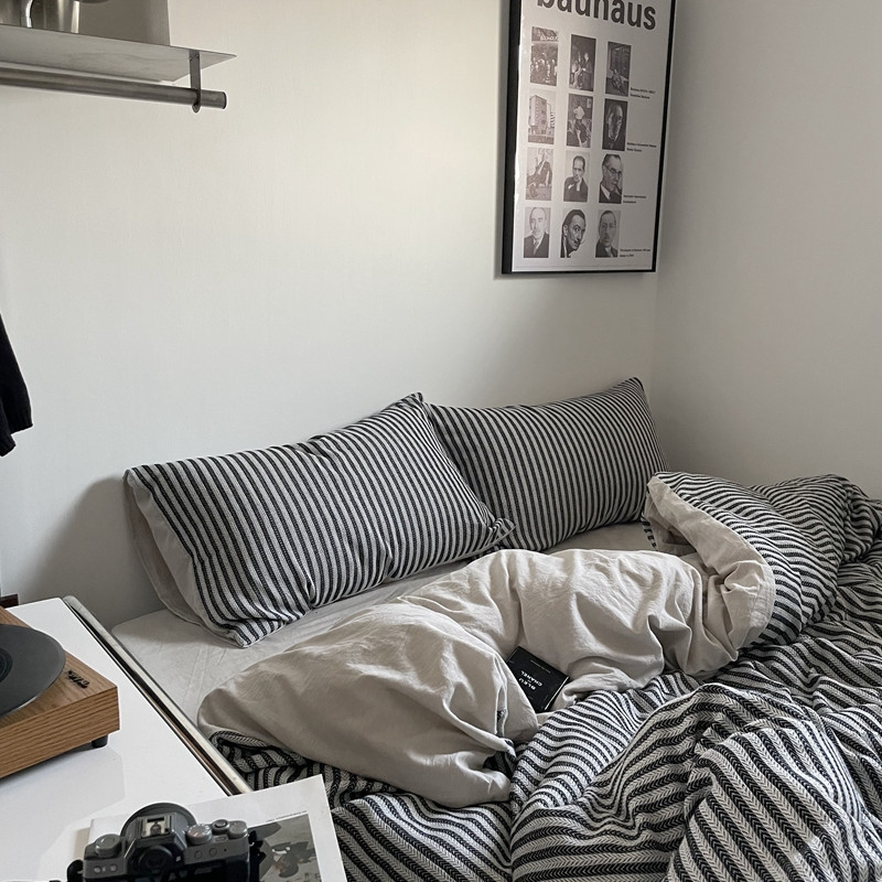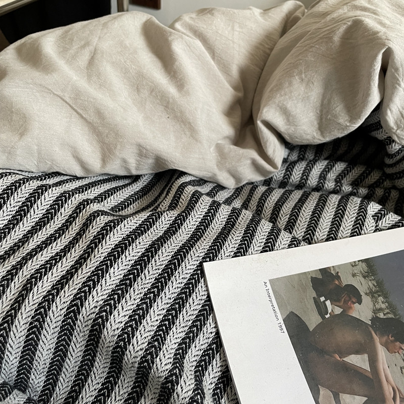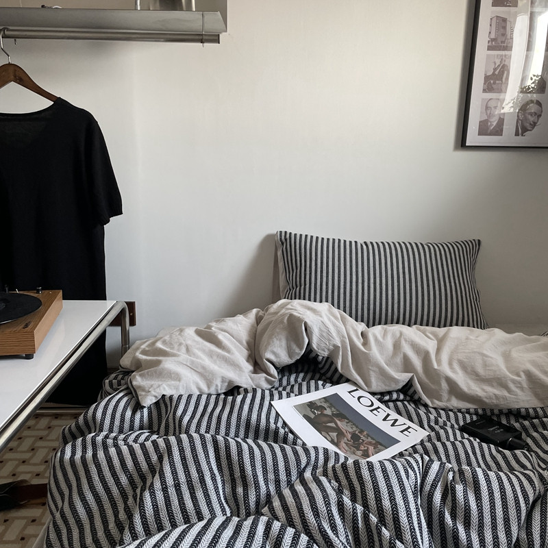 (总)恋恋三季 2025新款ins博主简约条纹极简风纯棉单被套,色织水洗-黑白世界,色织水洗-空白格