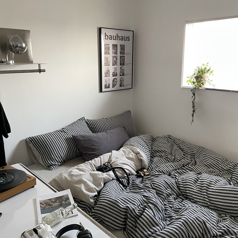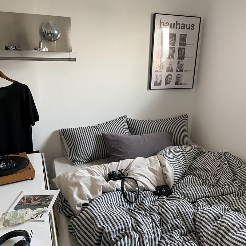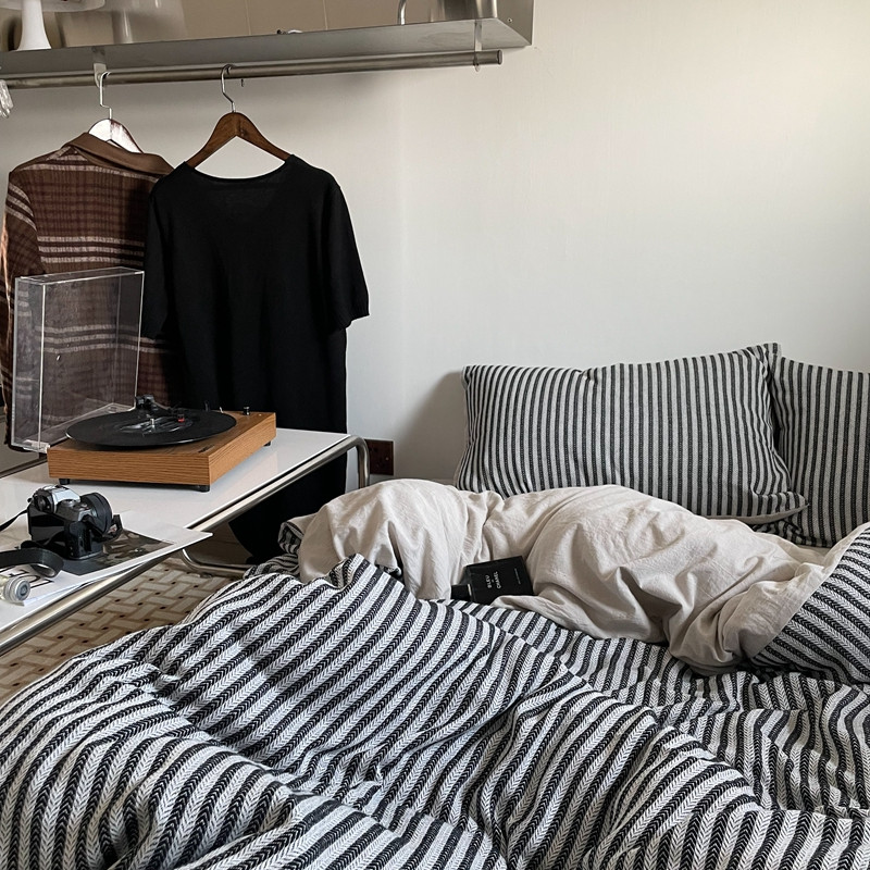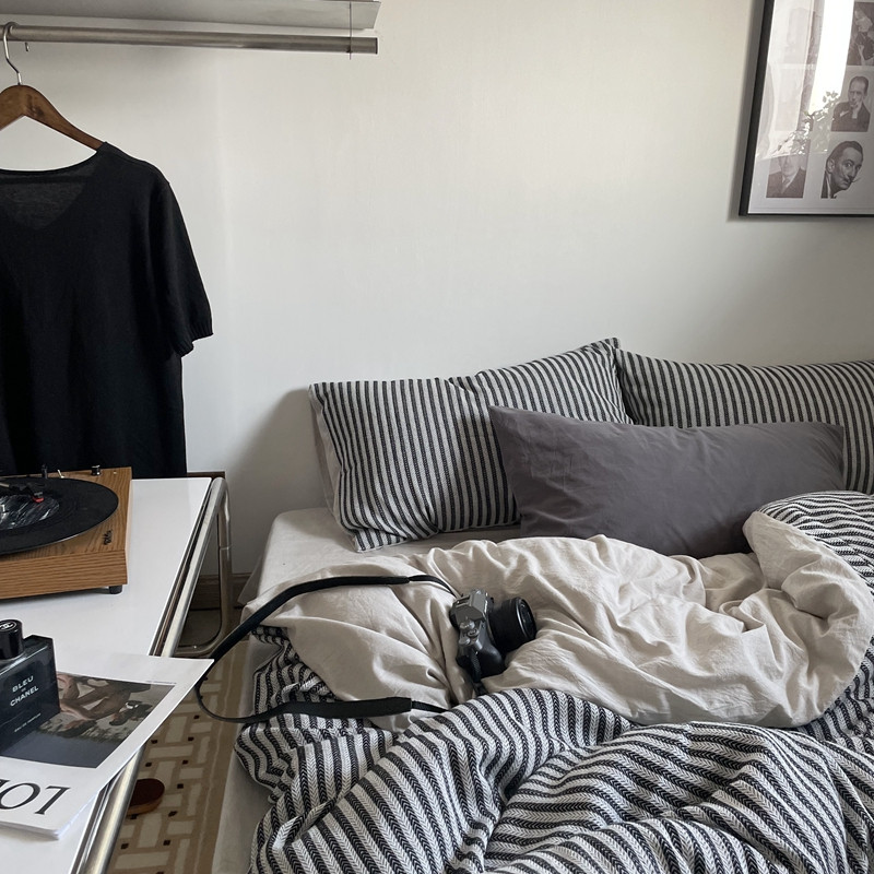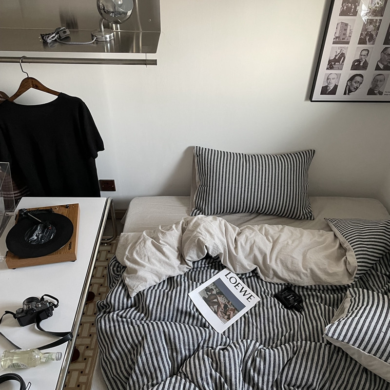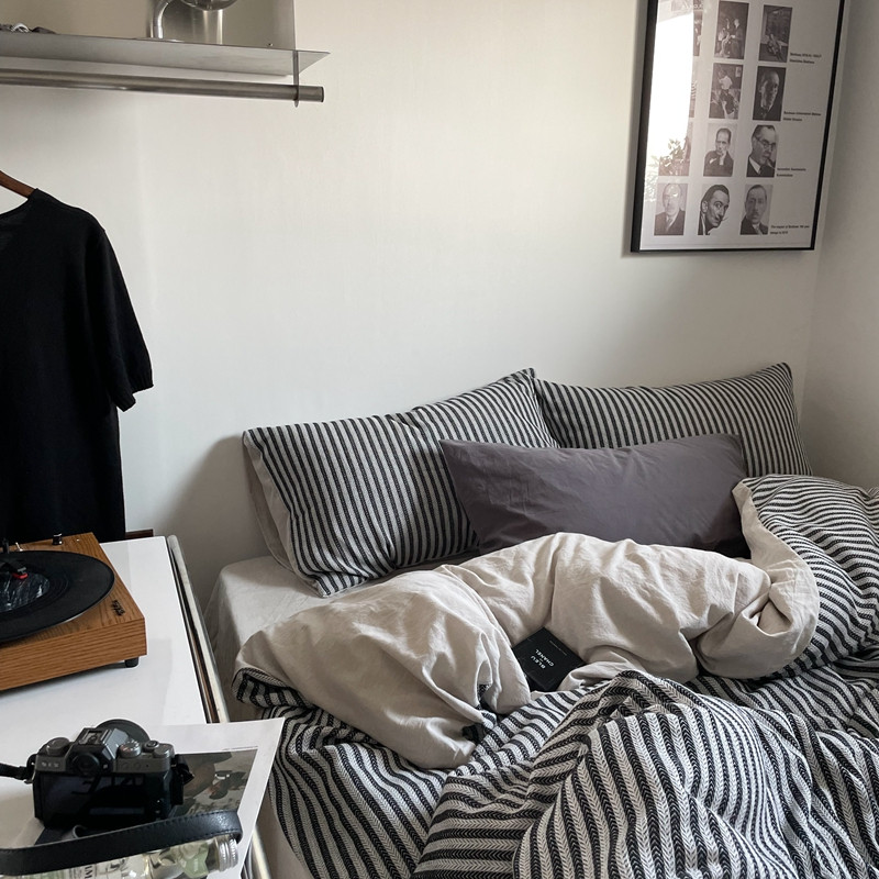 (总)恋恋三季 2025新款ins博主简约条纹极简风纯棉单被套,色织水洗-黑白世界,色织水洗-空白格