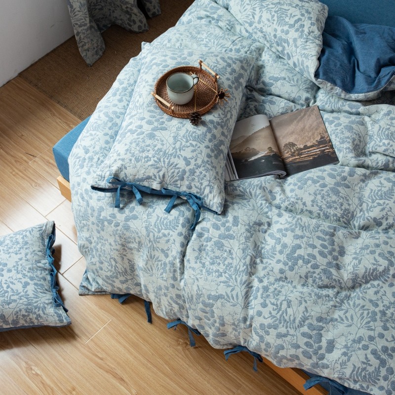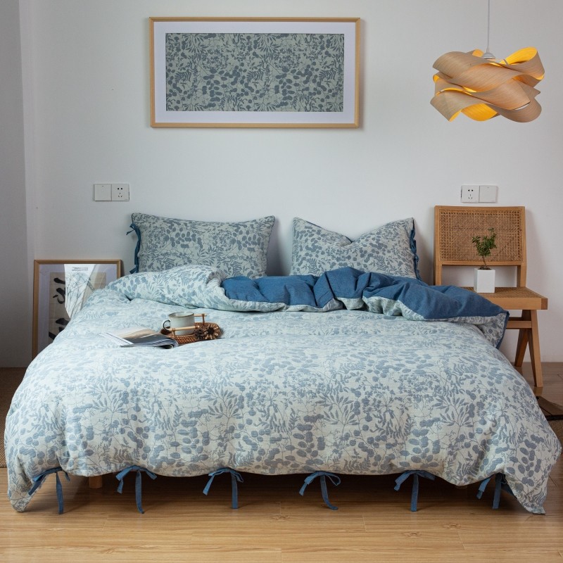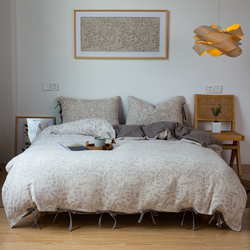 当前位置: 91家纺网 > 商品网购 > 床品套件 > 四件套 > 提花四件套 > (总)2022高端双层纱栀子花色织大提花蝴蝶结工艺款四件套