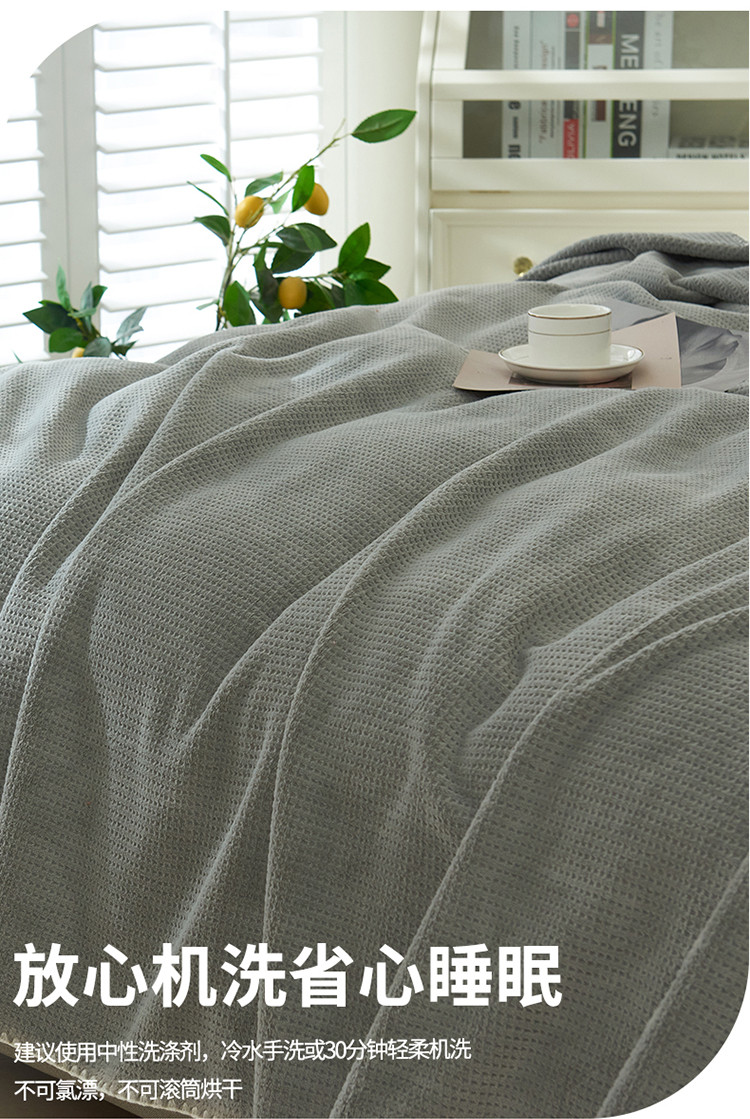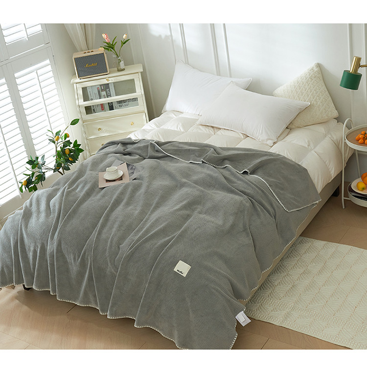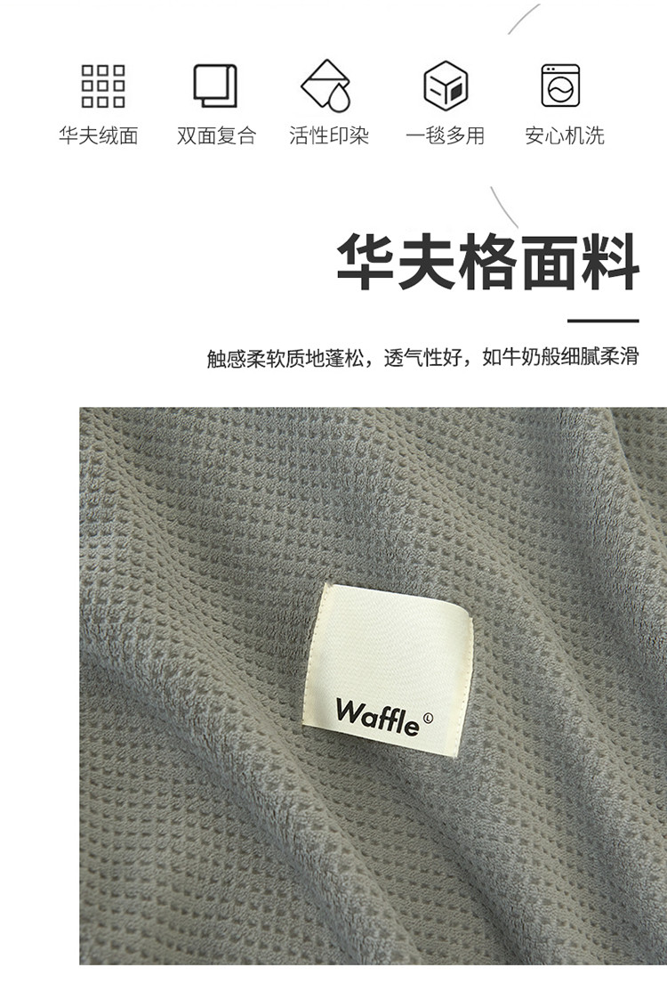 商品名称:馨米莱 2024新款华夫格毛毯牛奶绒夏被毯空调毯 米灰色