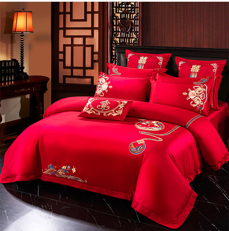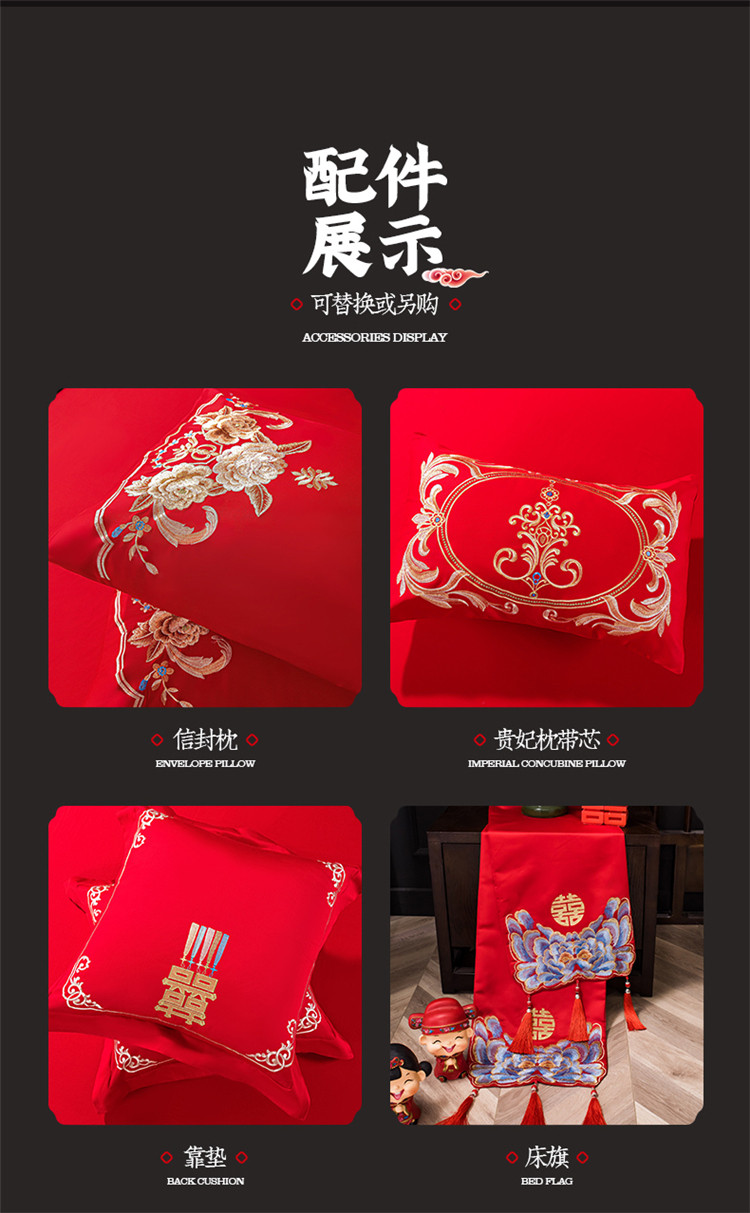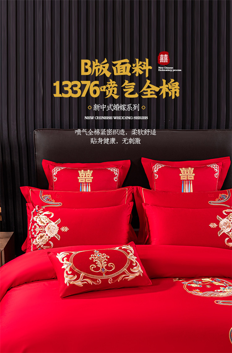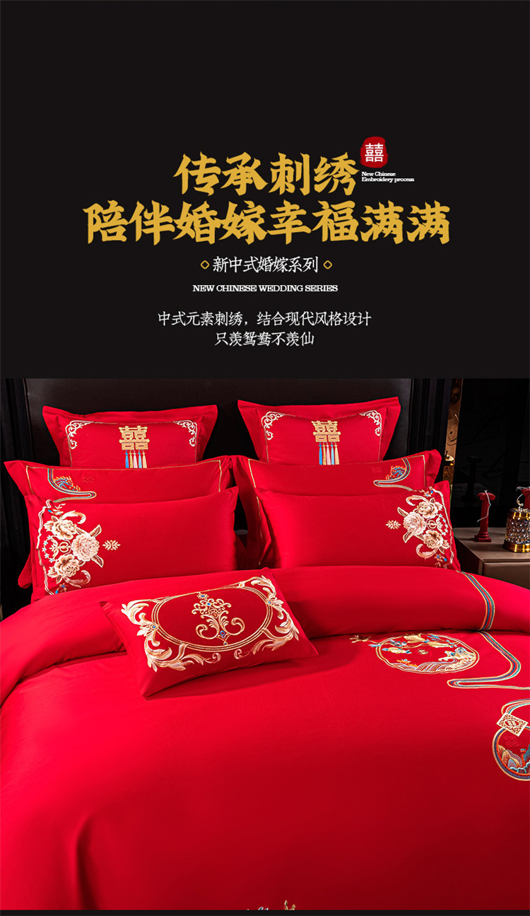 当前位置: 91家纺网 > 商品网购 > 床品套件 > 四件套 > 长绒棉四件套 > 千禧 2022新款婚庆绣花套件 和和美美