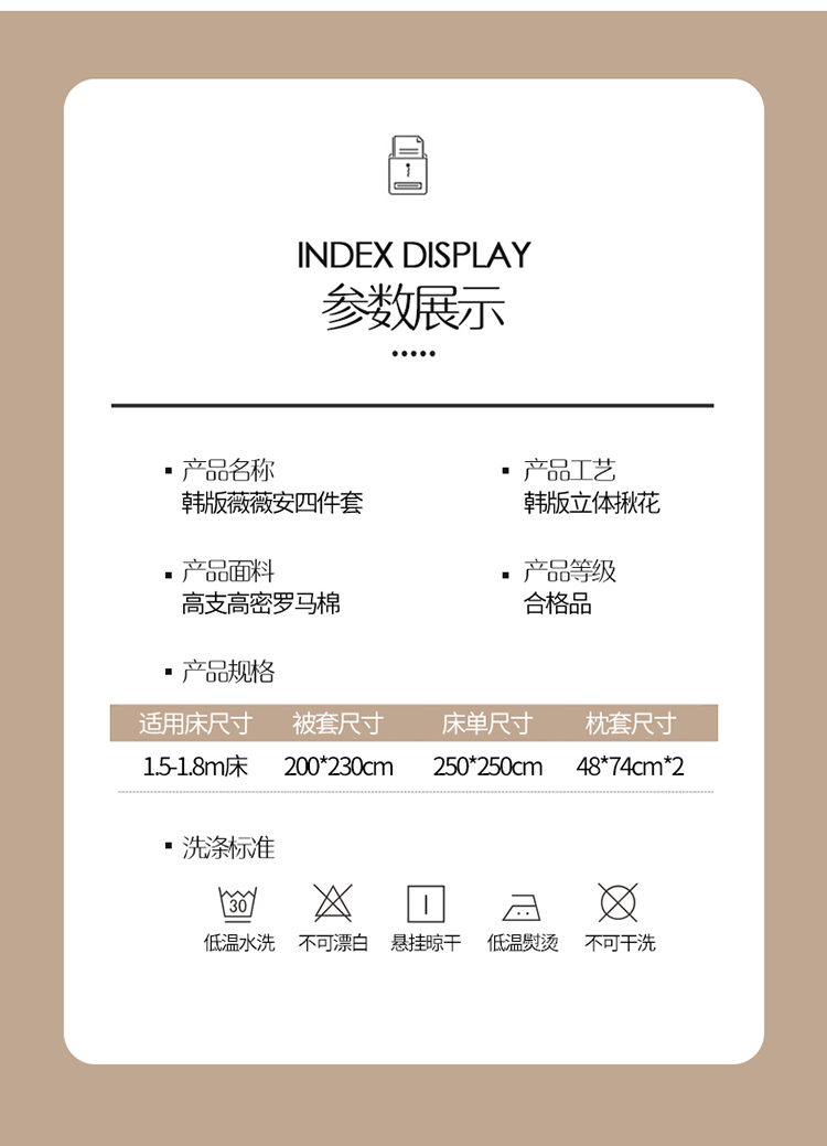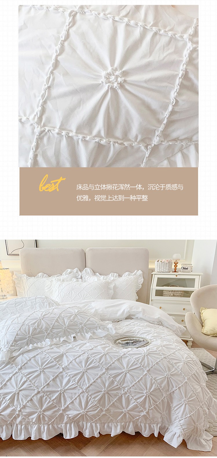 商品名称:(总)吾欢心 2024新款韩版立体揪花薇薇安系列四件套