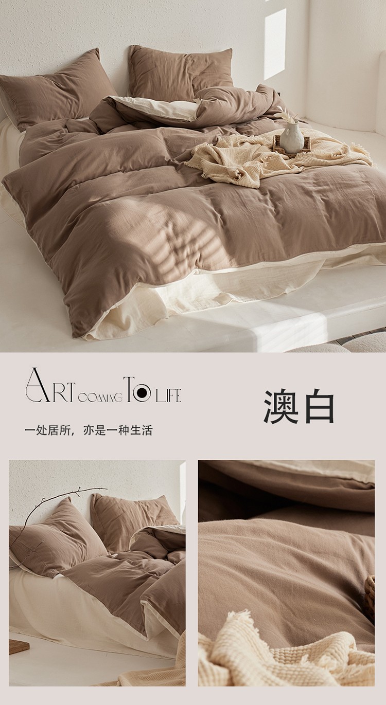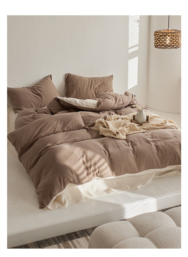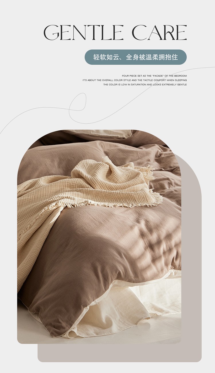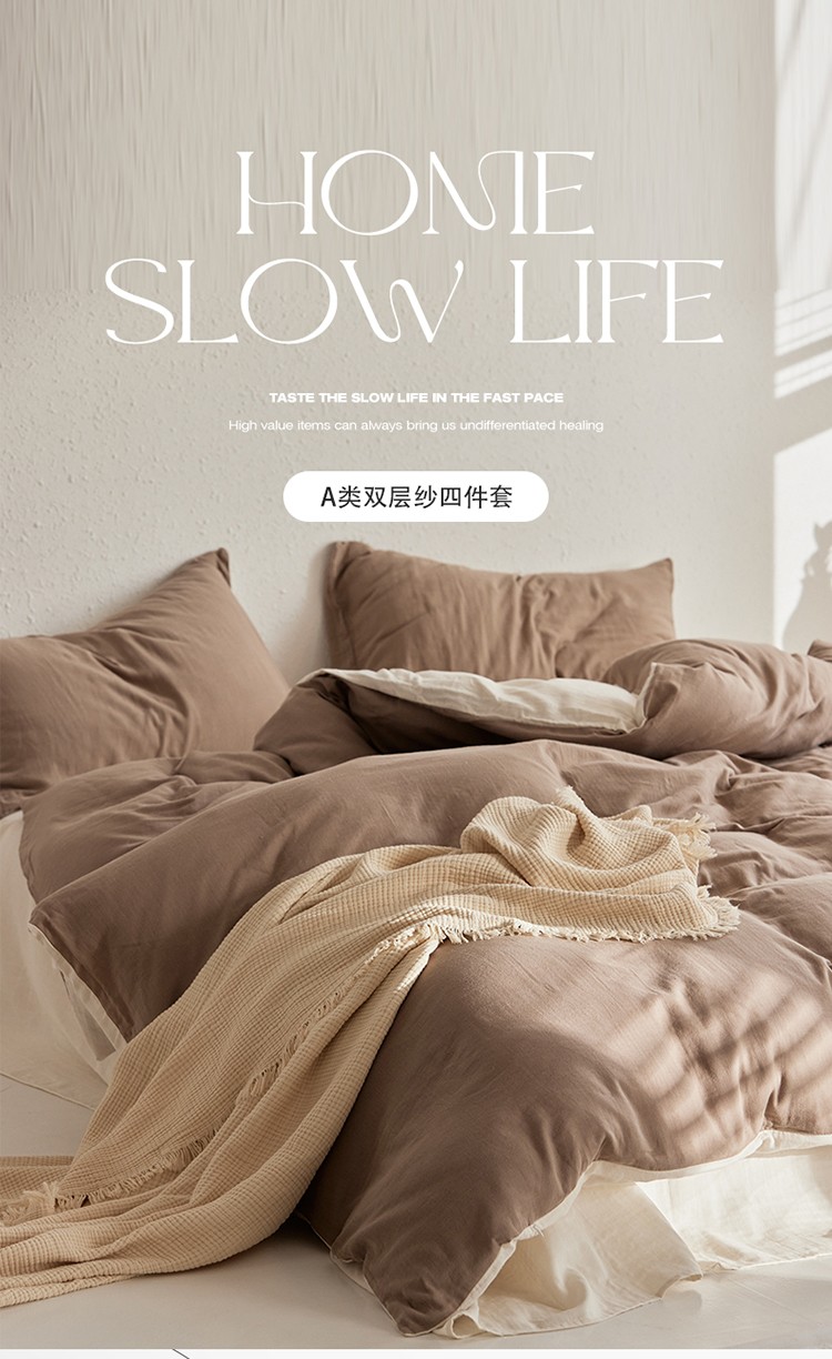 (总)安莱生活 2022新款全棉双层纱纯色四件套--简约风