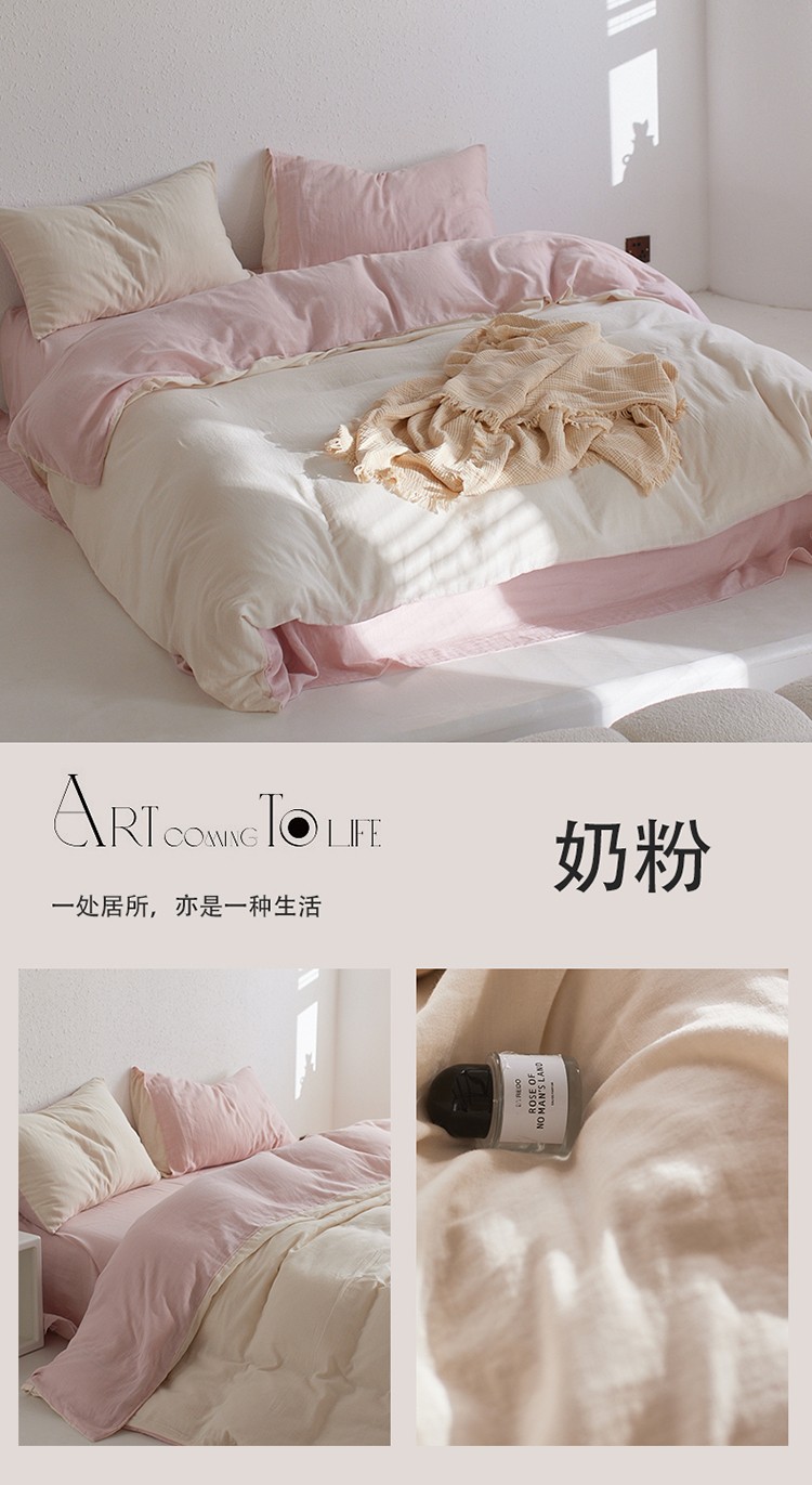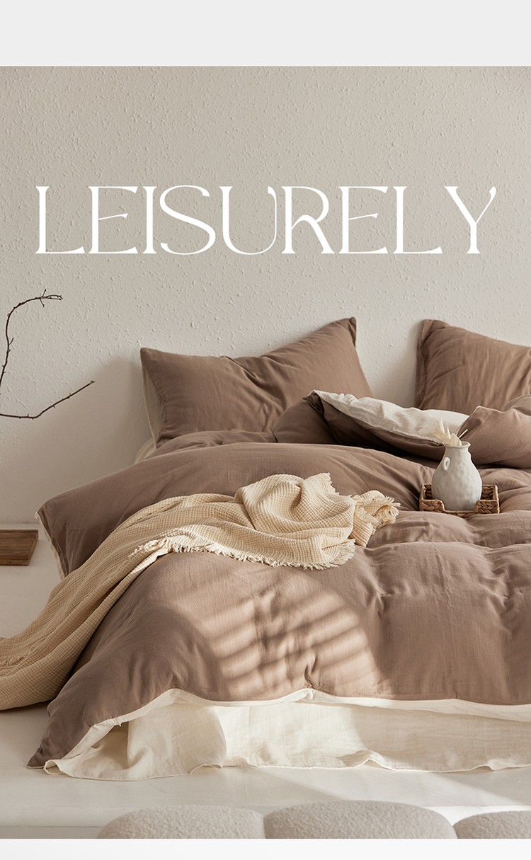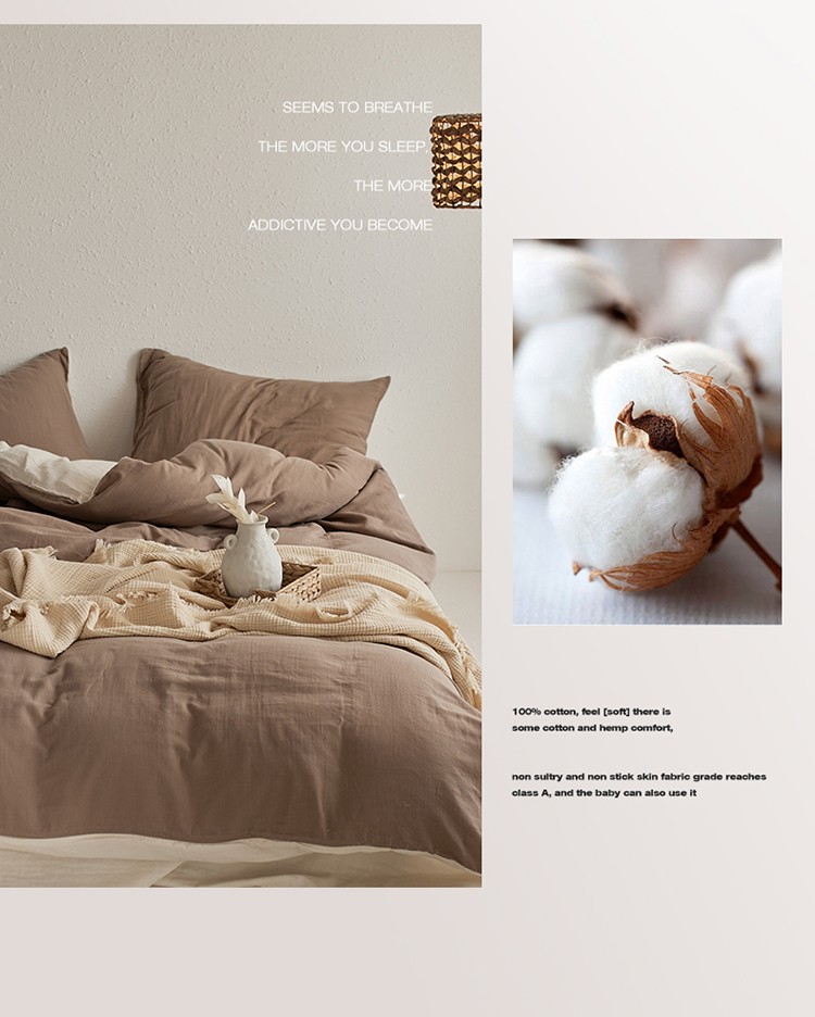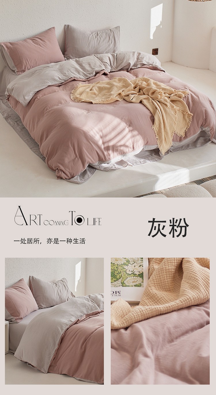 (总)安莱生活 2022新款全棉双层纱纯色四件套--简约风