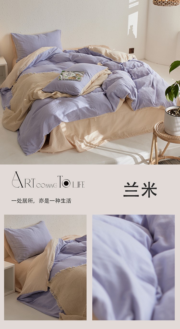 商品名称:(总)安莱生活 2022新款全棉双层纱纯色四件套--简约风