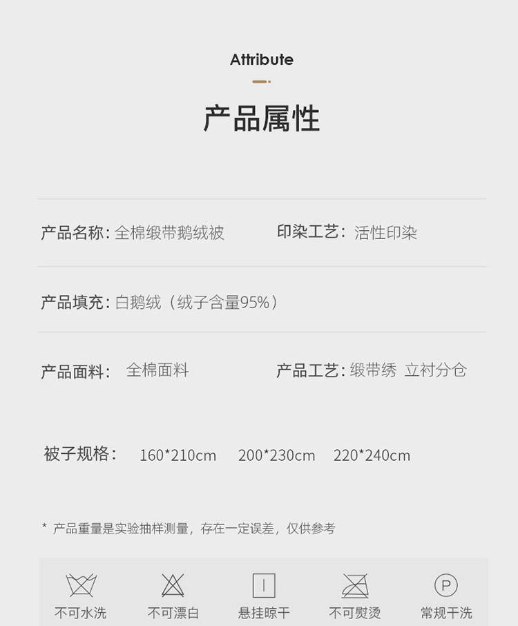 • 被子种类: 羽绒被