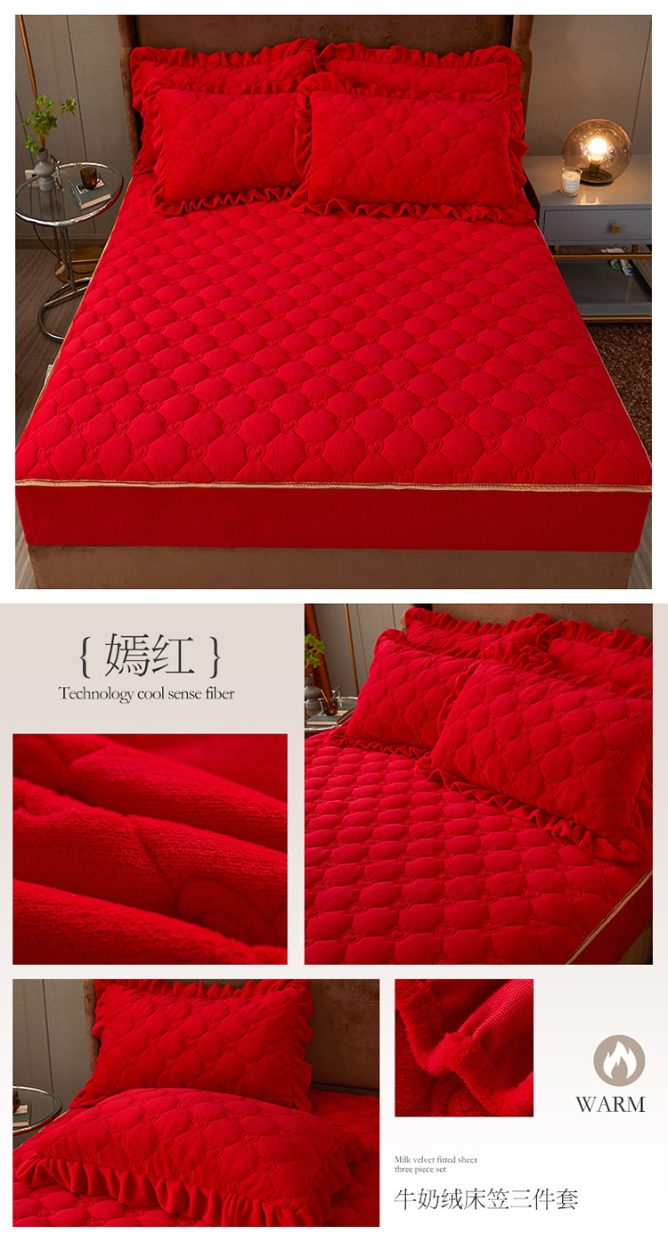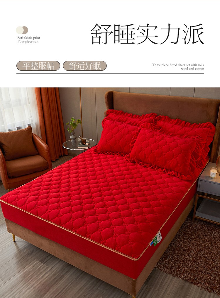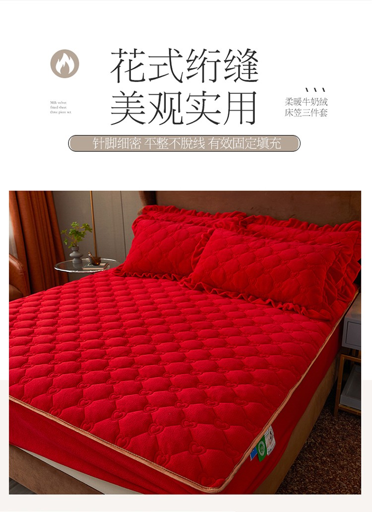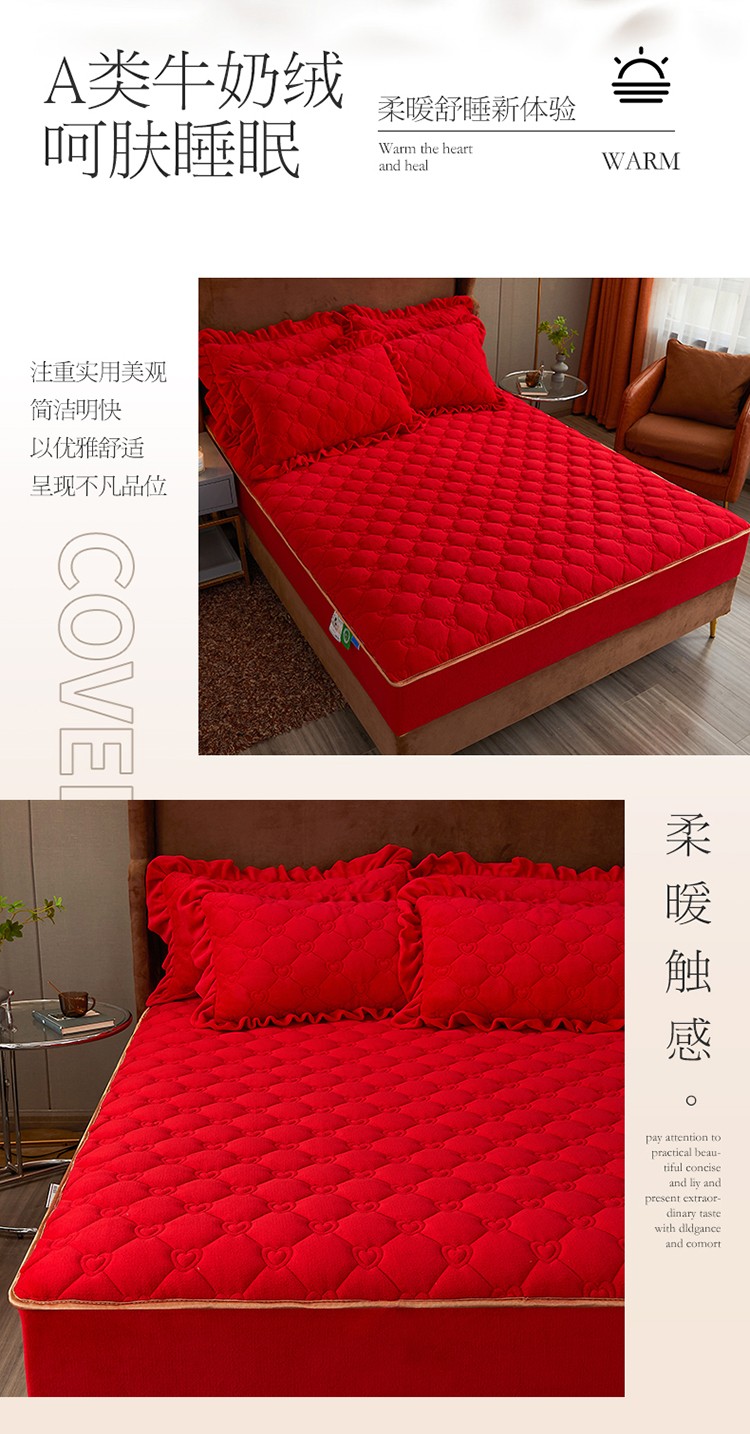 商品名称:宜凡2022新款牛奶绒纯色夹棉床笠 嫣红