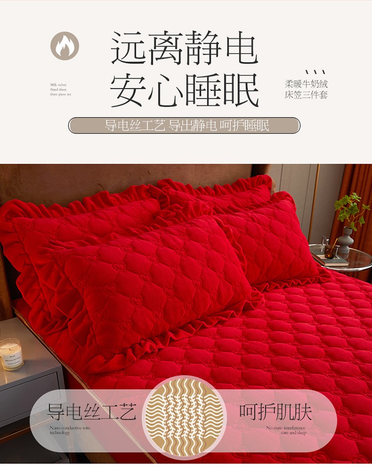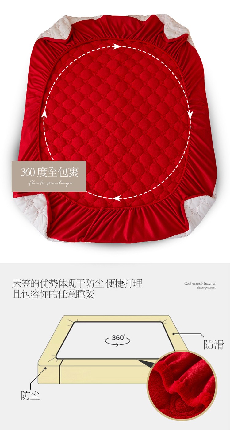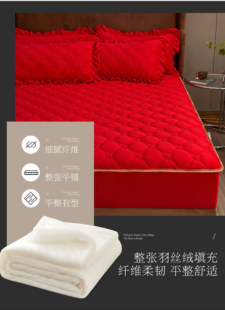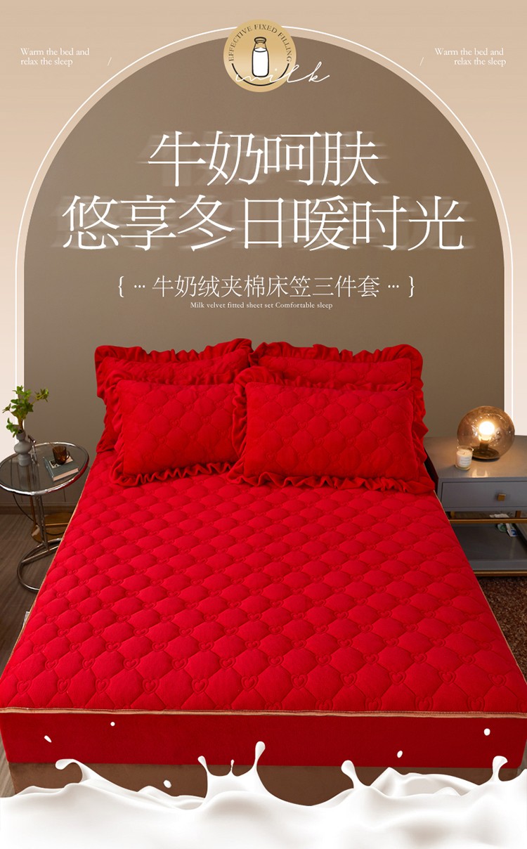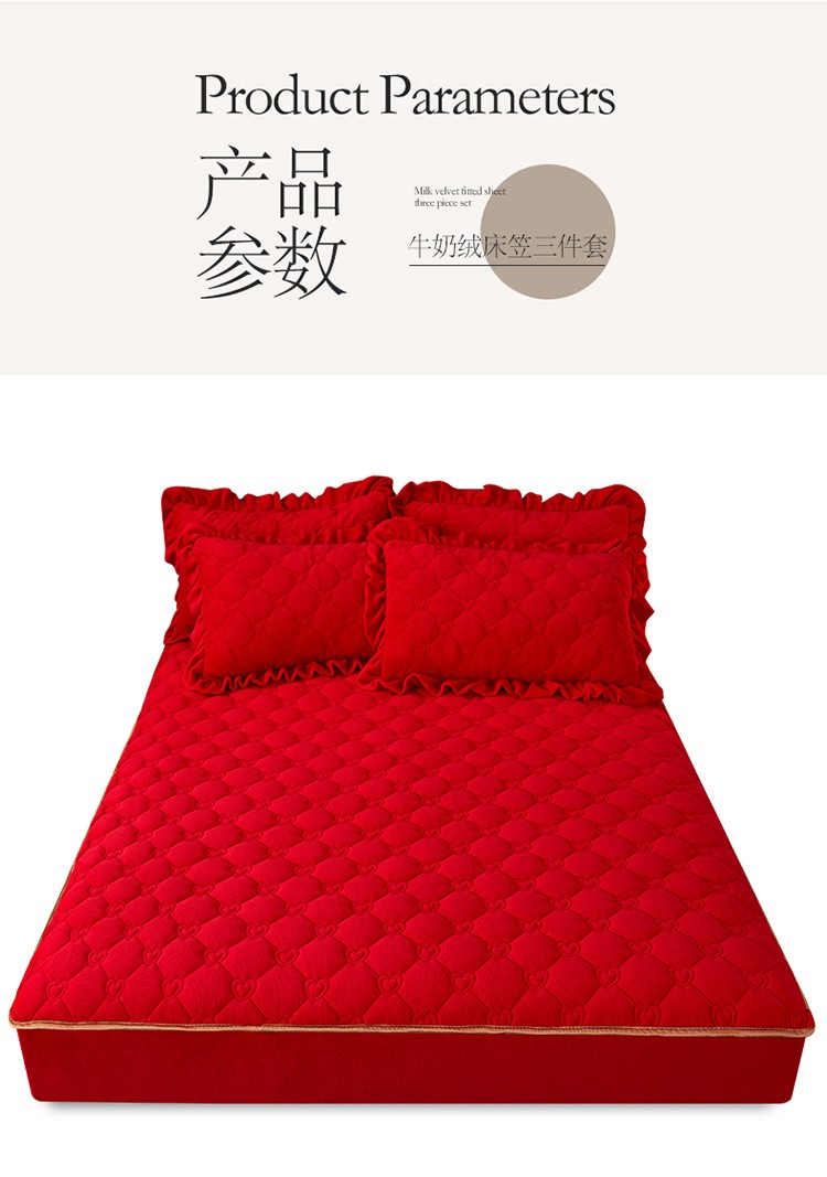 商品名称:宜凡2022新款牛奶绒纯色夹棉床笠 嫣红