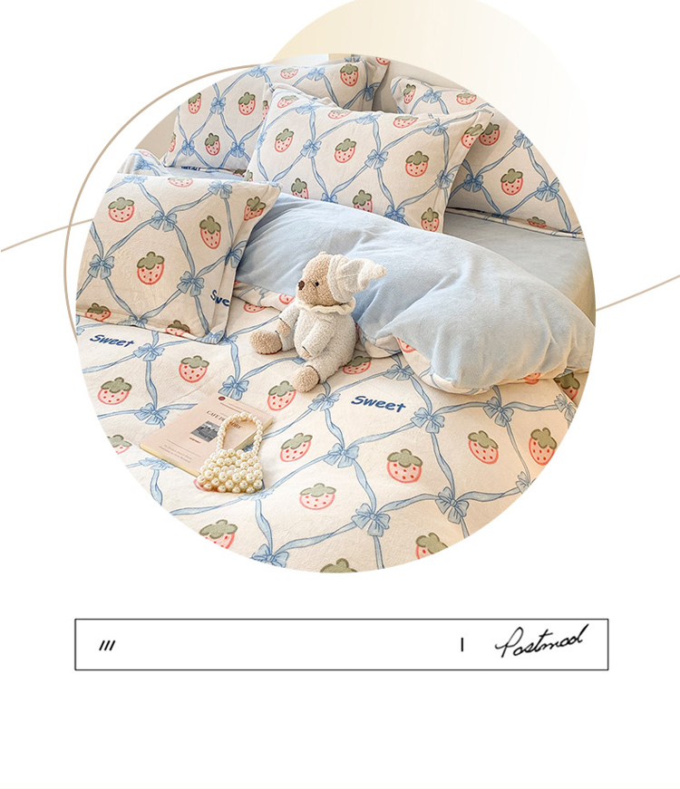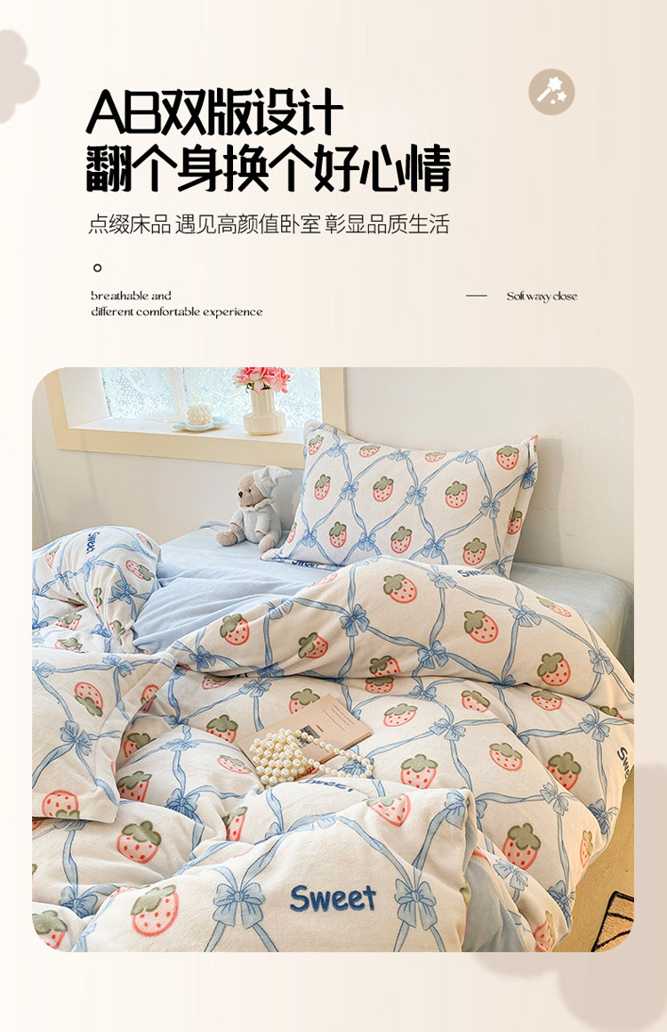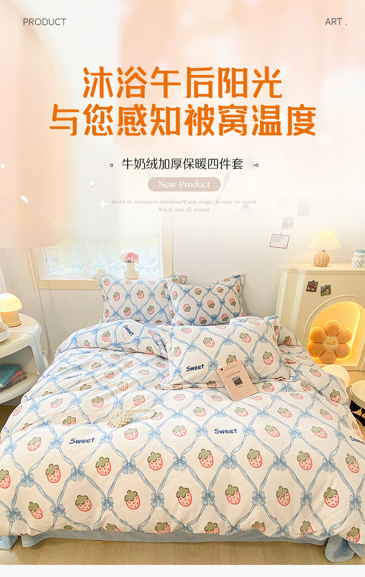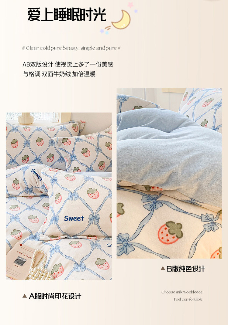 沐慕 2022新款牛奶绒四件套 甜心草莓