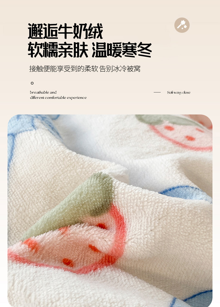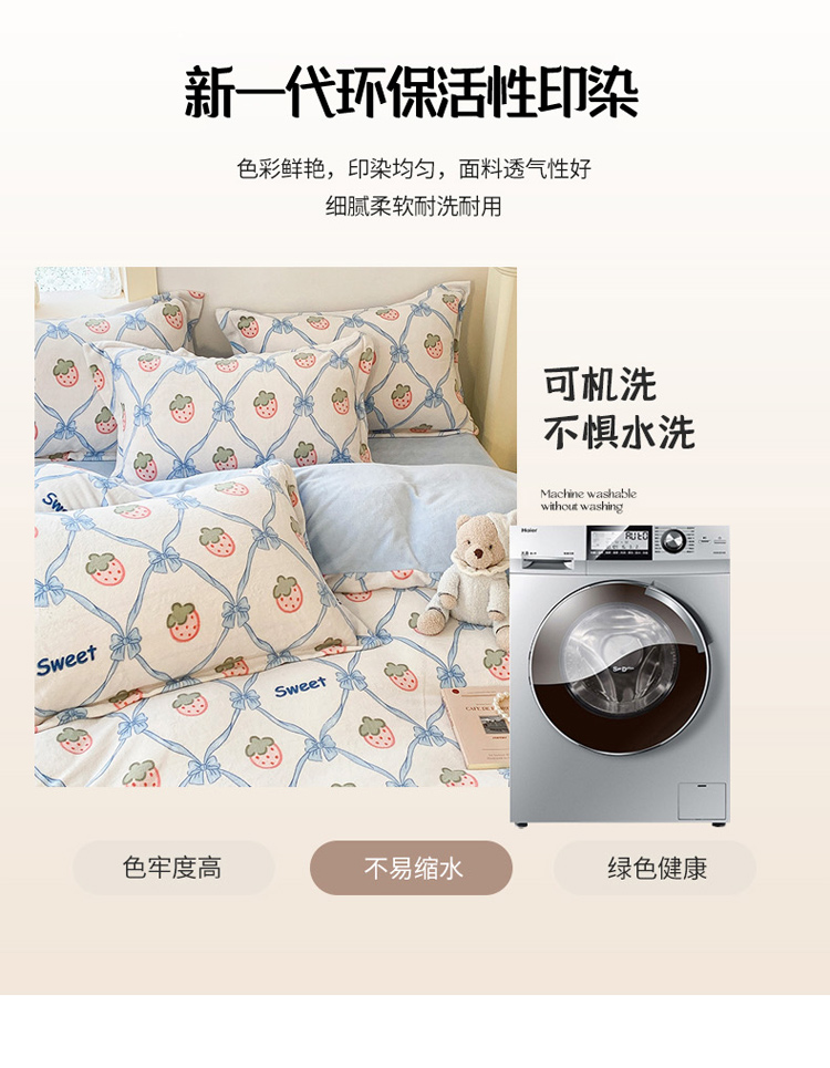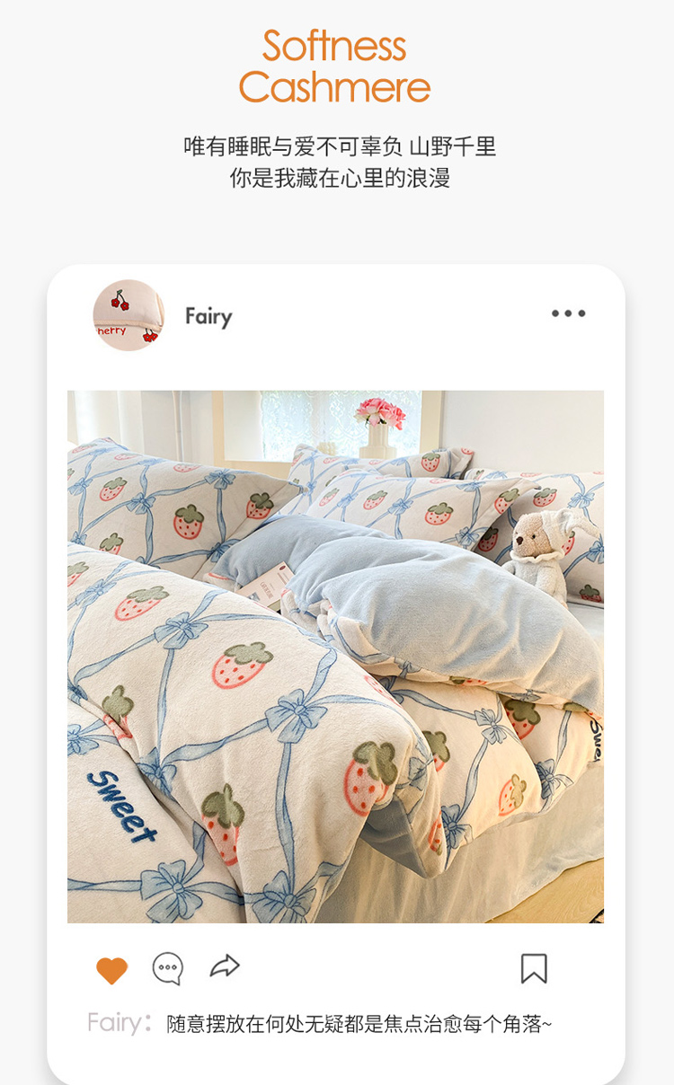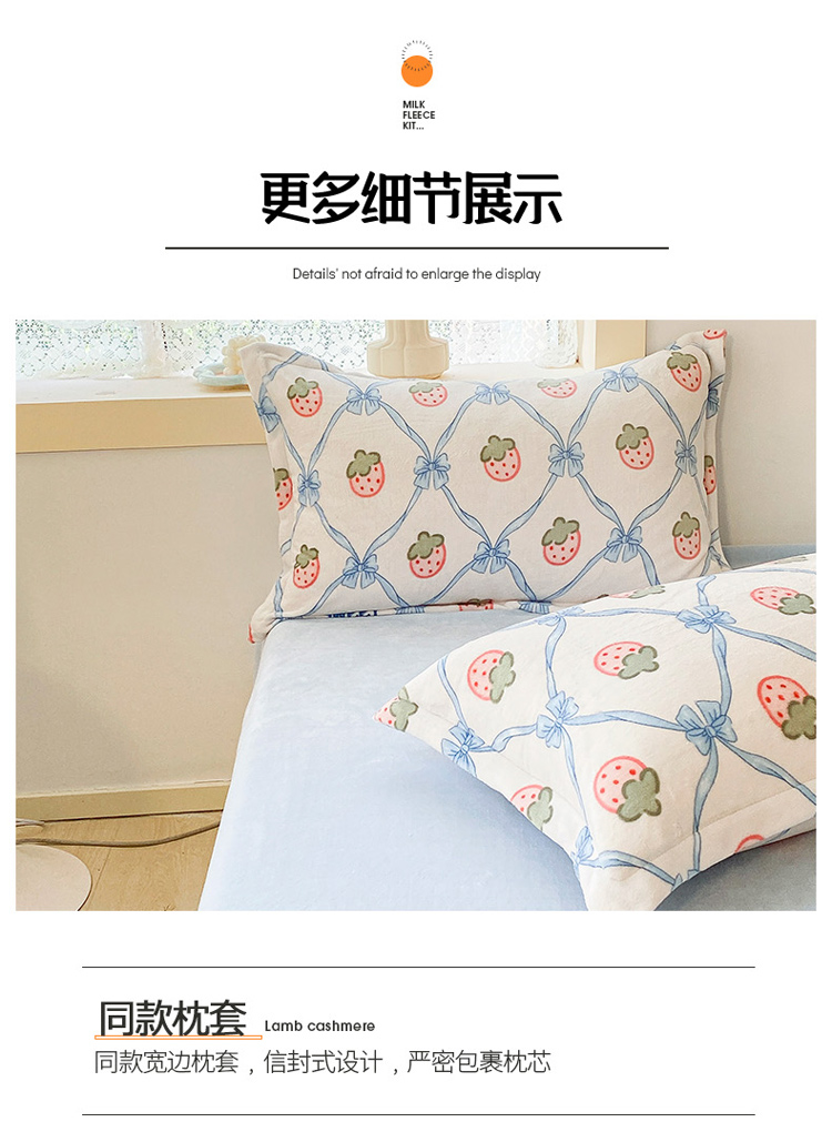 沐慕 2022新款牛奶绒四件套 甜心草莓