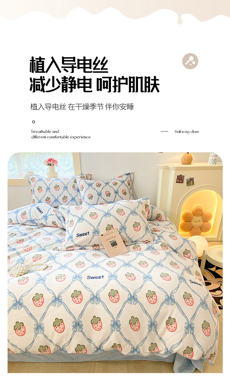 商品名称:沐慕 2022新款牛奶绒四件套 甜心草莓