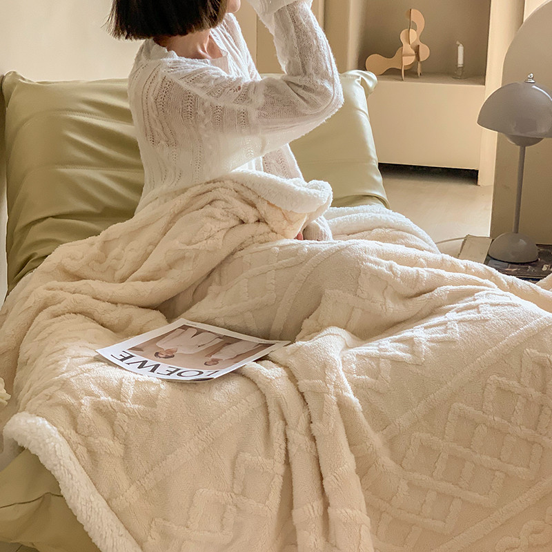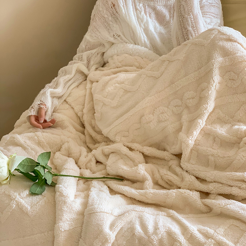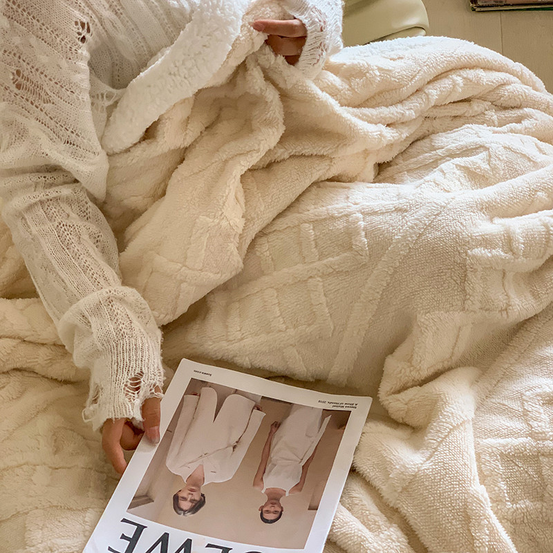 昔可家纺 2022新款ins风纯色保暖塔塔绒多功能毛毯 波纹米色