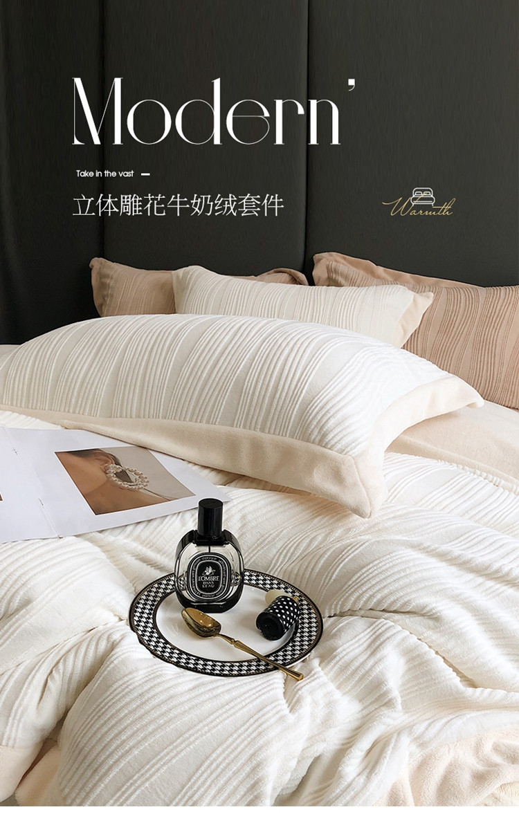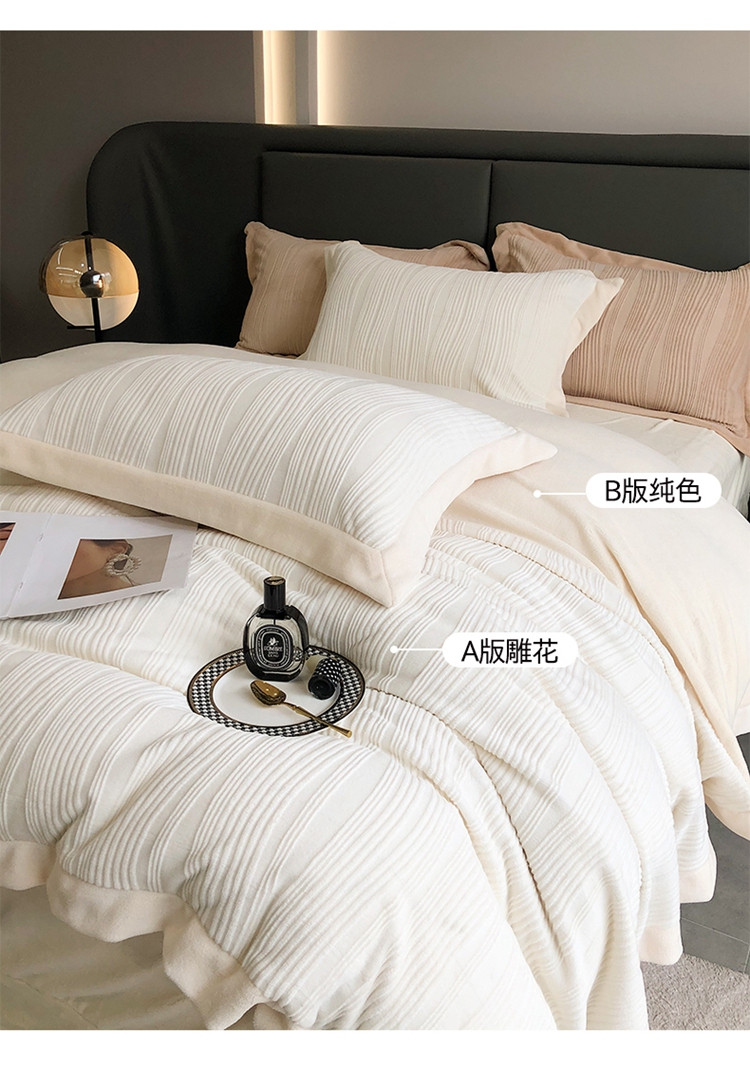 当前位置: 91家纺网 > 商品网购 > 床品套件 > 四件套 > 牛奶绒四件套 > (总)瑞雪 2025新款牛奶绒雕花四件套-唯美