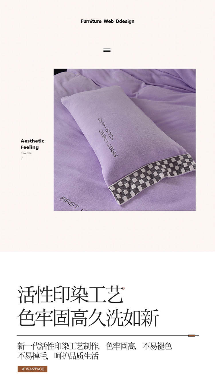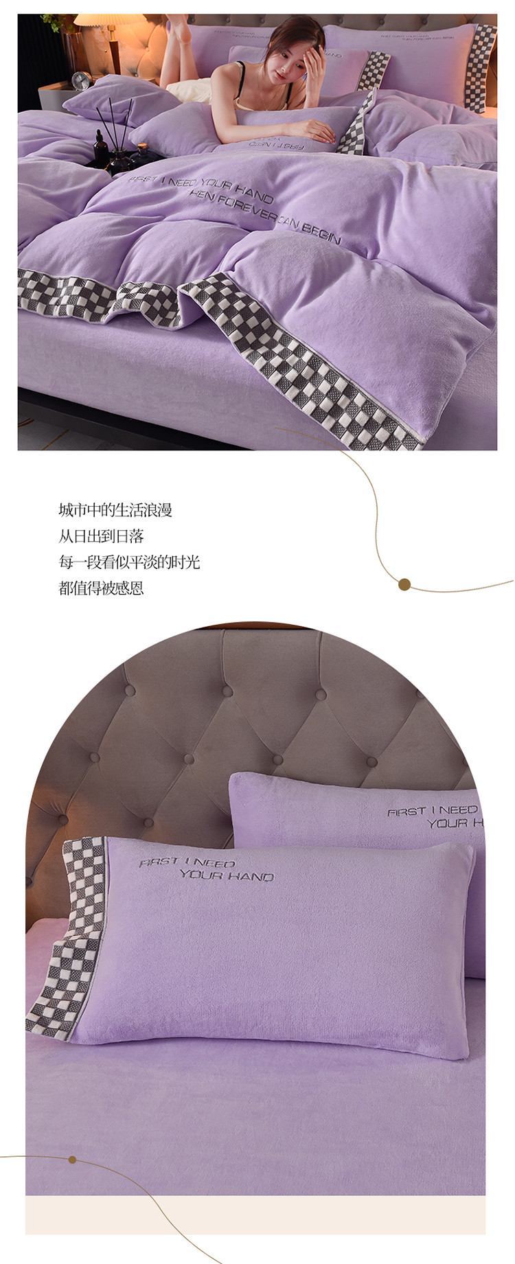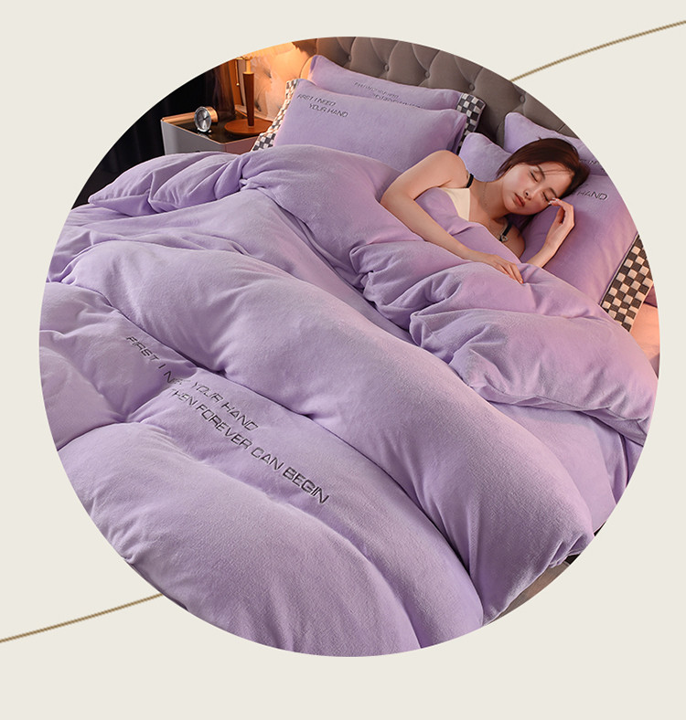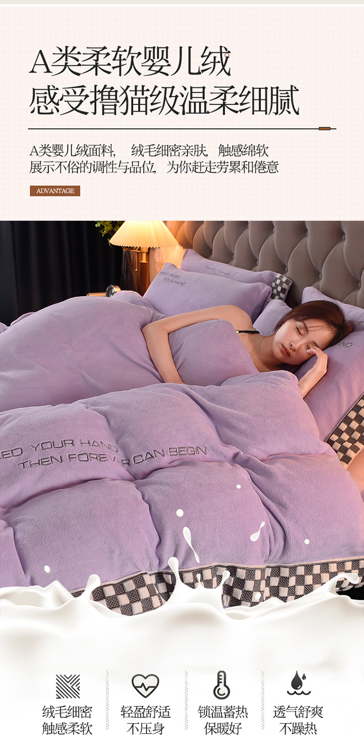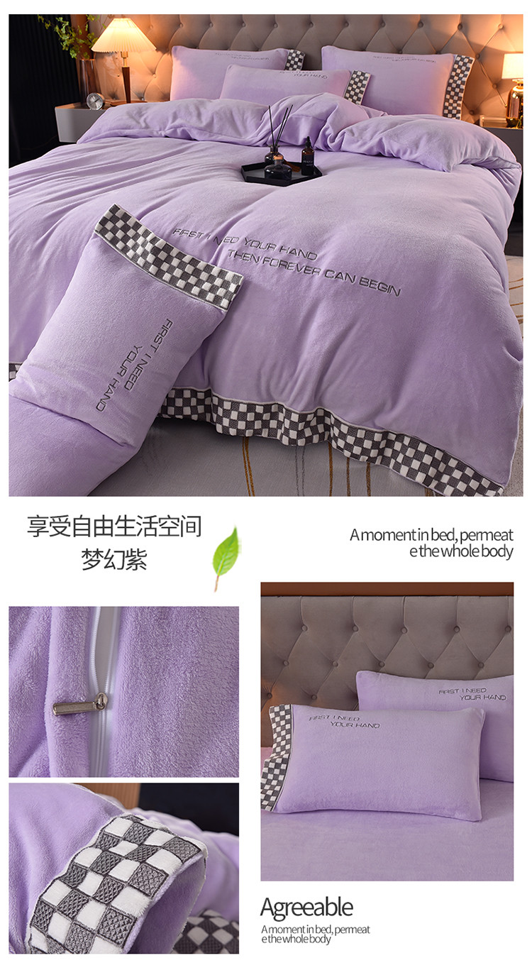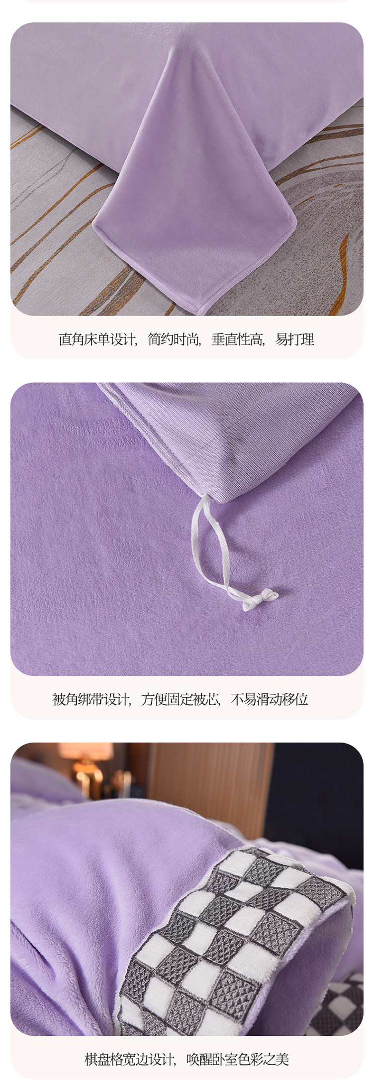 米奈 2024新款A类婴儿绒宽边四件套-贝利 梦幻紫