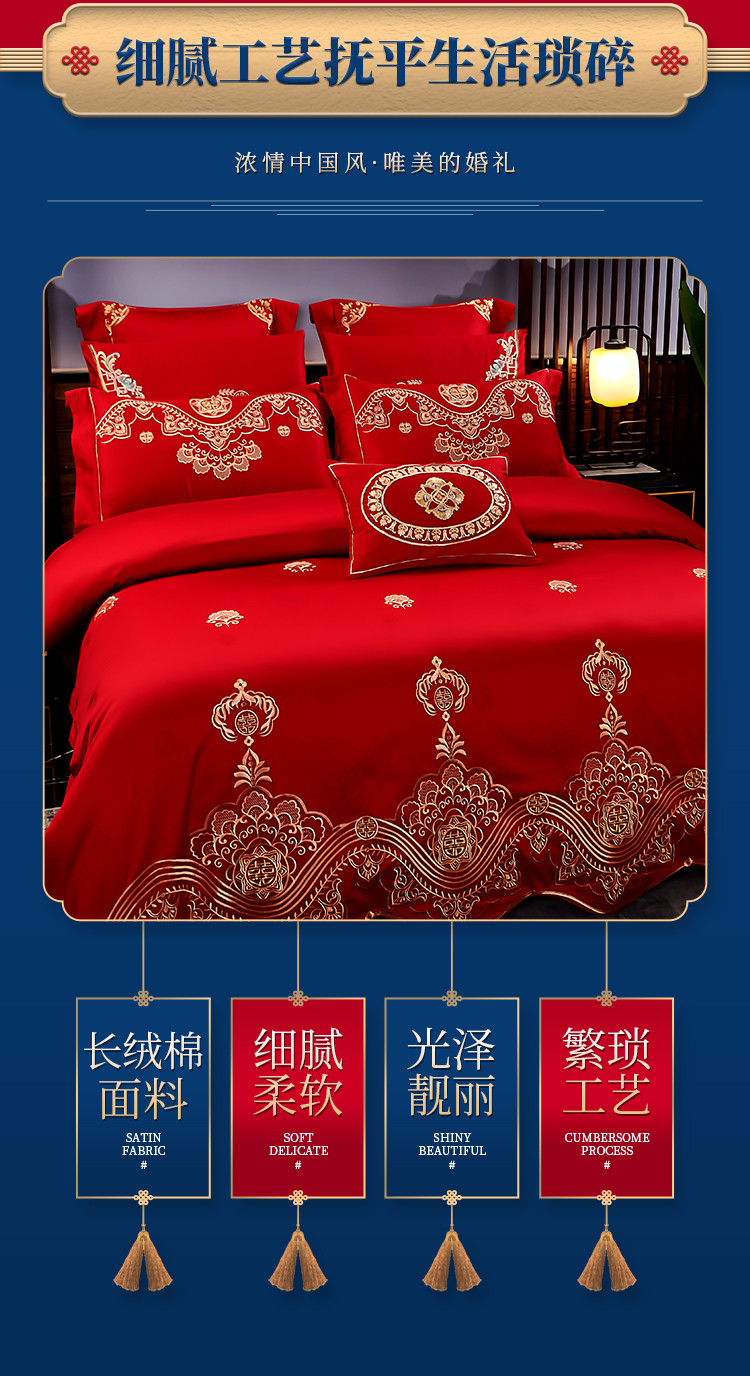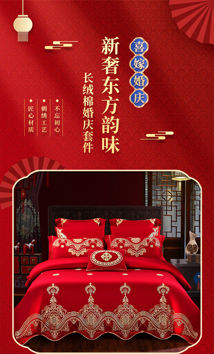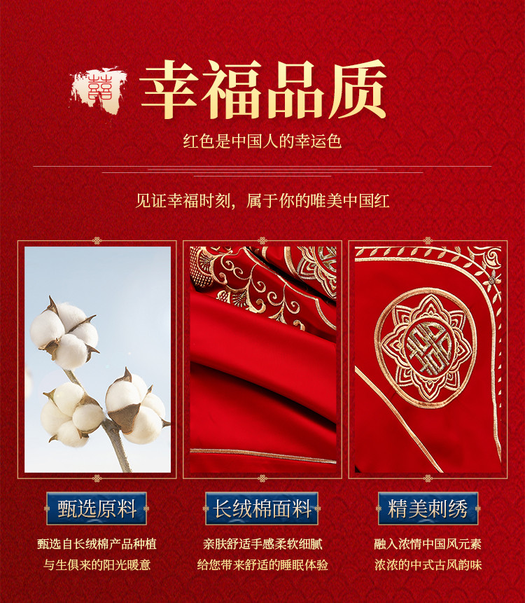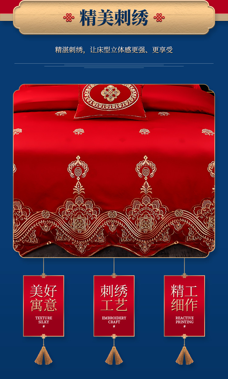 商品名称:皇潮婚庆馆 新款60支长绒棉婚庆四件套 倾城爱恋