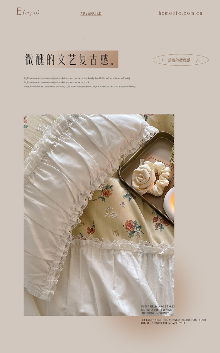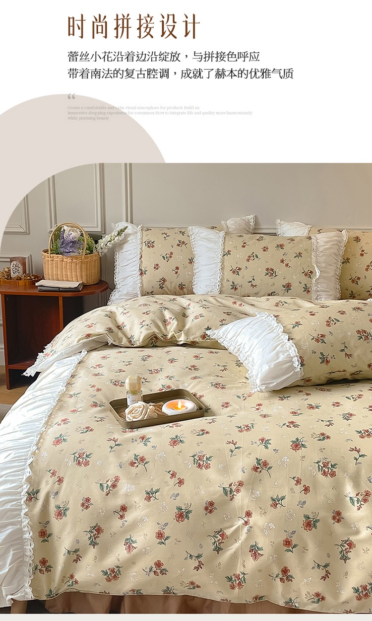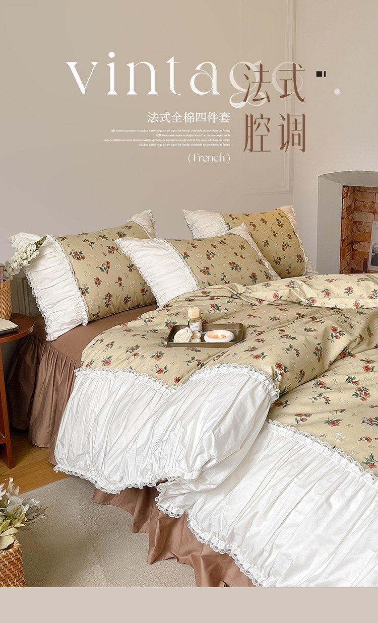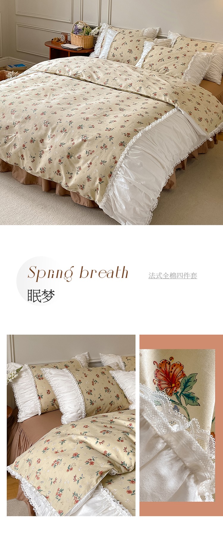 当前位置: 91家纺网 > 商品网购 > 床品套件 > 四件套 > 全棉普通四件套 > 婳庭 2023新款法式复古拼接纯棉四件套 眠梦