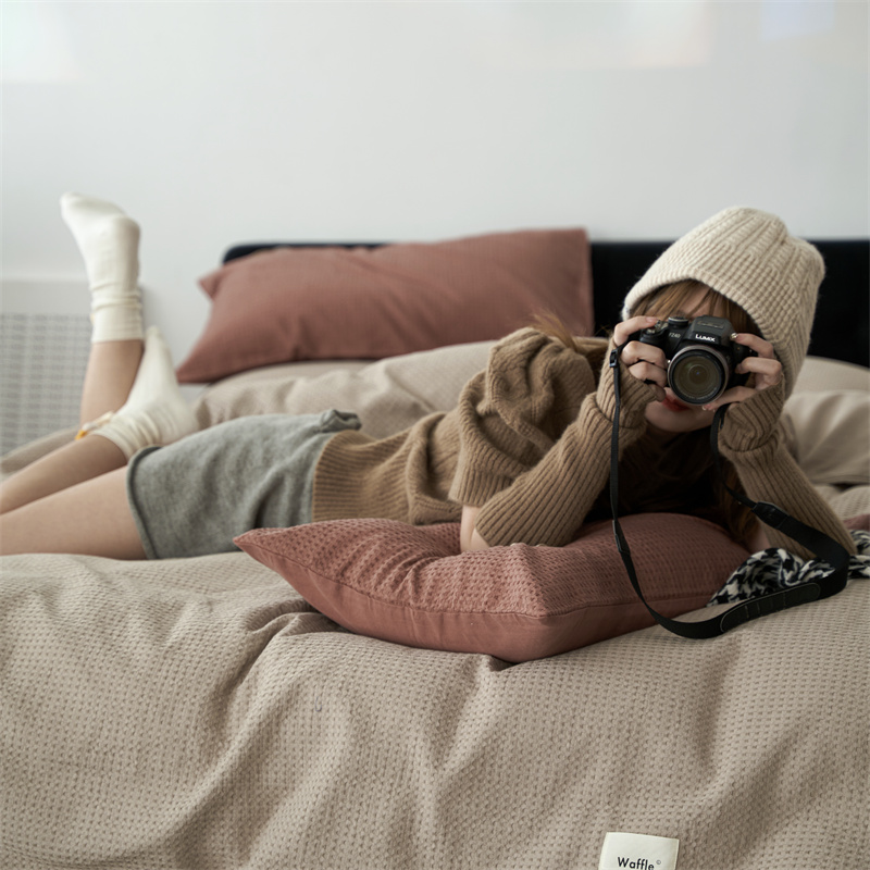 当前位置: 91家纺网 > 商品网购 > 床品套件 > 四件套 > 牛奶绒四件套 > 简家居2022新款华夫格二代全面升级系列四件套 杏咖+豆沙