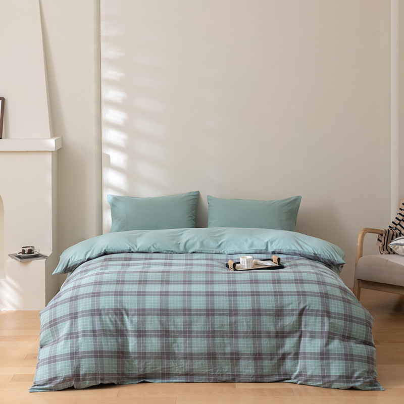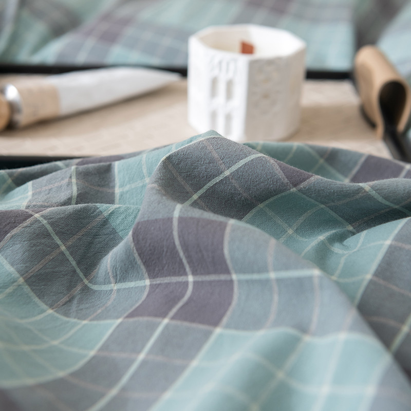 柠馨 2023新款全棉色织水洗棉单品被套 格纹绿