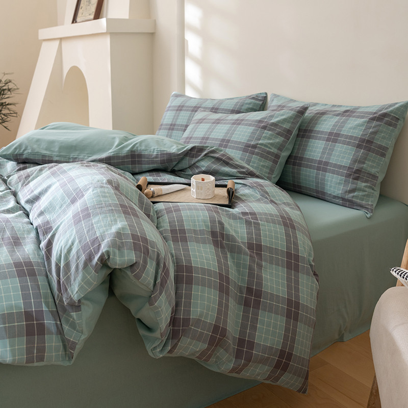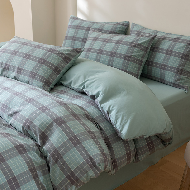 商品名称:柠馨 2023新款全棉色织水洗棉单品被套 格纹绿