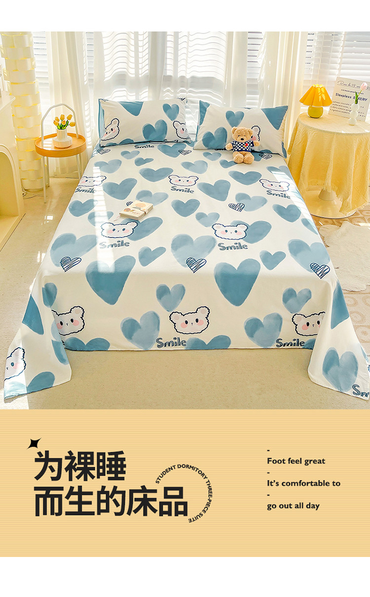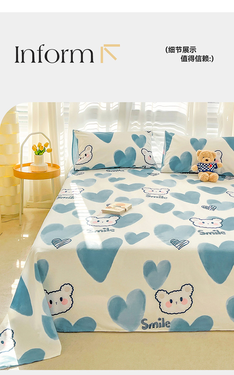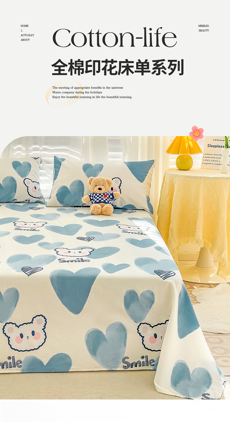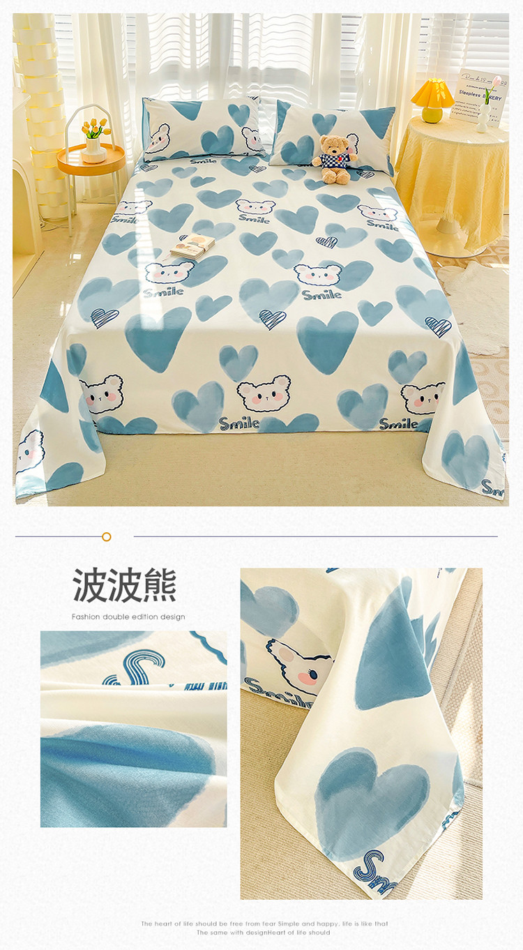 名兮 2023新款全棉印花床单 波波熊