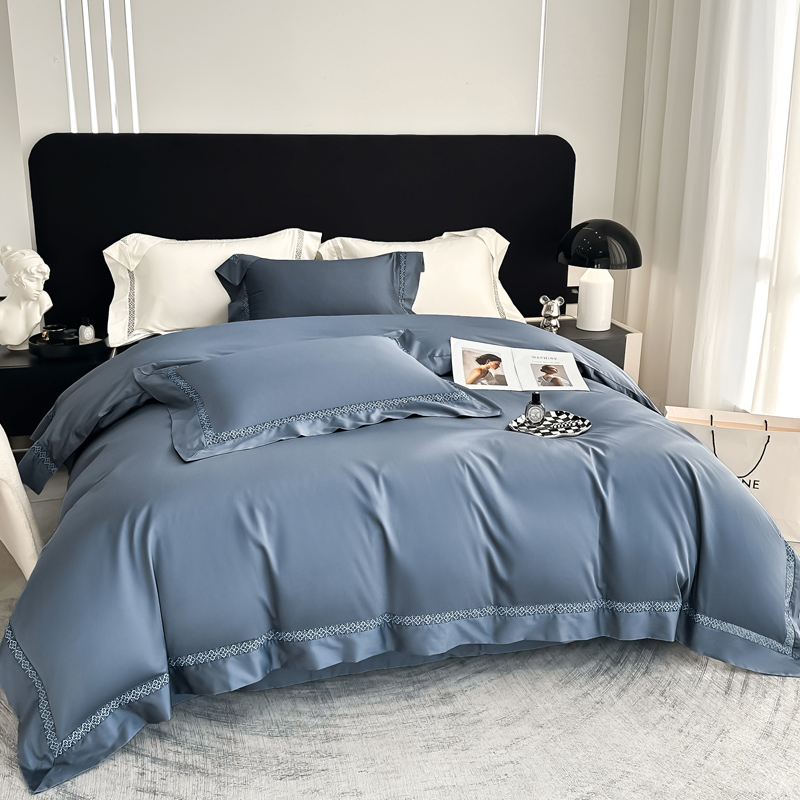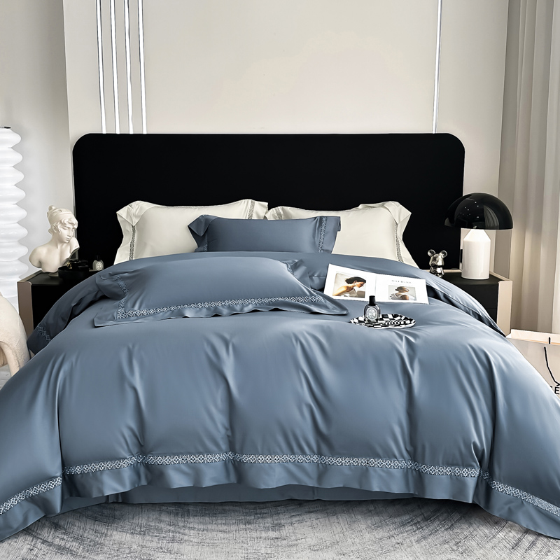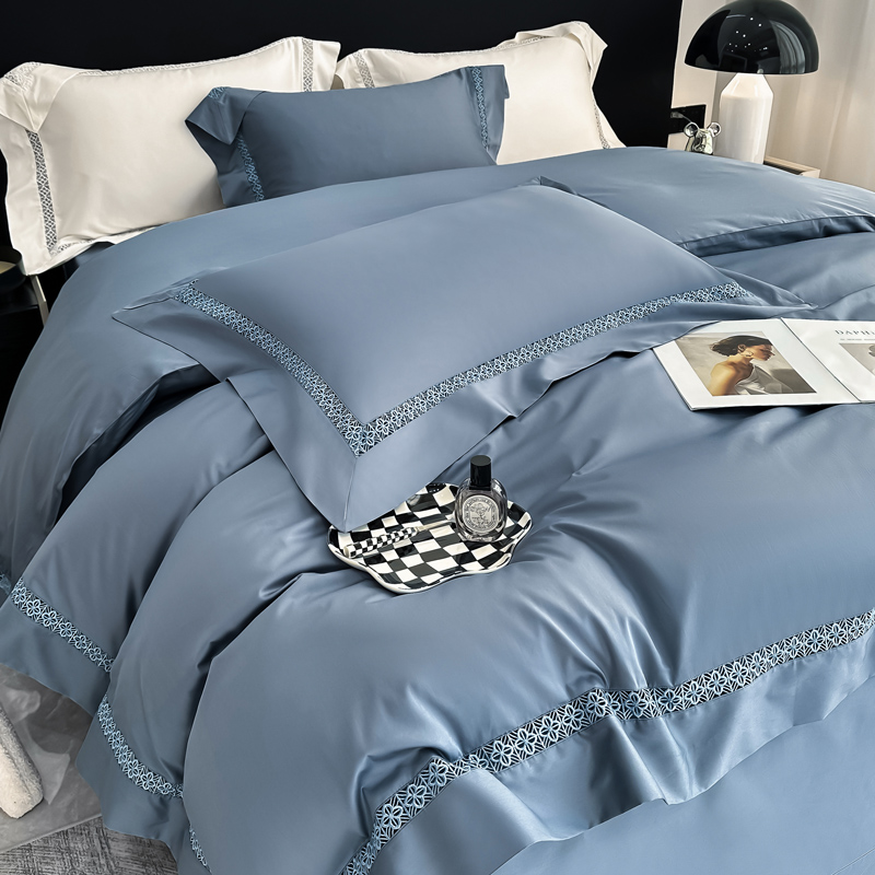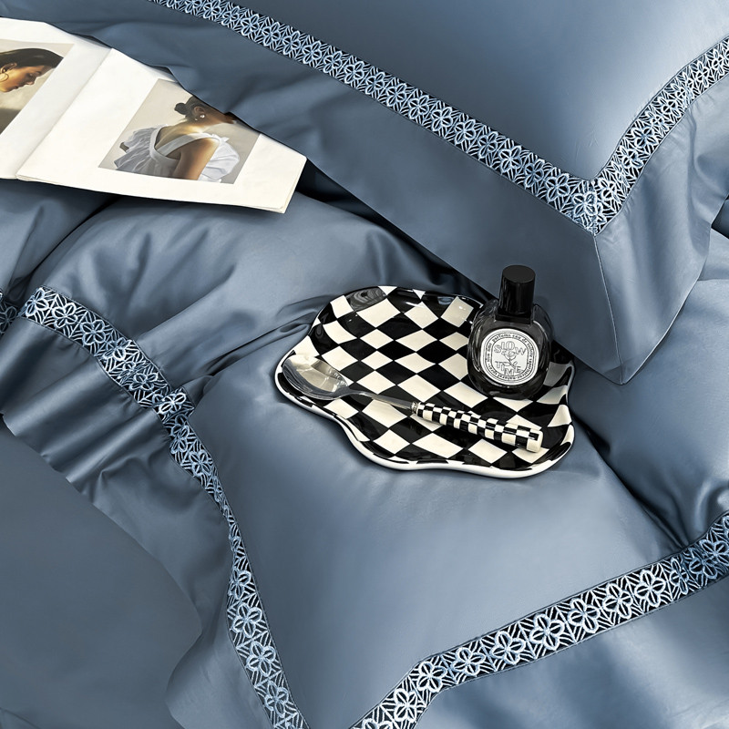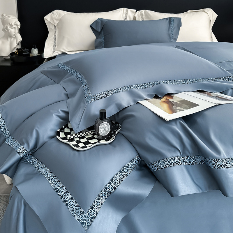 商品名称:若未 2023新款50支长绒棉镂空轻奢四件套-奢梵克 宾利蓝