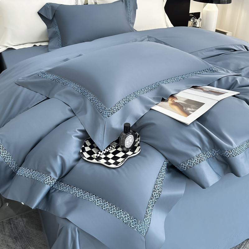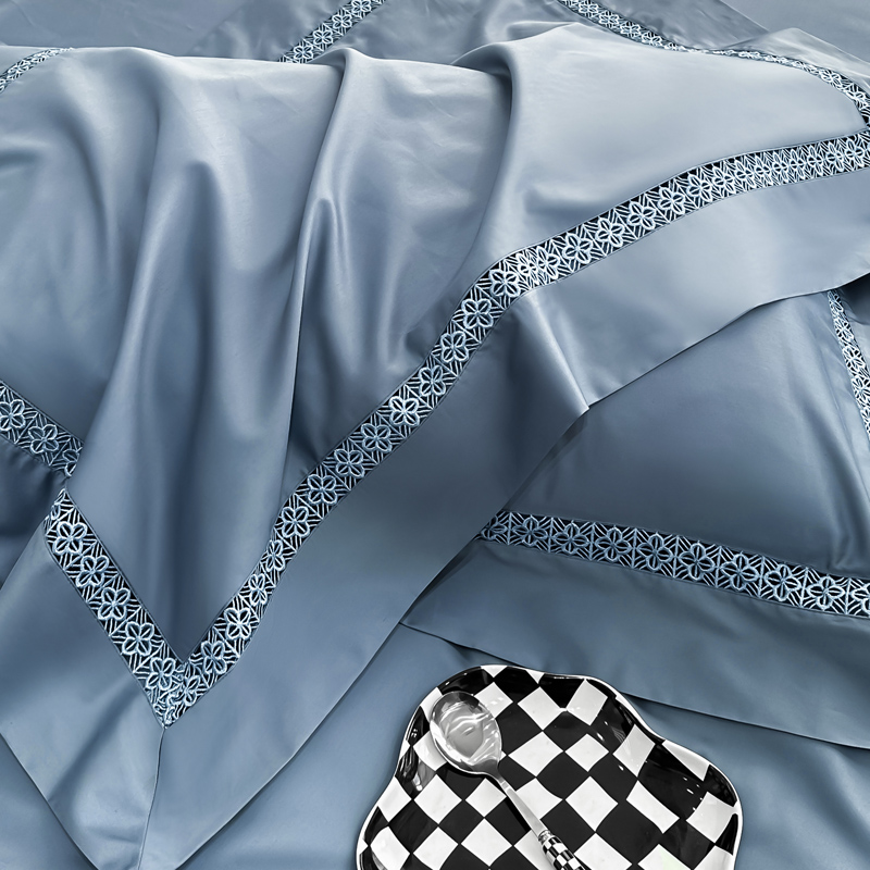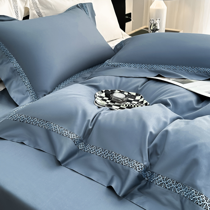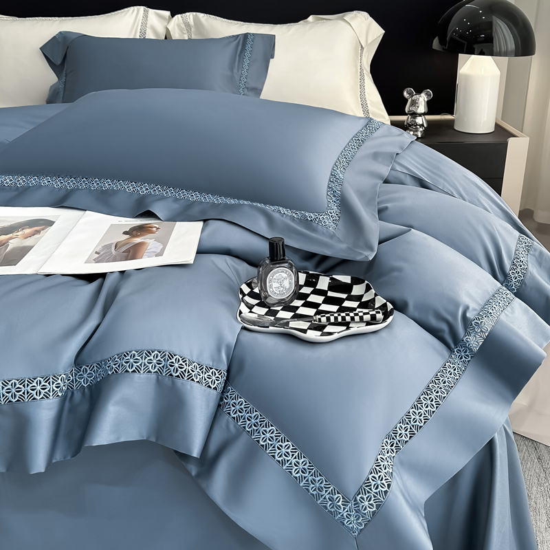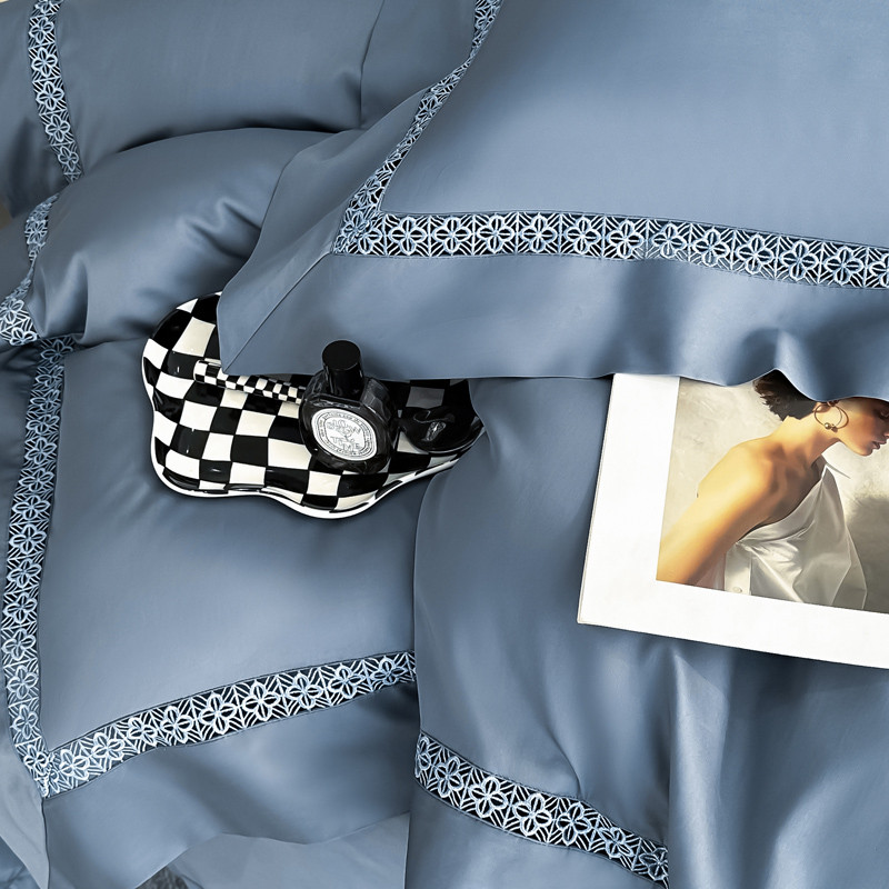 若未 2023新款50支长绒棉镂空轻奢四件套-奢梵克 宾利蓝