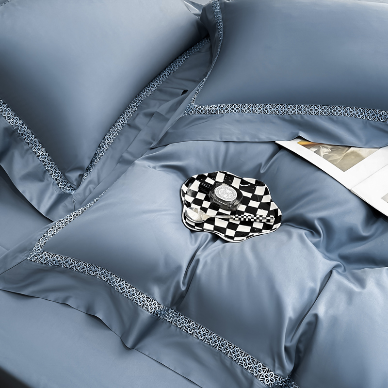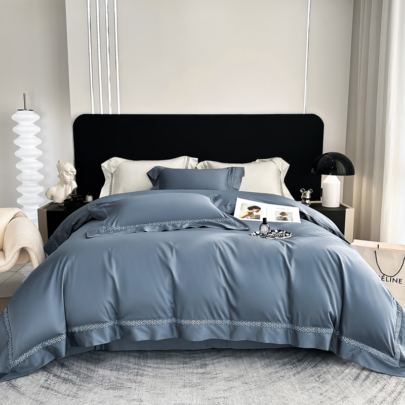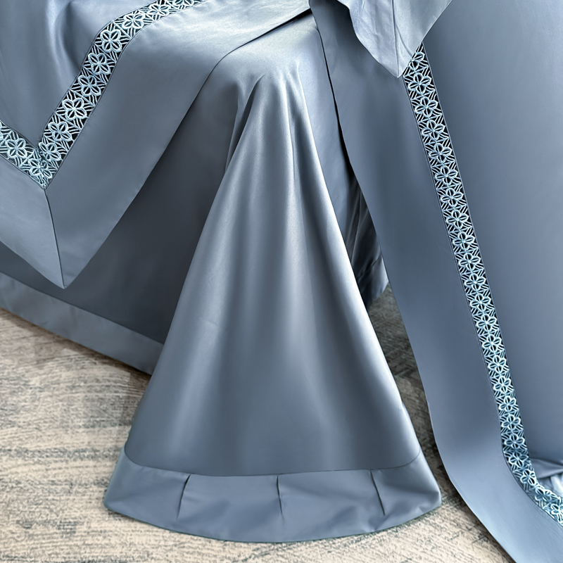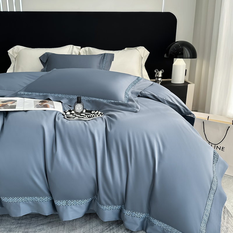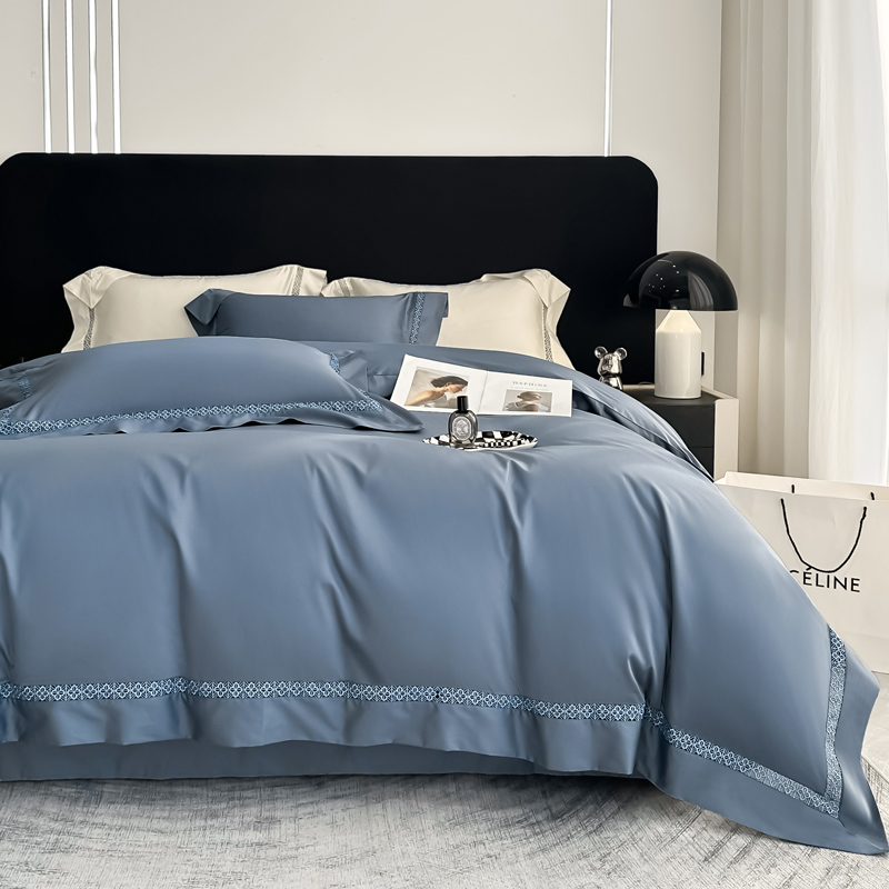 若未 2023新款50支长绒棉镂空轻奢四件套-奢梵克 宾利蓝