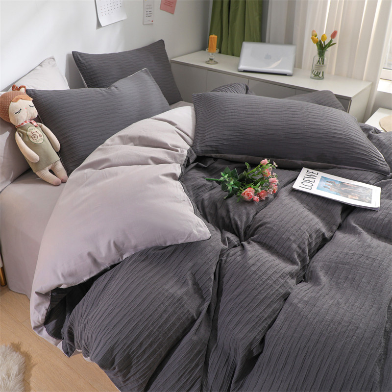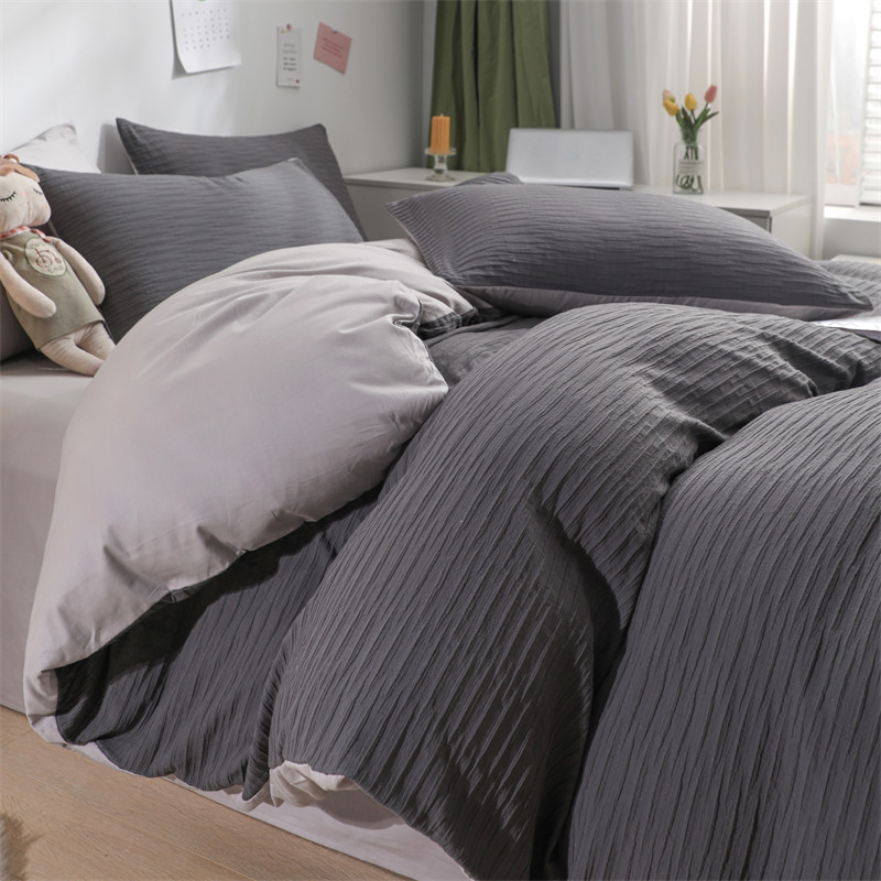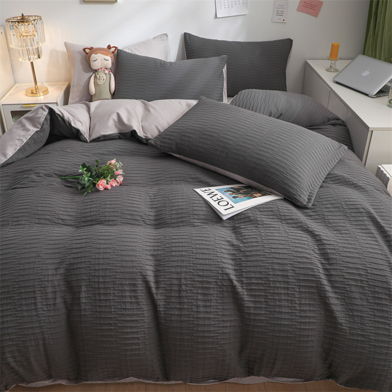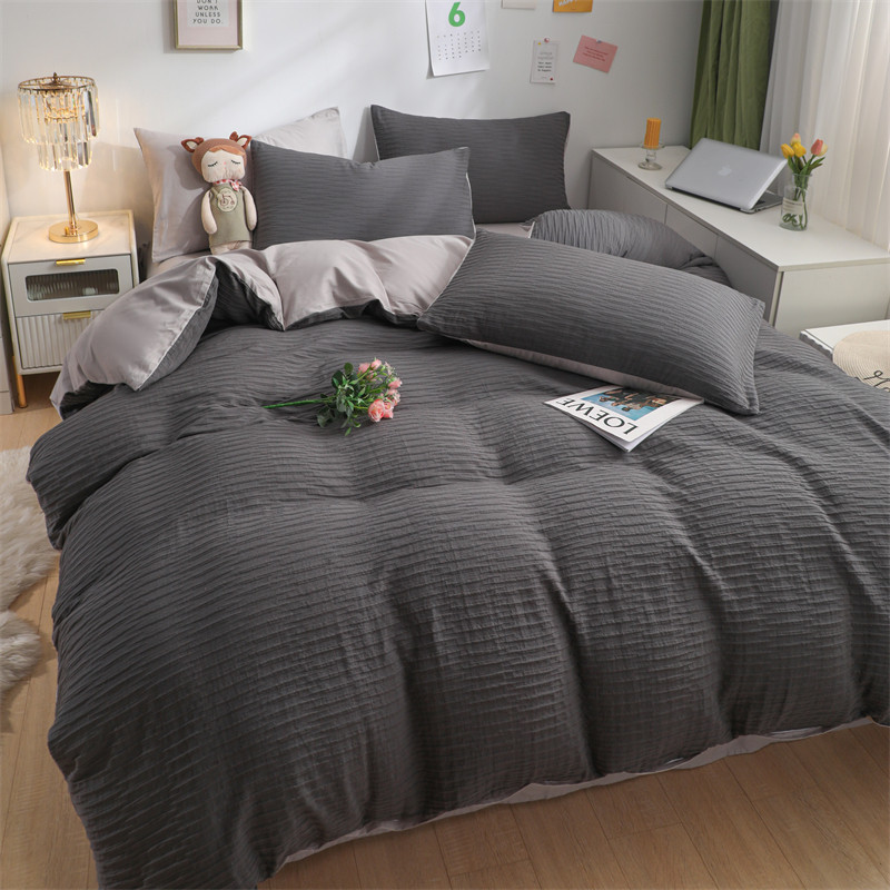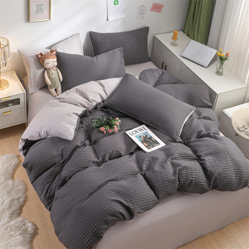 商品名称:沐晴家纺 2023新款泡泡纱四件套 黑灰