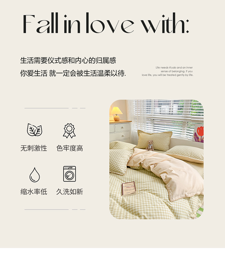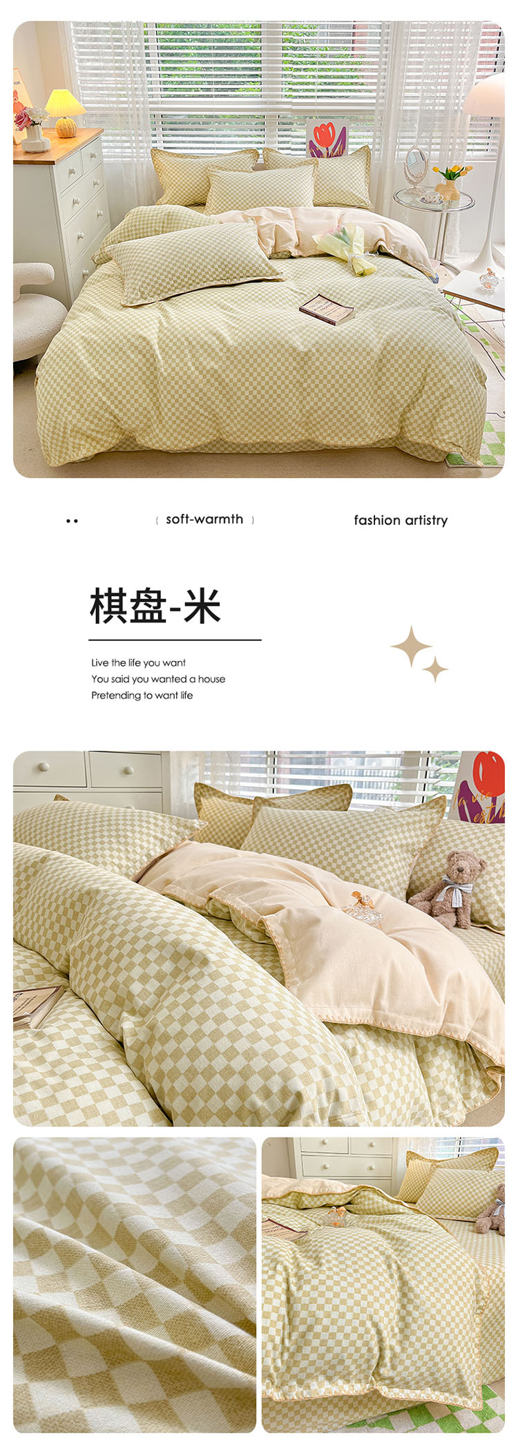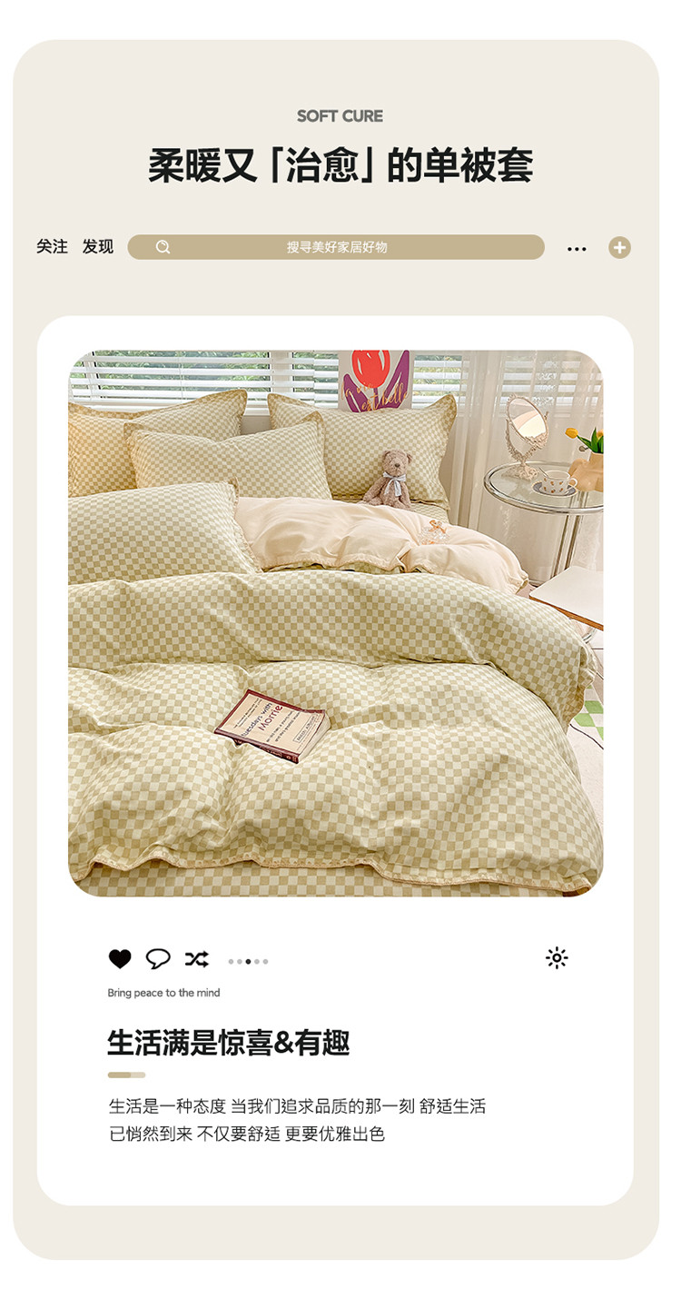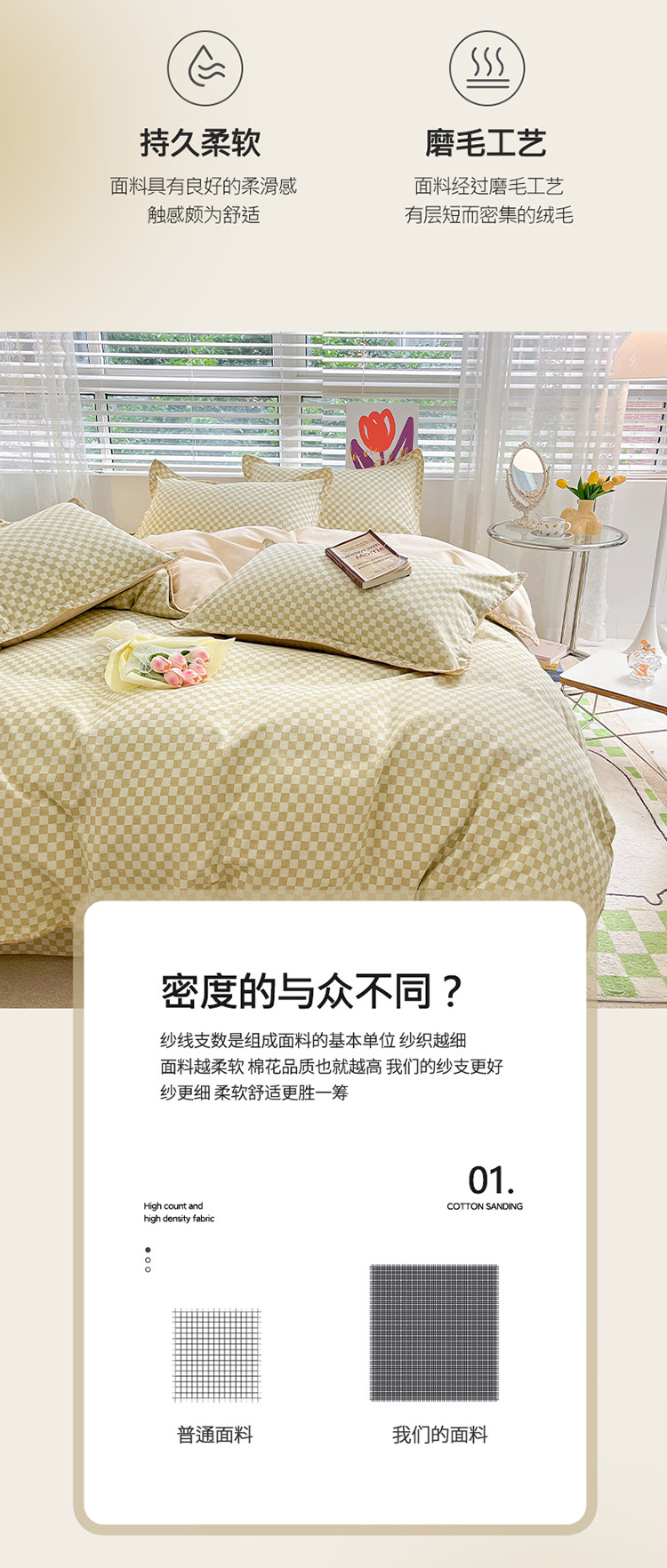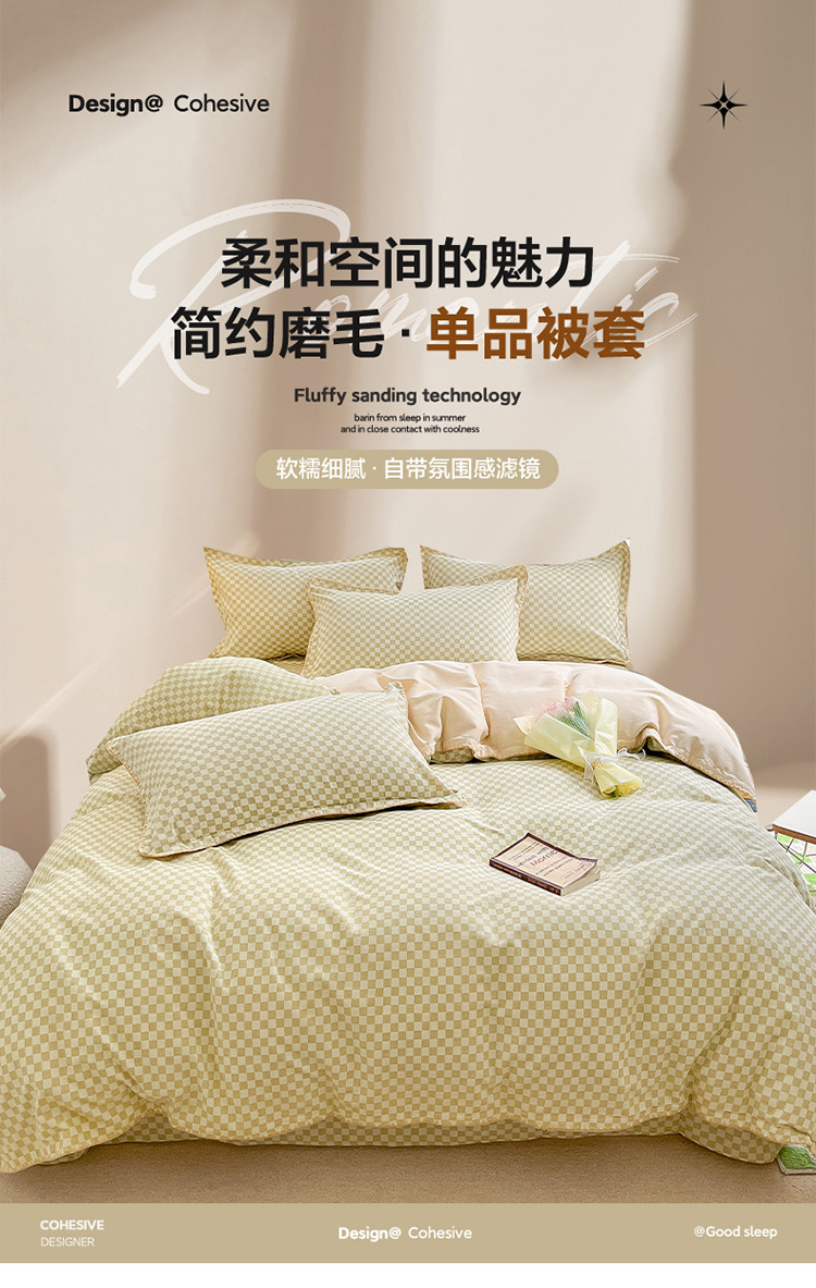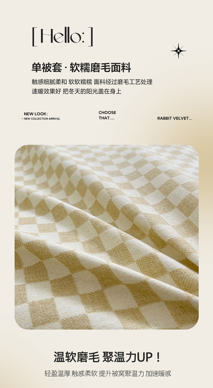 商品名称:帅露 2023新款碳素小磨毛单品被套 棋盘-米