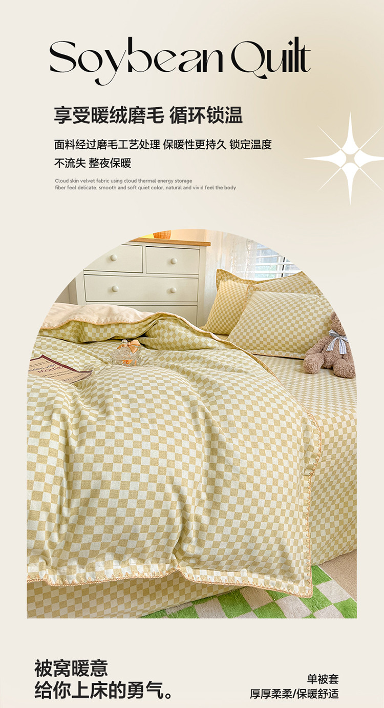 帅露 2023新款碳素小磨毛单品被套 棋盘-米