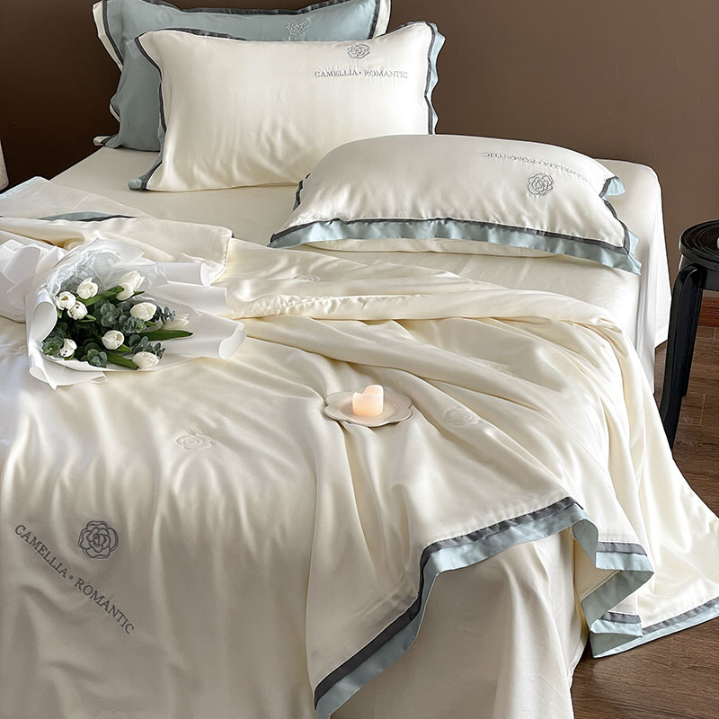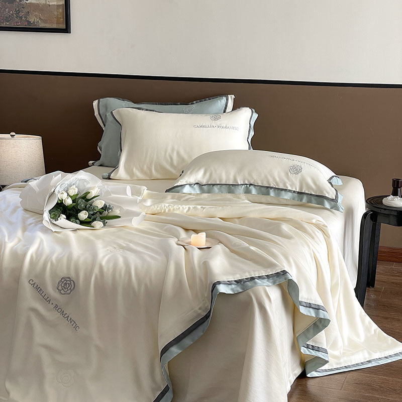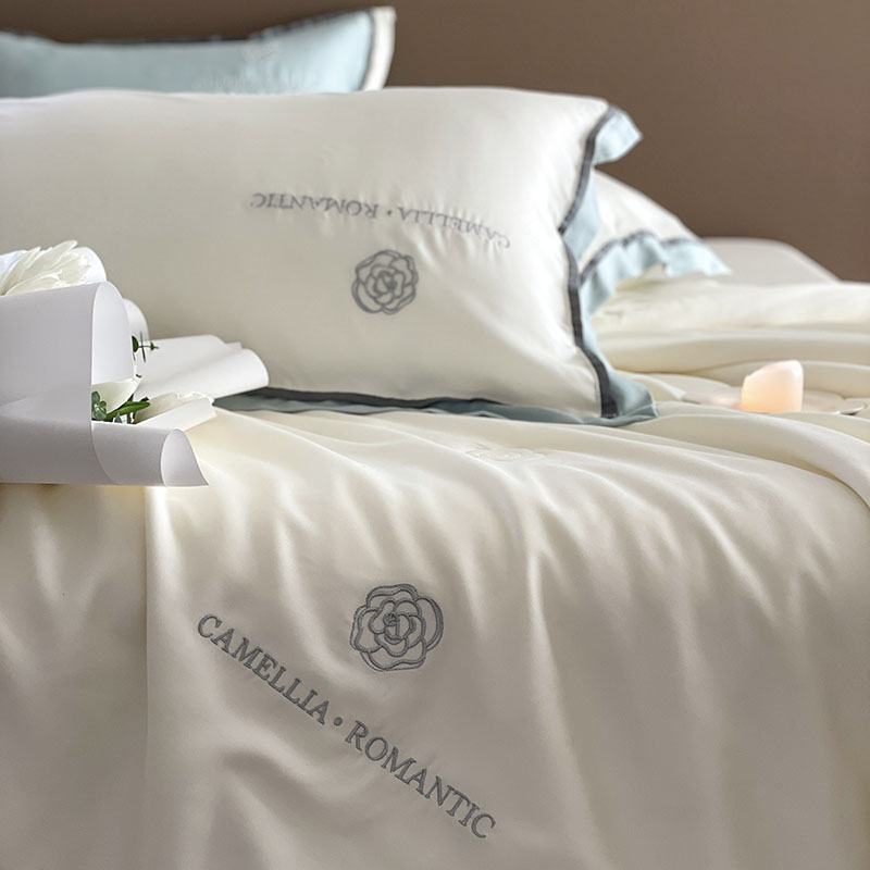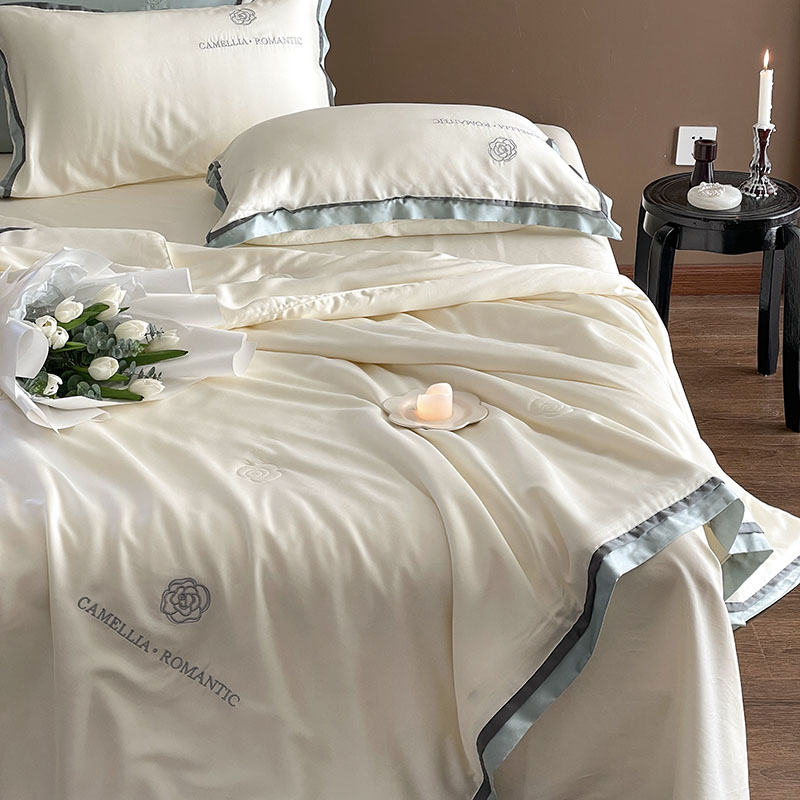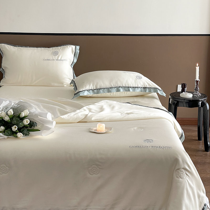 商品名称:汇庭 2023新款大豆蛋白纤维山茶花夏被 珍珠白