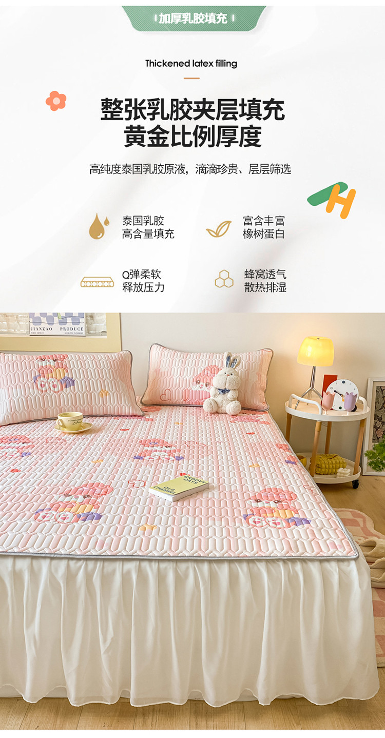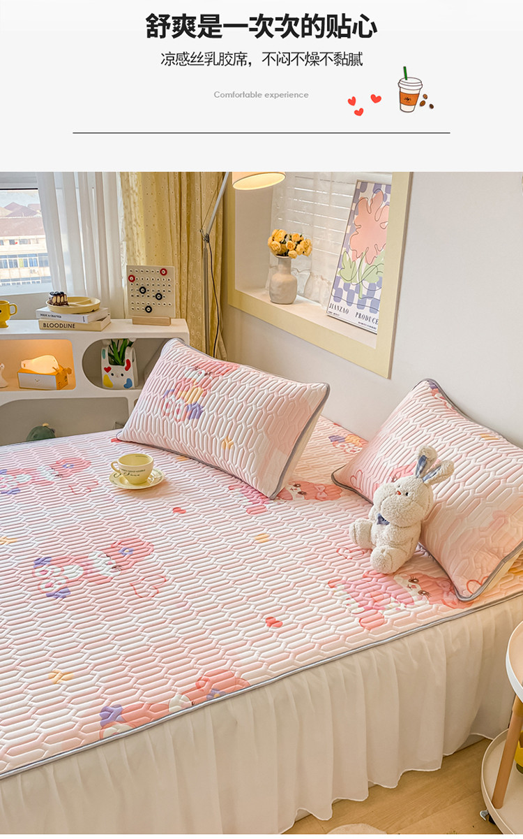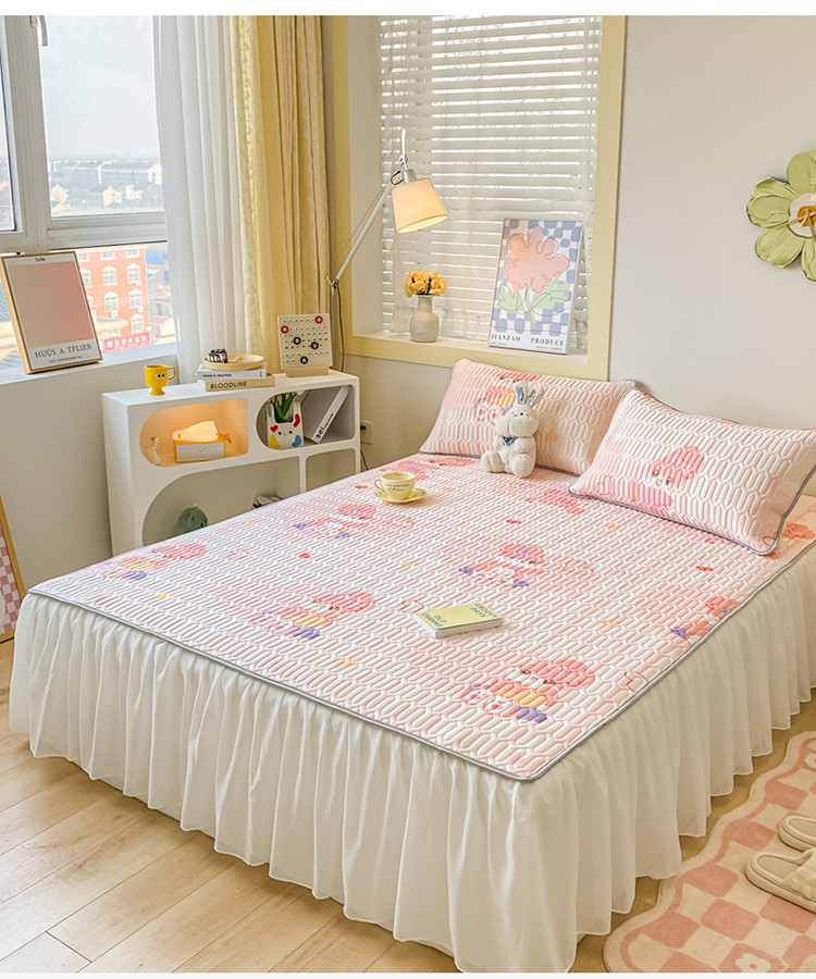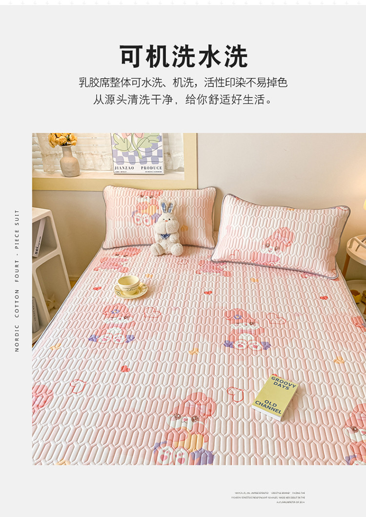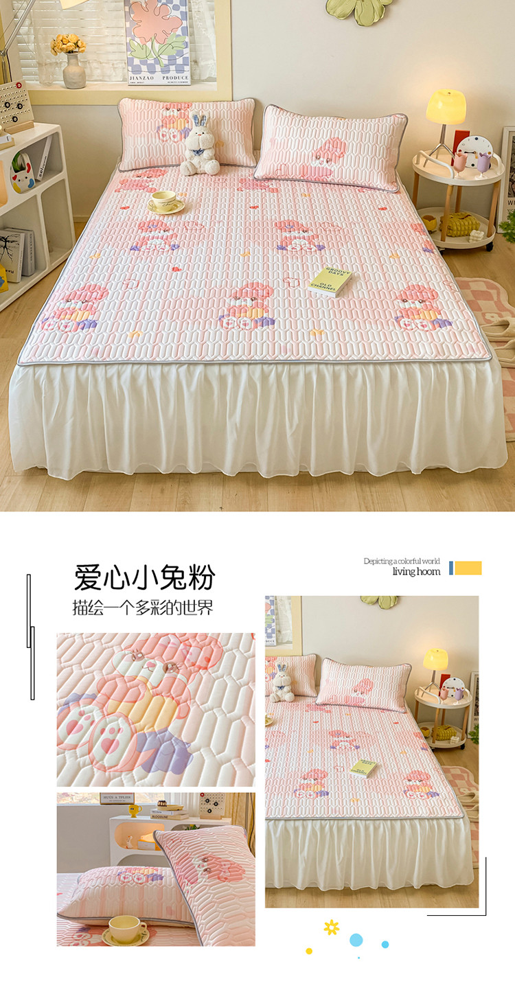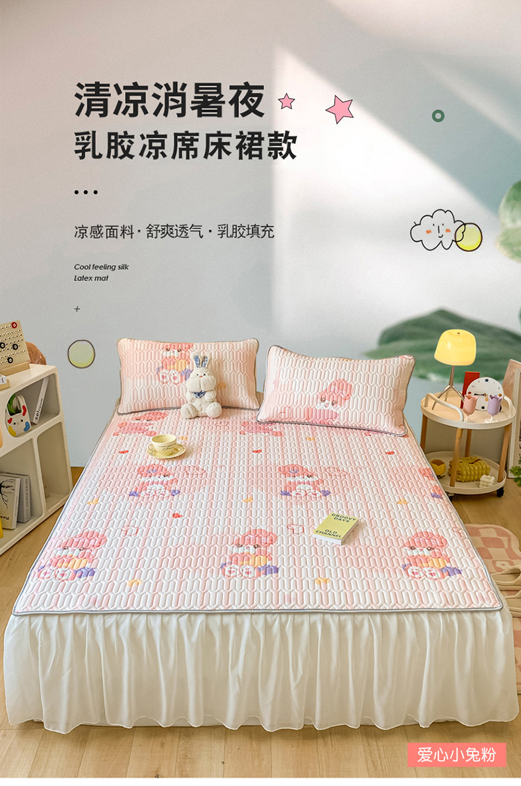 商品名称:金爱家 2023新款凉感丝乳胶软凉席床裙款三件套 爱心小兔粉