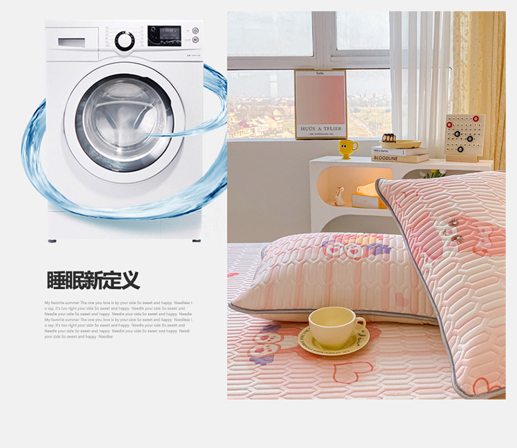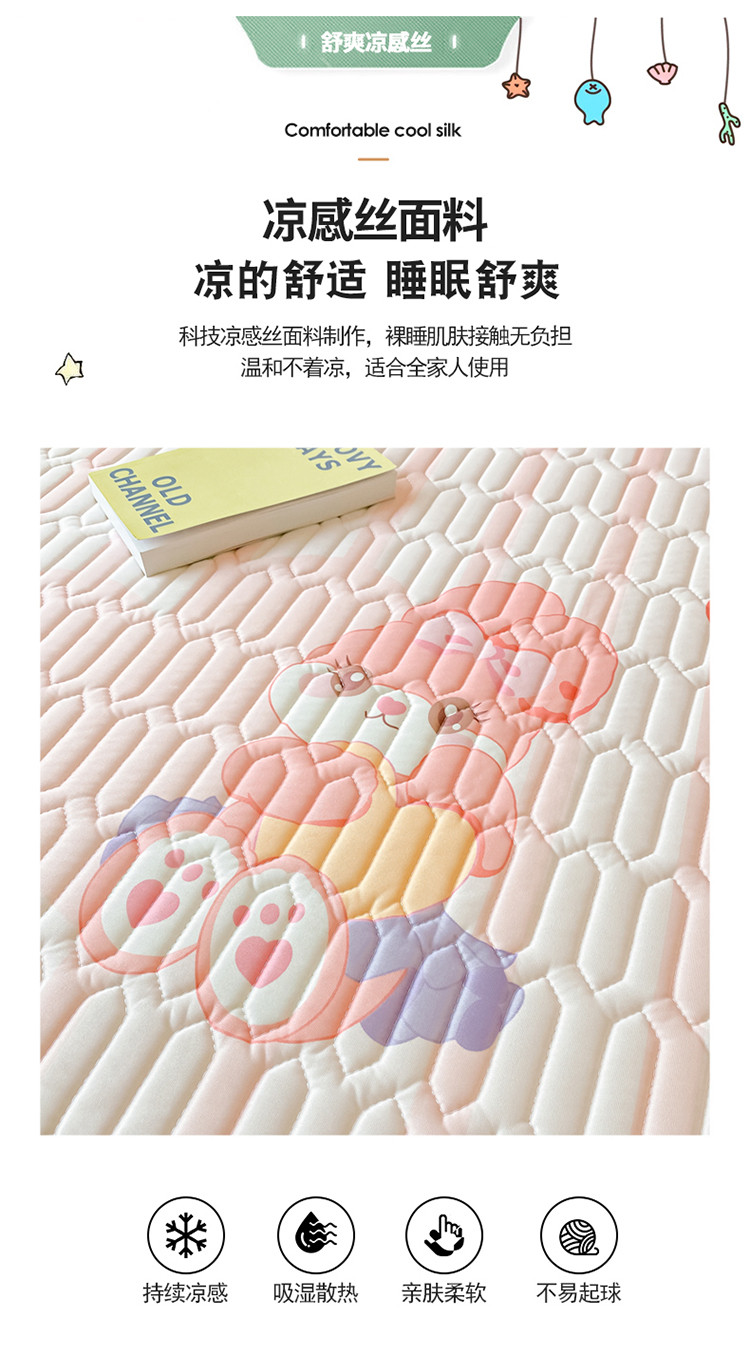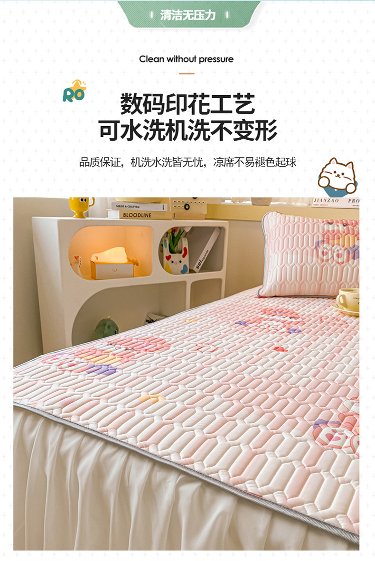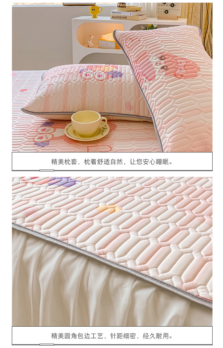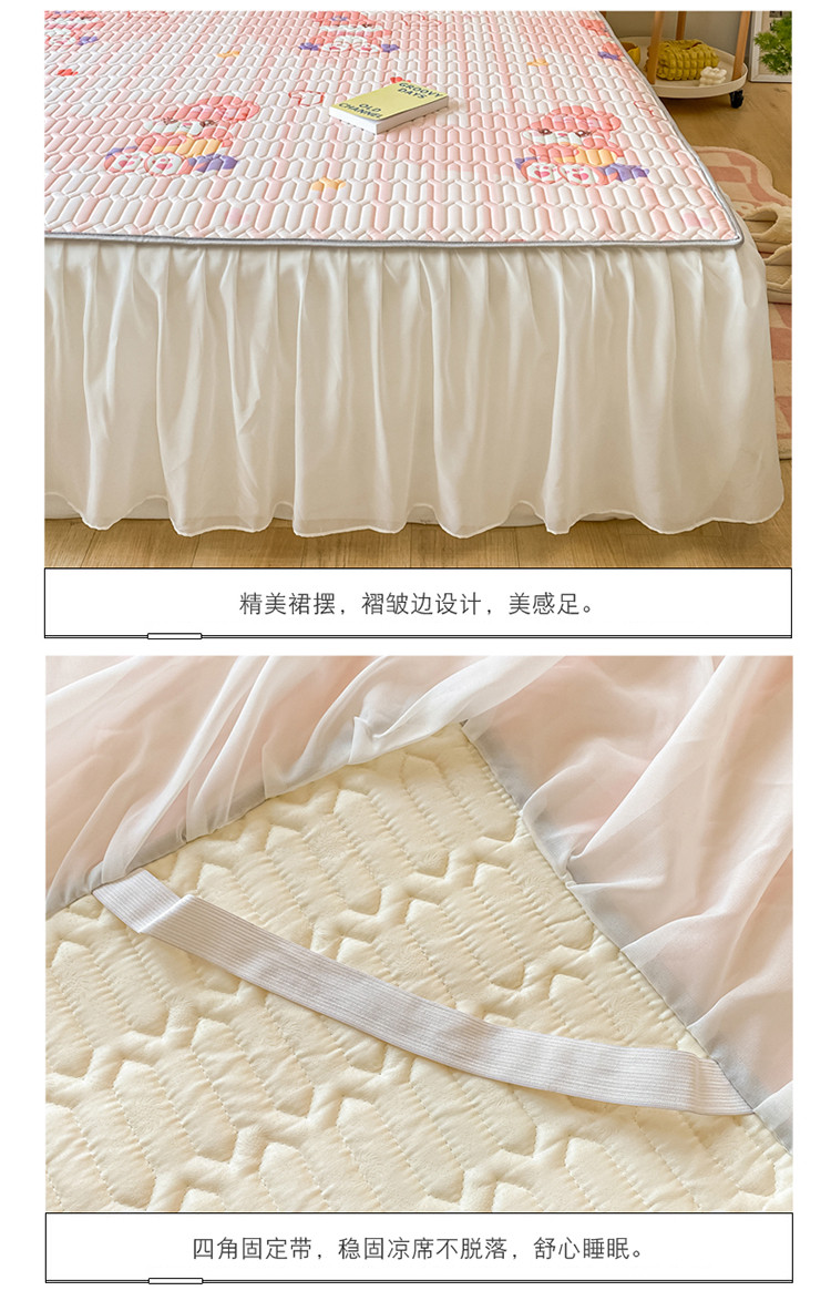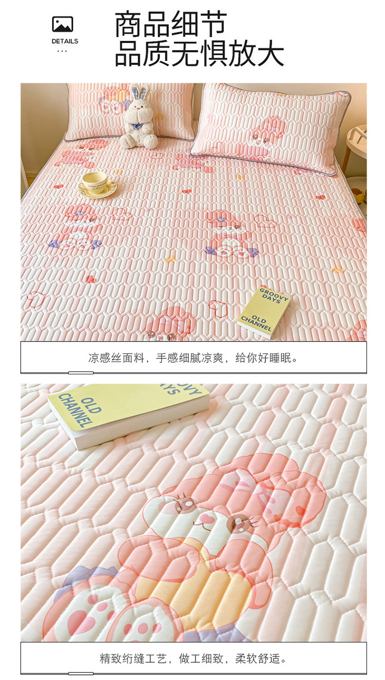 商品名称:金爱家 2023新款凉感丝乳胶软凉席床裙款三件套 爱心小兔粉