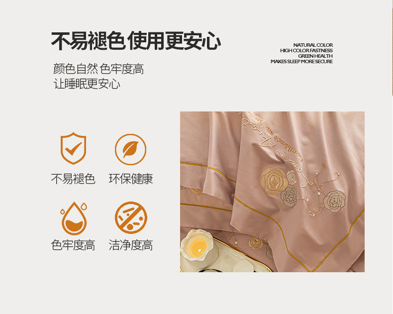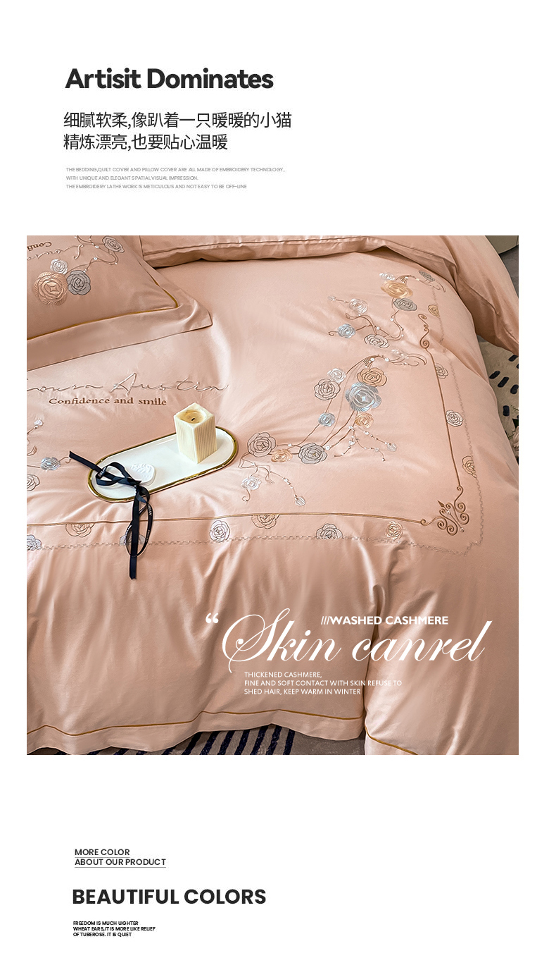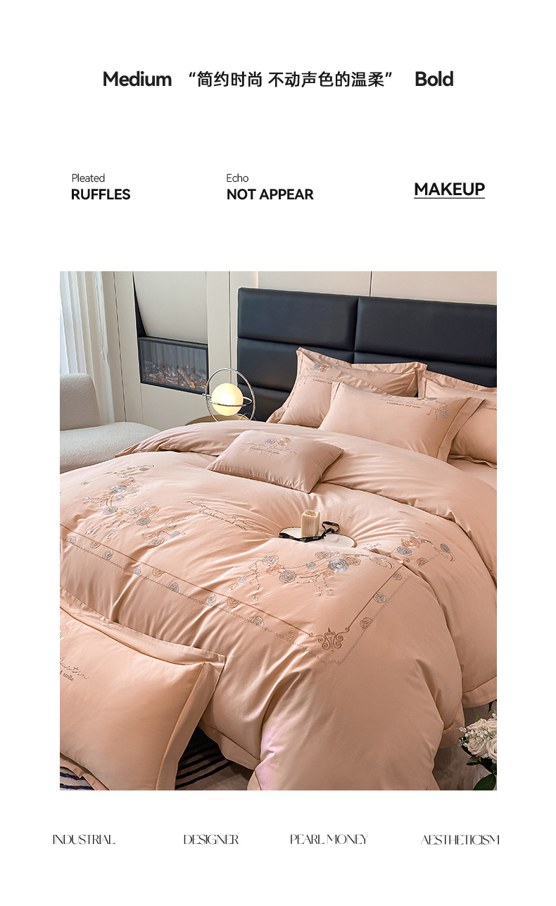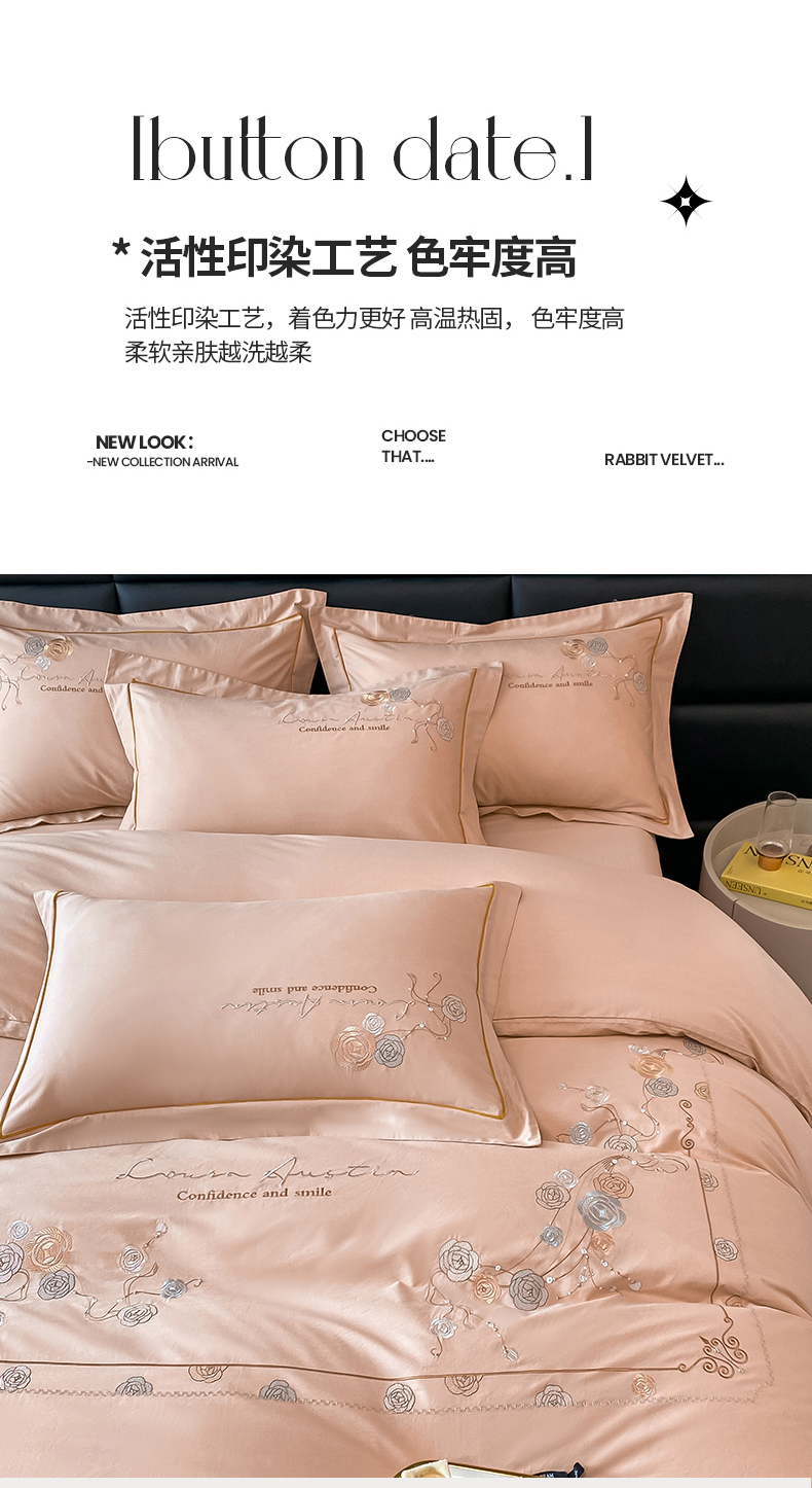 商品名称:绒世界2024新款全棉刺绣烟雨系列四件套 一袭烟雨-香蜜粉