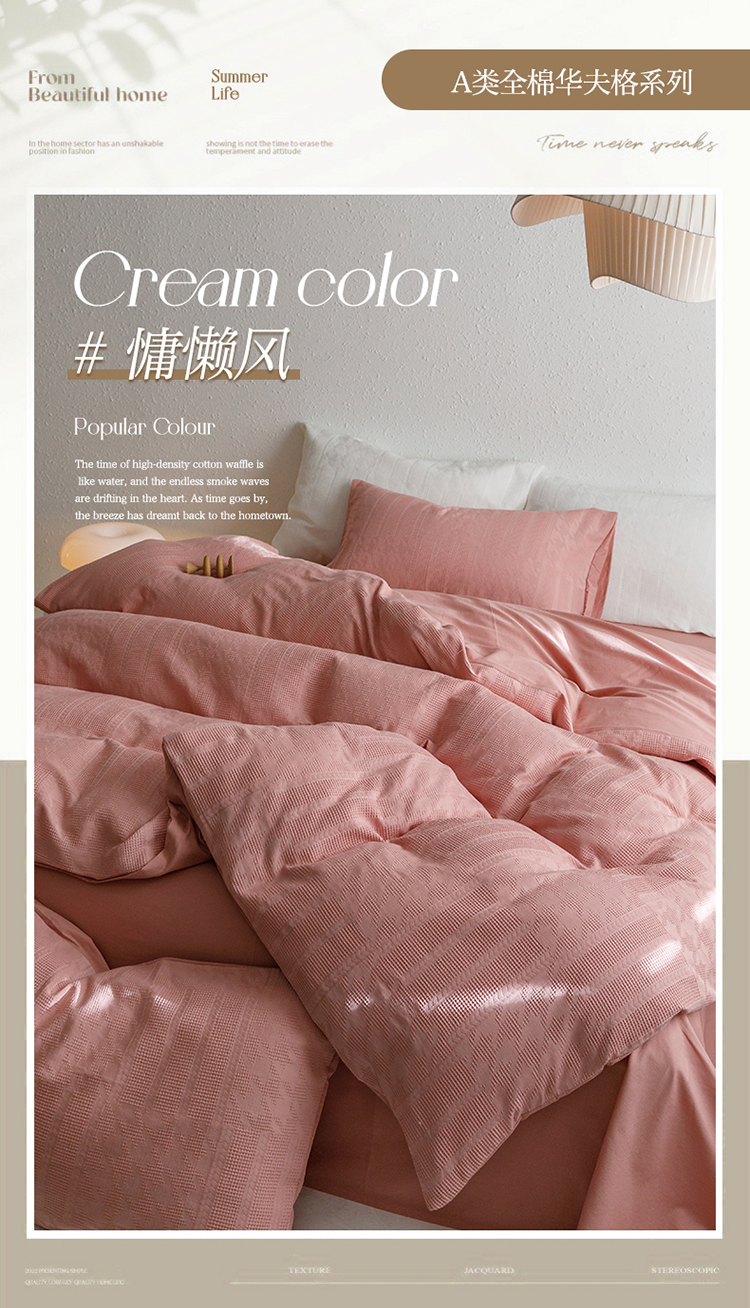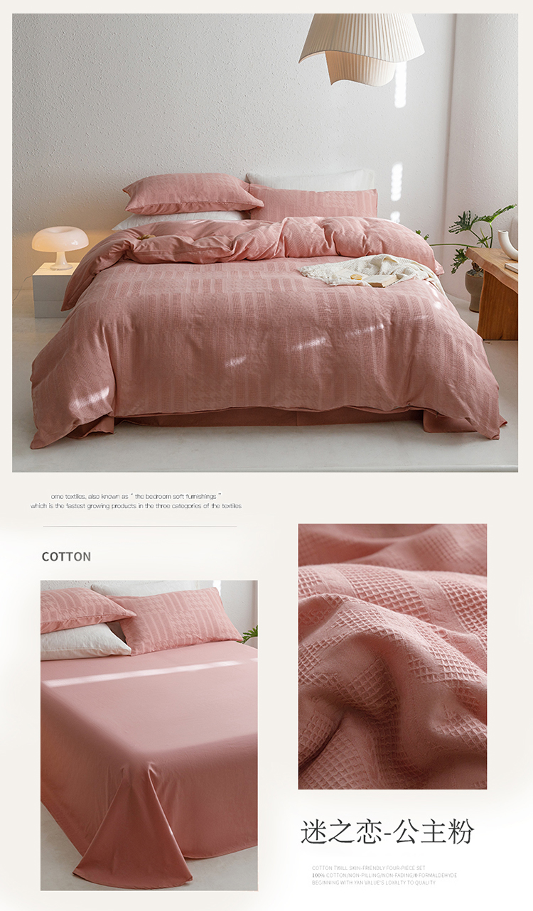 瑞米家居2023新款A类华夫格四件套-爱尚-迷之恋 迷之恋-公主粉