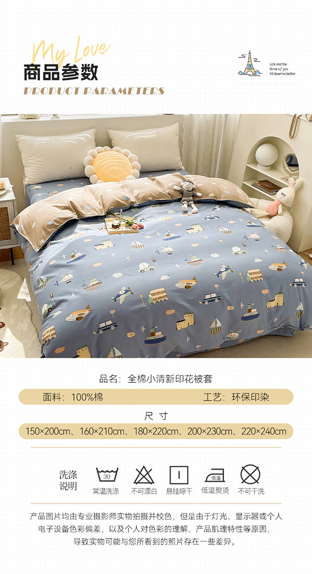 商品名称:绵庭 2023新款 全棉印花被套 玩具乐园-兰