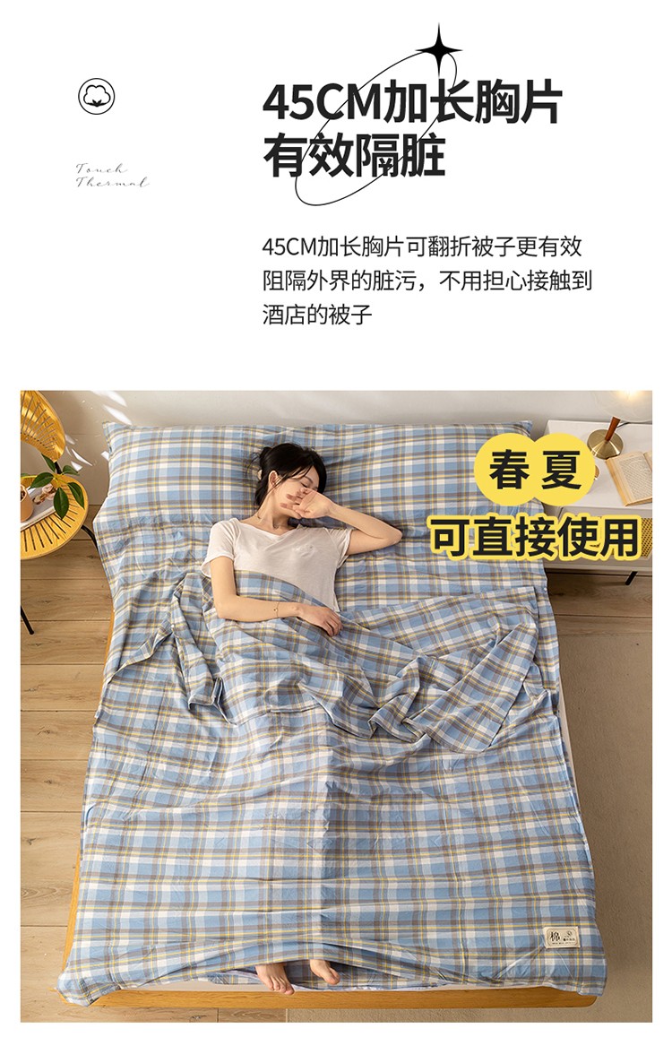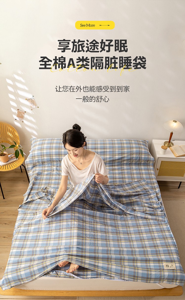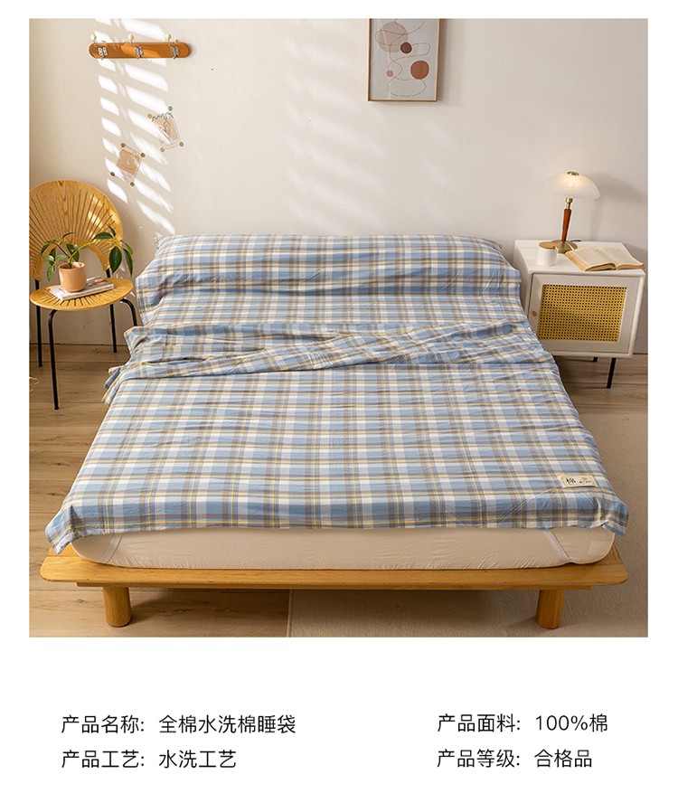 商品名称:2024新款A类全棉纯棉色织水洗棉睡袋床单被罩旅游酒店出差便携式睡袋