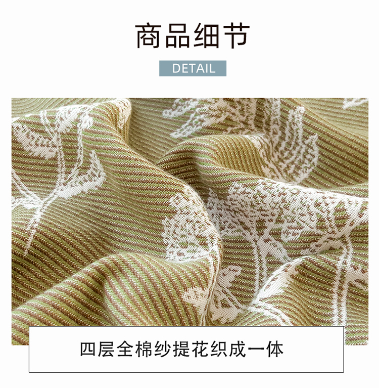商品名称:棠薇全棉四层斜纹编织一体不分层松紧绑带枕巾纯棉枕头巾一对 简爱绿普通无绑带款