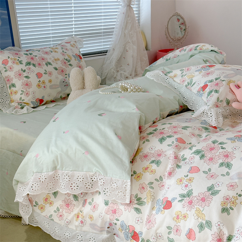 昔可家纺 2023新款全棉四件套公主蕾丝花边ok 粉粉郁金花束