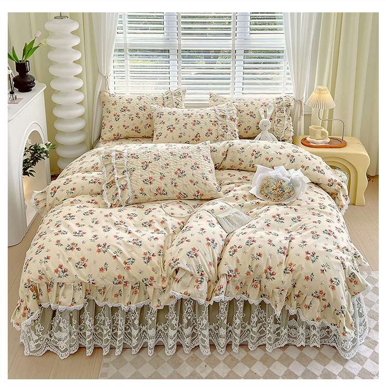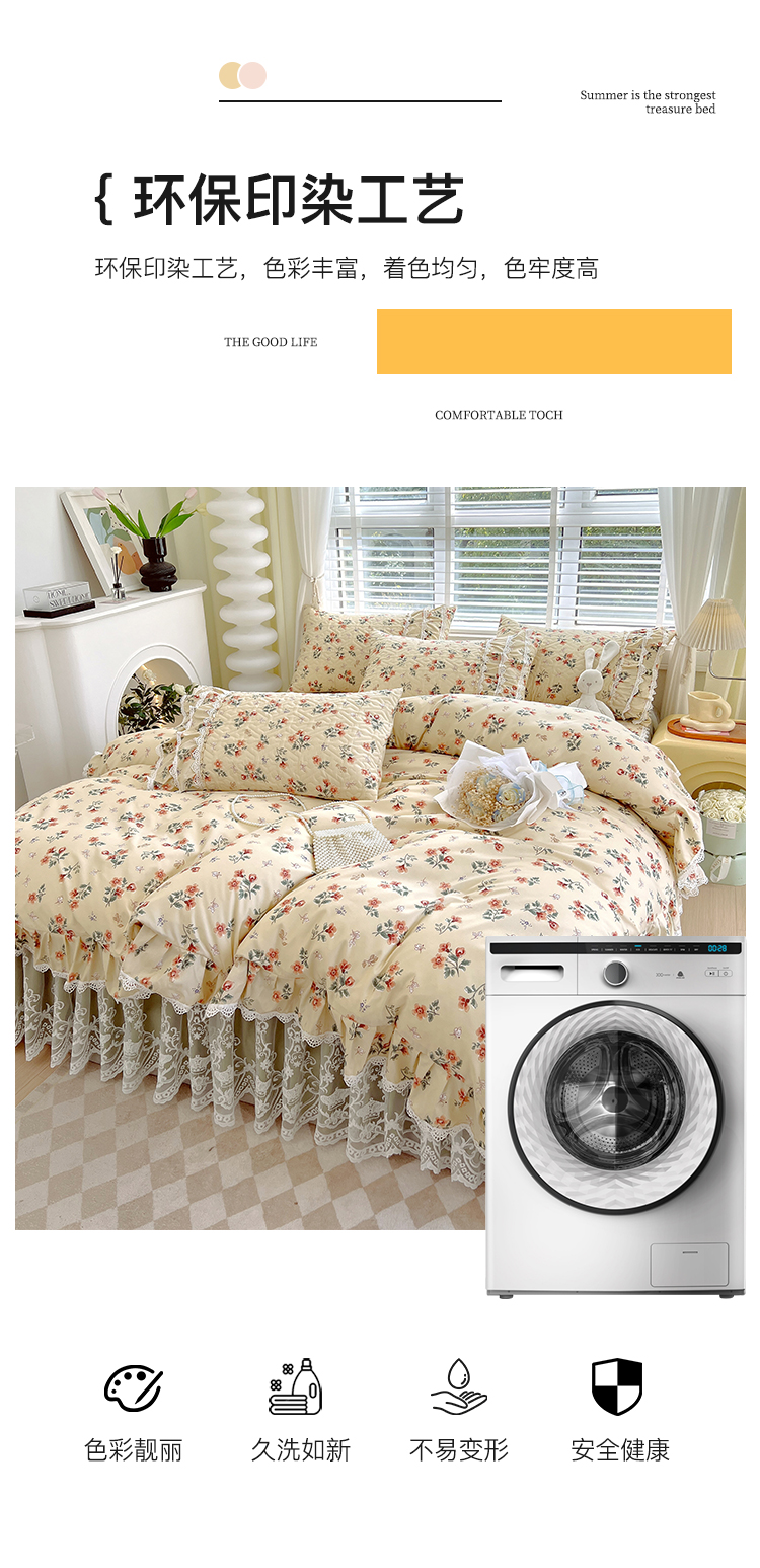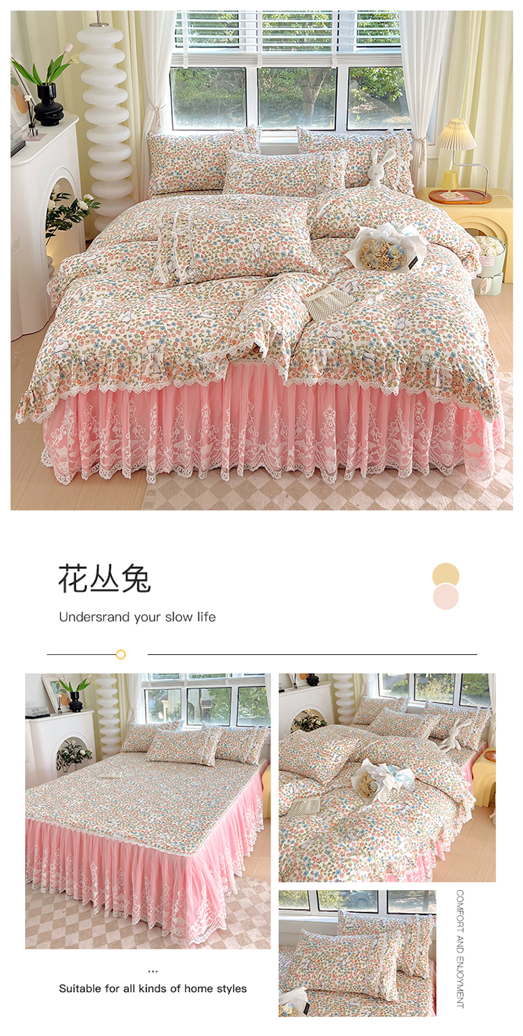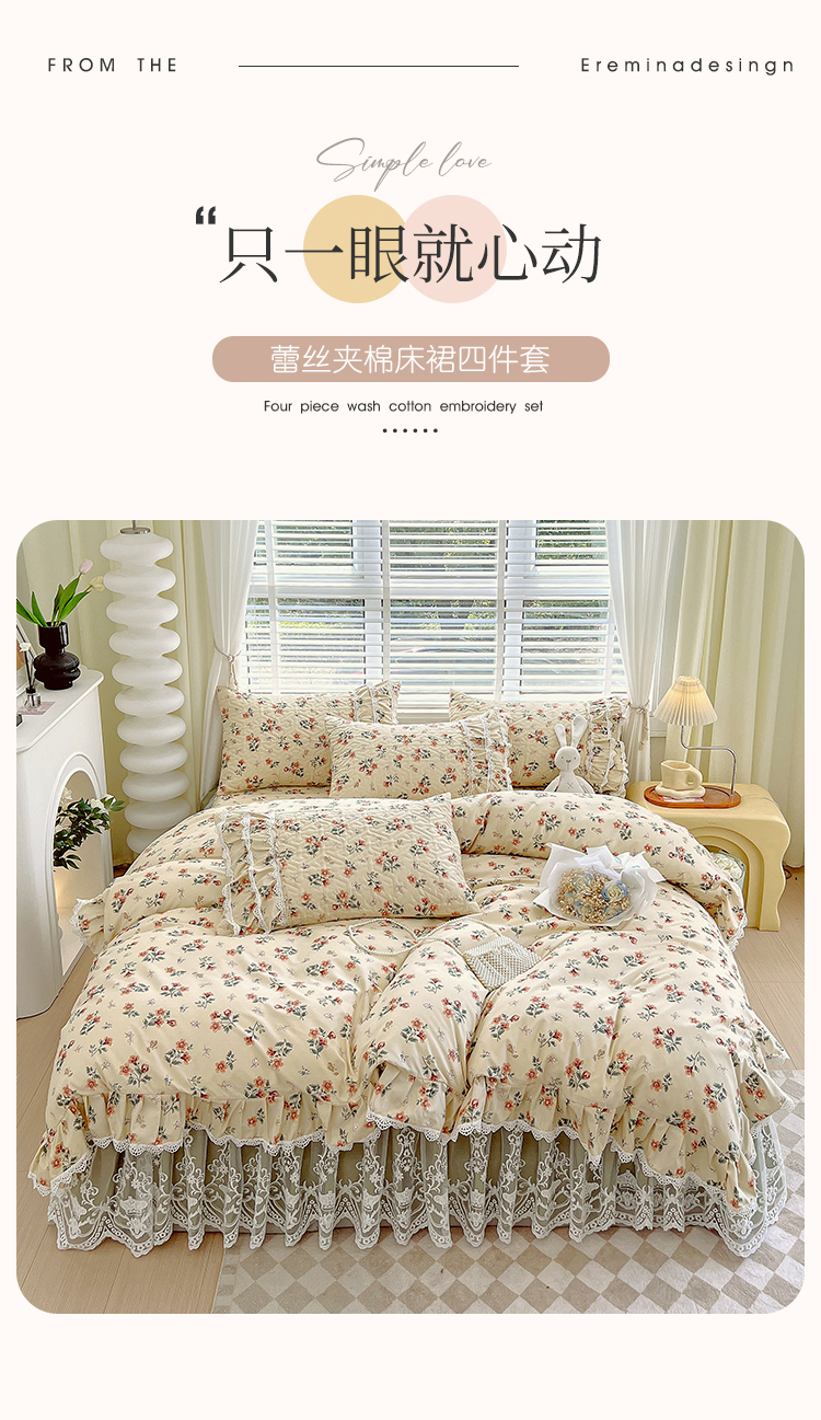 商品名称:(总)罗艺轩 2024新款法式风蕾丝夹棉床裙款四件套-花想容