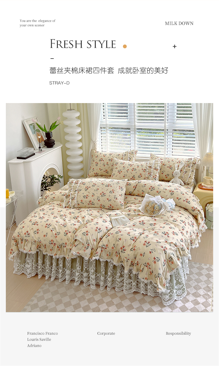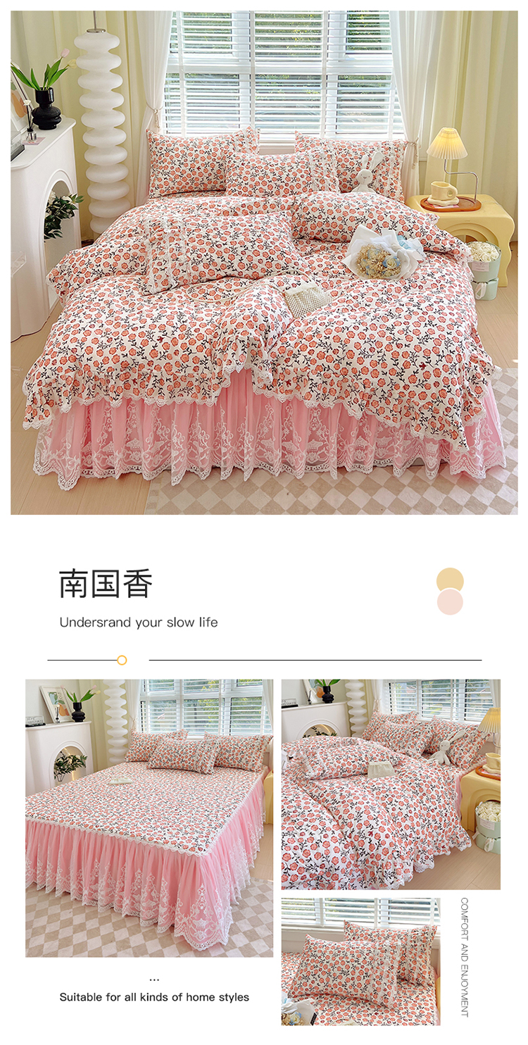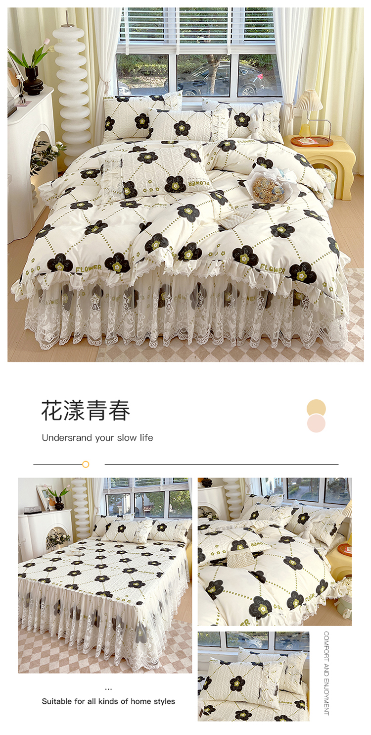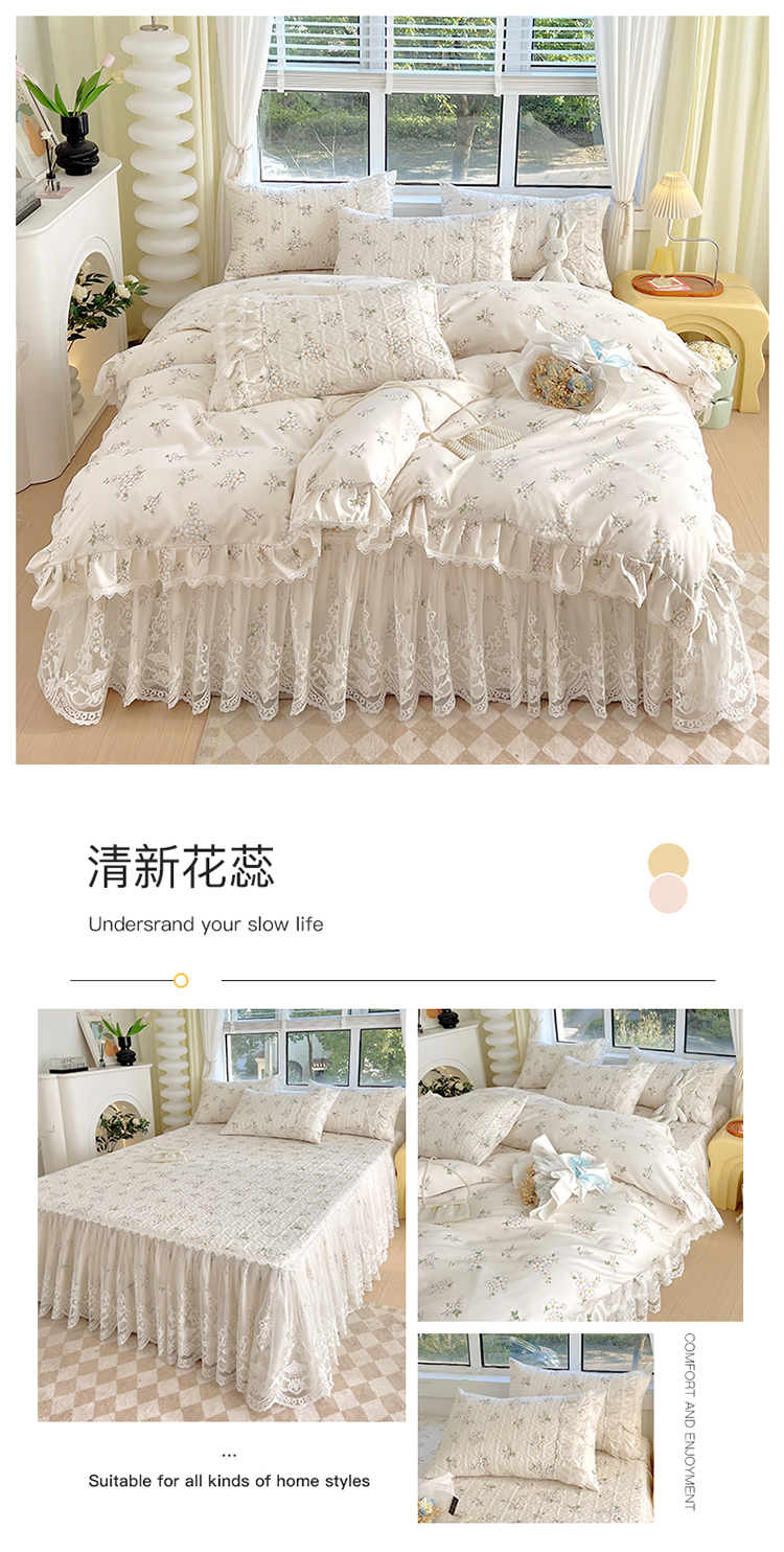 (总)罗艺轩 2024新款法式风蕾丝夹棉床裙款四件套-花想容