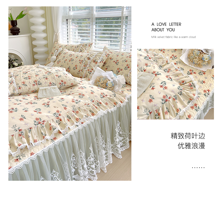 (总)罗艺轩 2025新款牛奶绒浪漫花边床裙款四件套-暖洋洋(报活动和优惠券后控价99起/控价107起),暖洋洋-白,暖洋洋-豆沙,暖洋洋-灰,暖洋洋-酒红,暖洋洋-绿,暖洋洋-奶咖