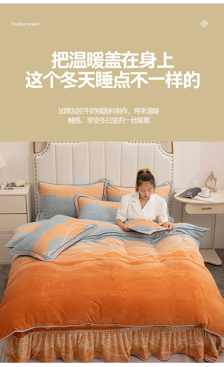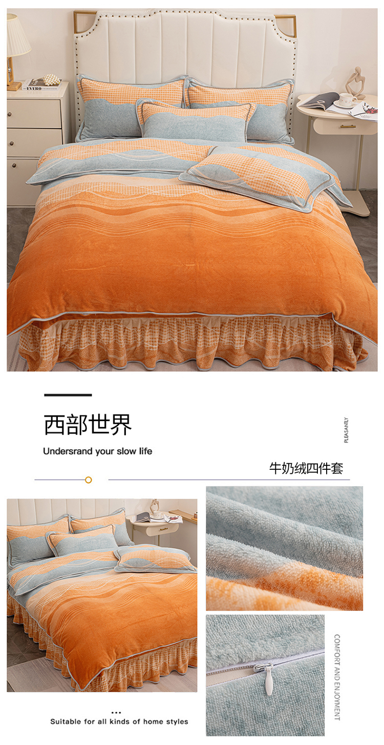商品名称:登登家纺 加厚印花牛奶金貂法莱宝宝绒四件套 西部世界