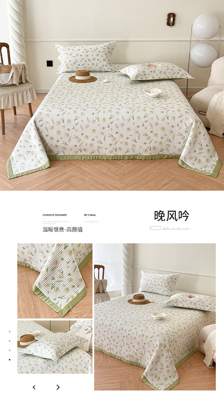(总)上喜2025新款韩国全棉砂洗床盖系列,粉色,黄色,灰色,绿色,紫色