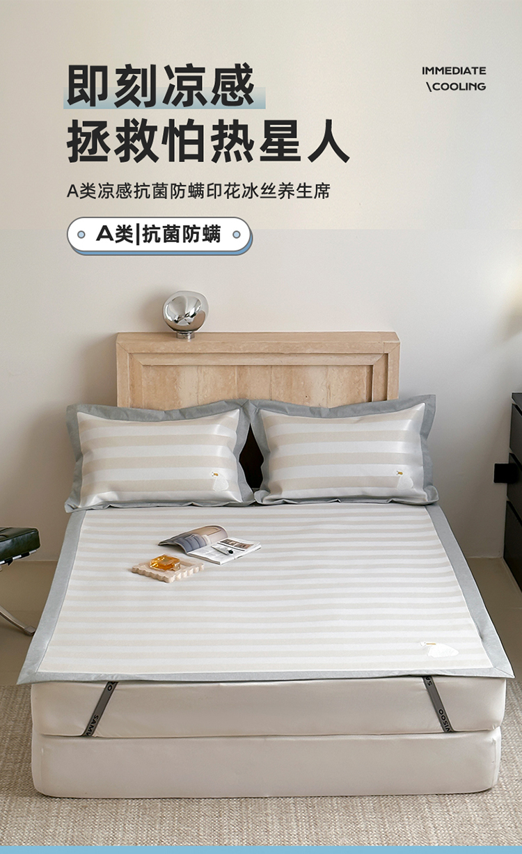 (总)三味舒屋 2025新款 凉感抗菌防螨印花冰丝养生席(新升级7A抗菌),花非花 床席,花非花 床笠,雾非雾 床席,雾非雾 床笠